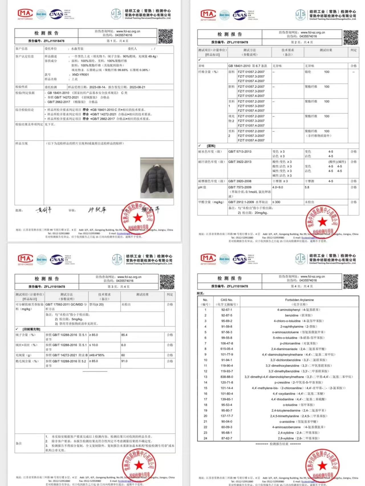 填充物1:鵞絨含絨量90%(絨子含量80%)