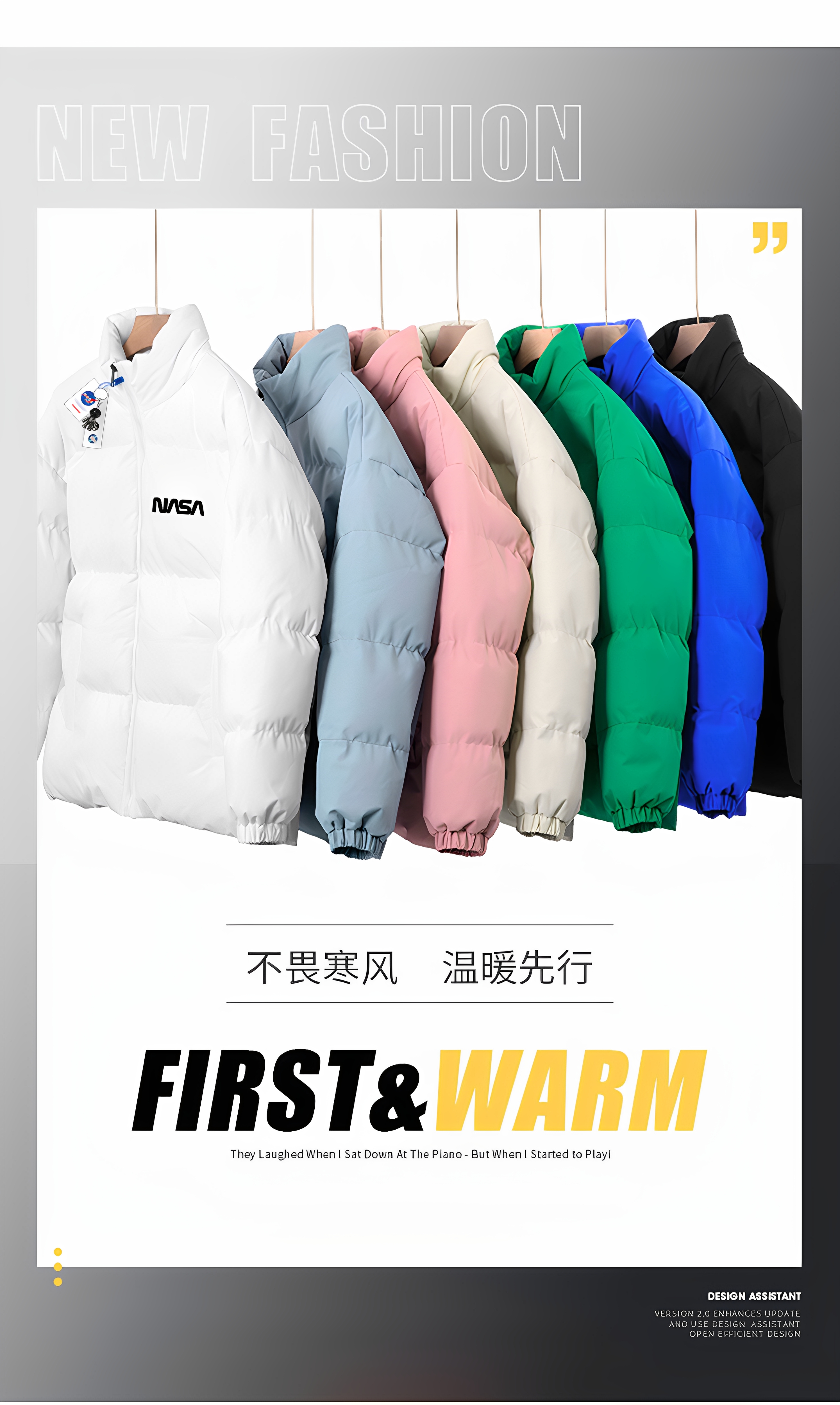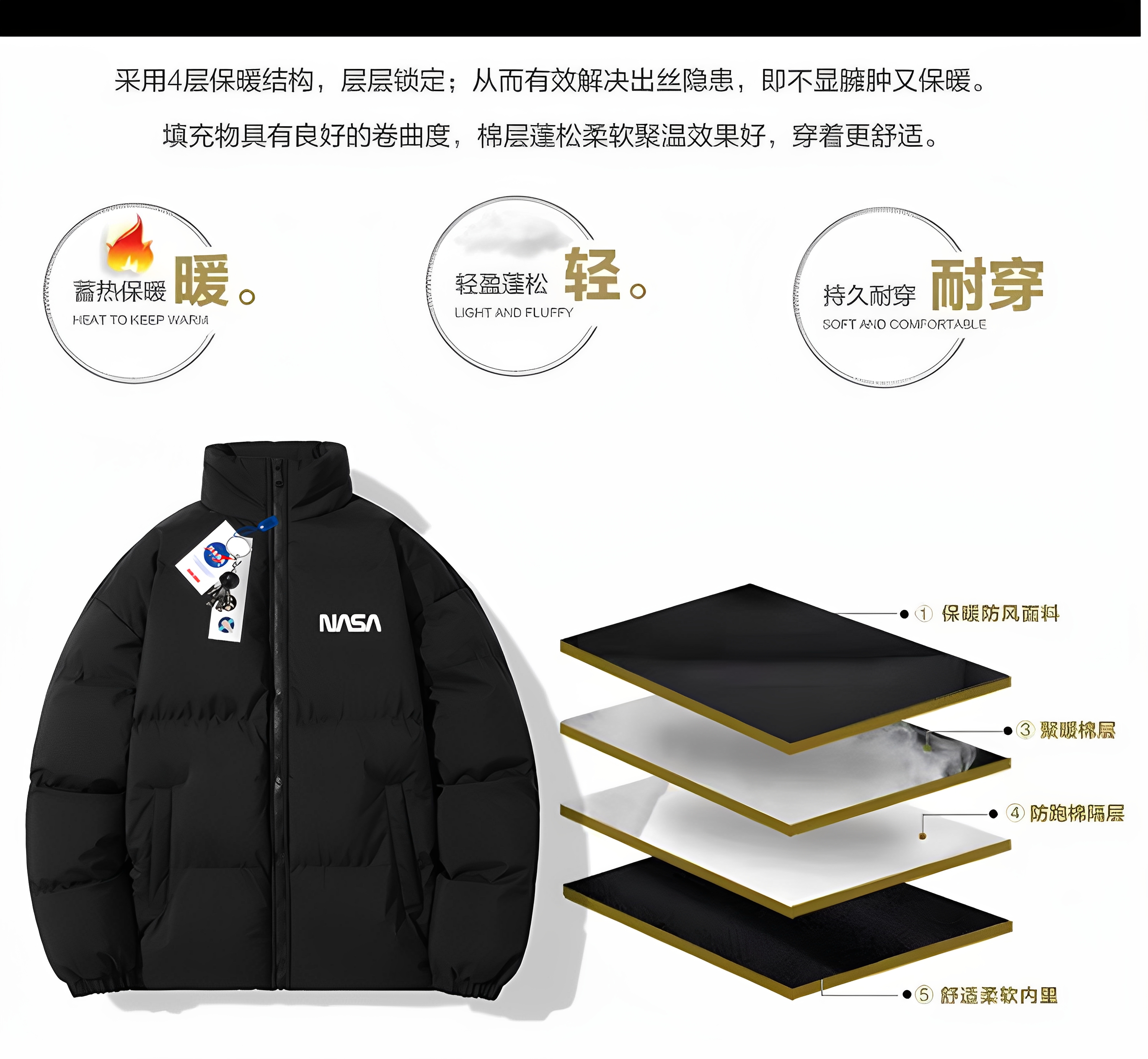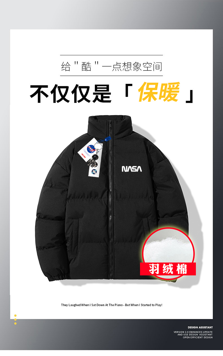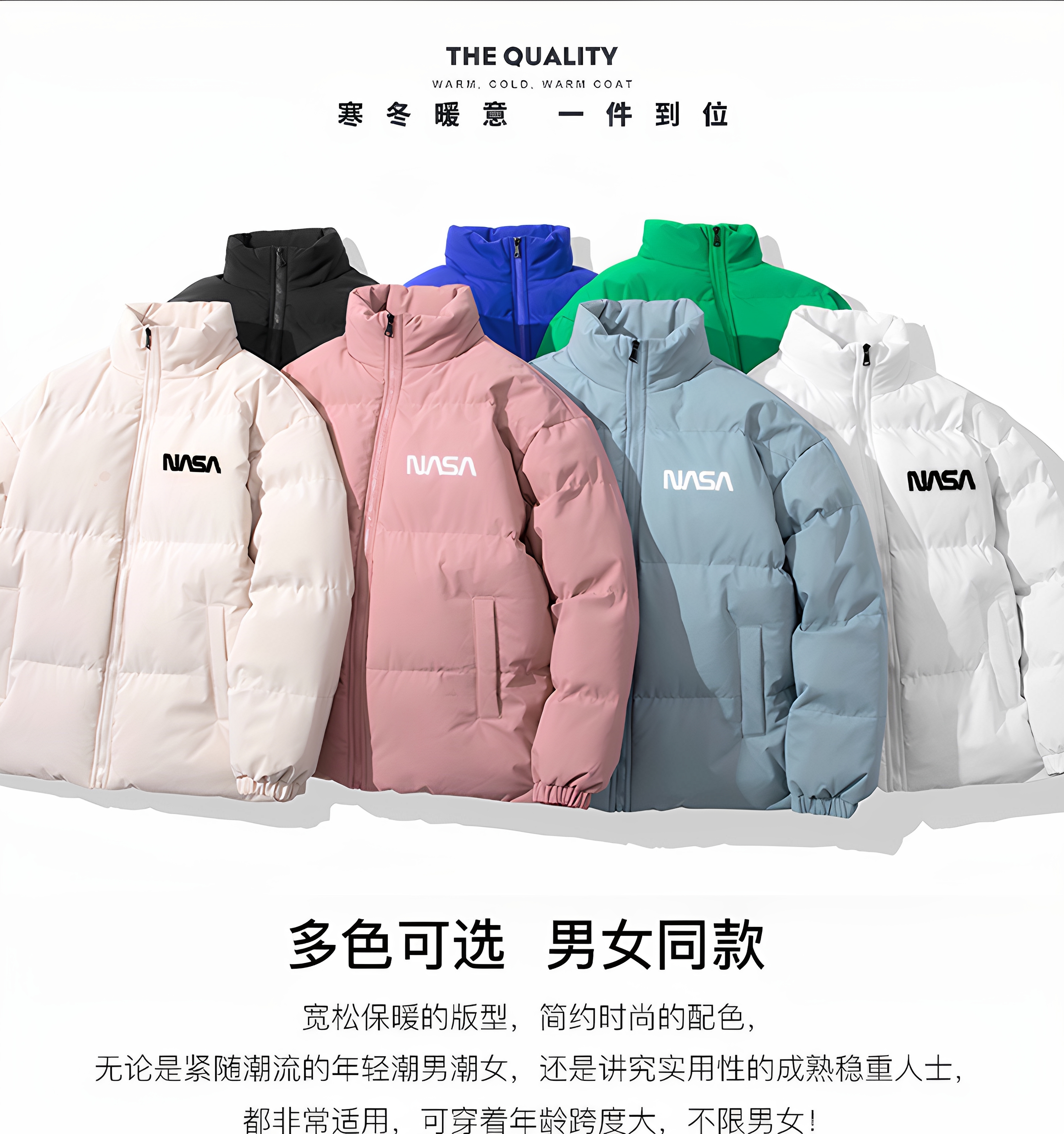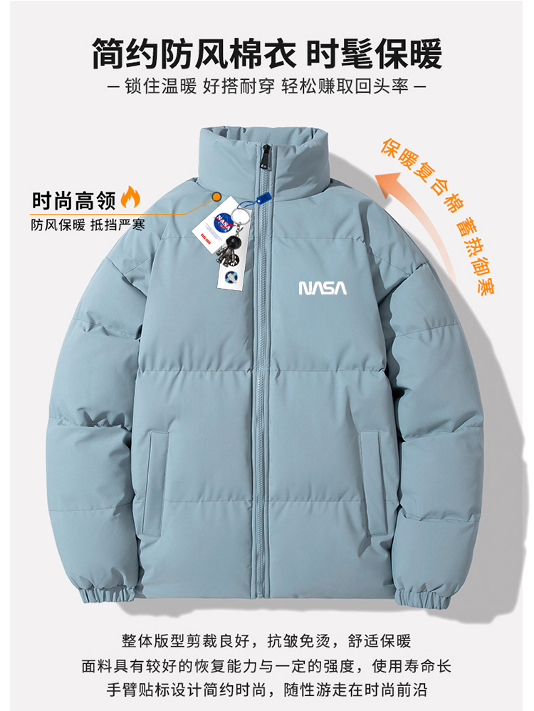 NASA聯名潮牌羽絨服男裝寬松版冬季外套女休閒立領棉衣服加厚青年