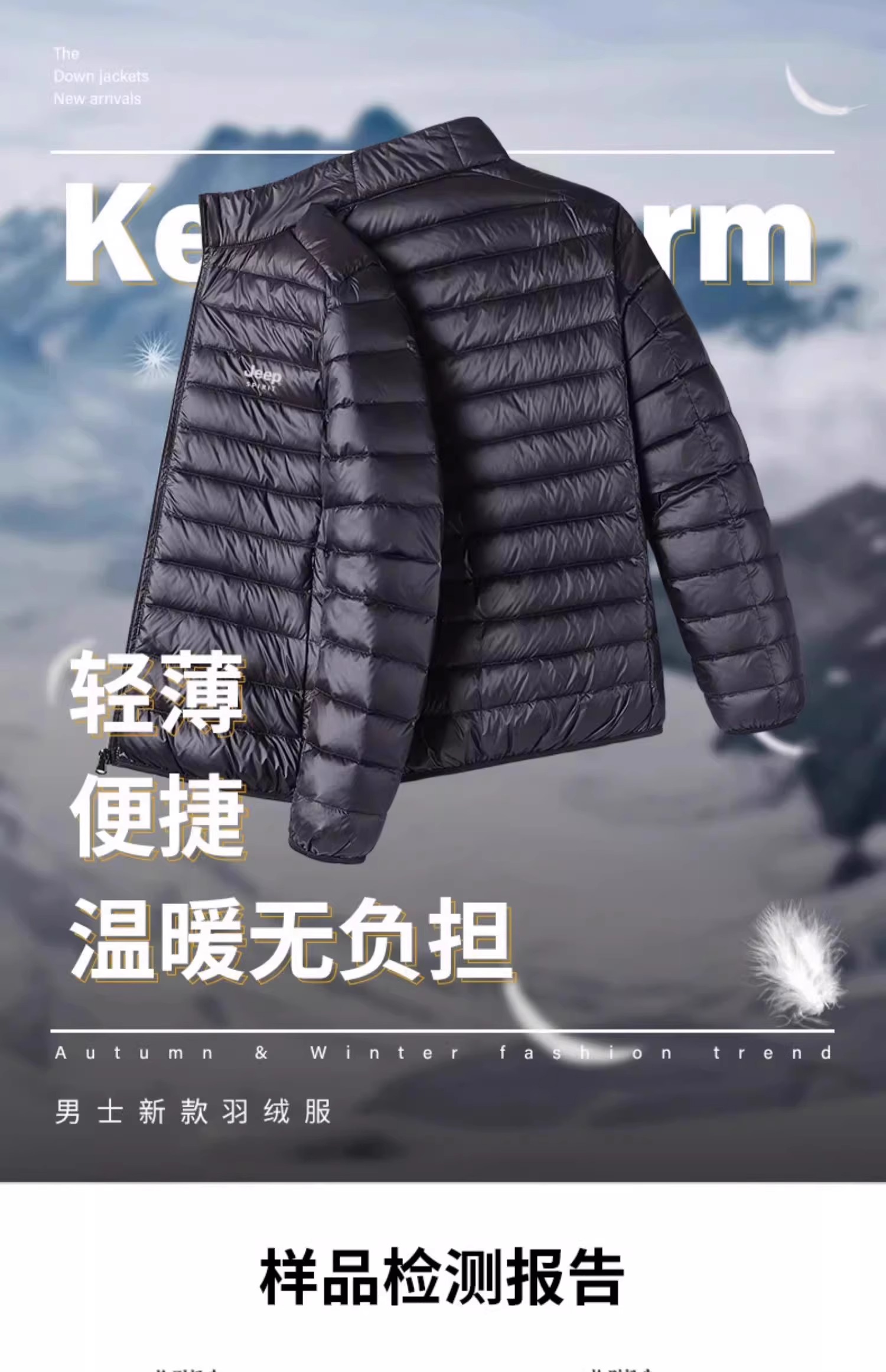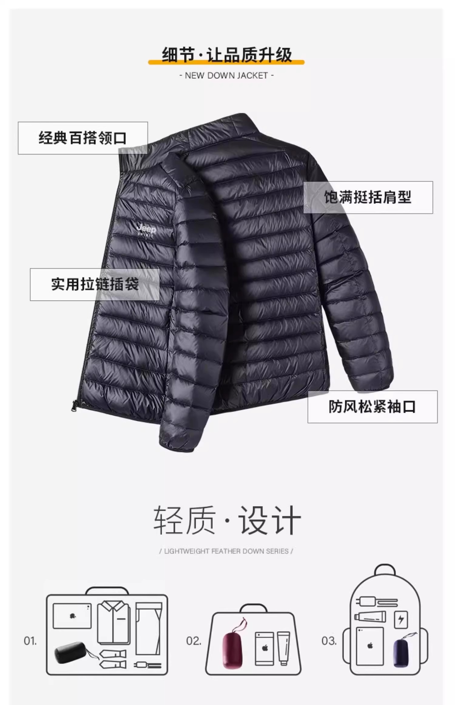 JEEP吉普男士羽絨服冬季保暖輕薄男裝2025秋冬款新款休閒潮流外套