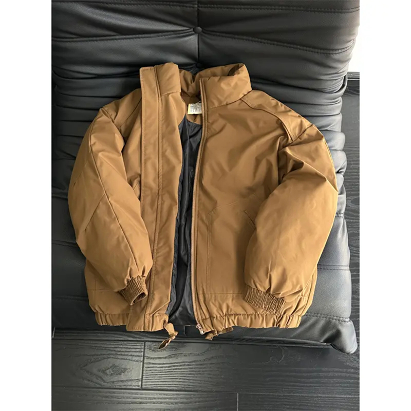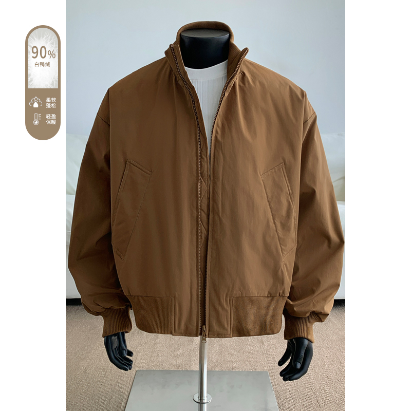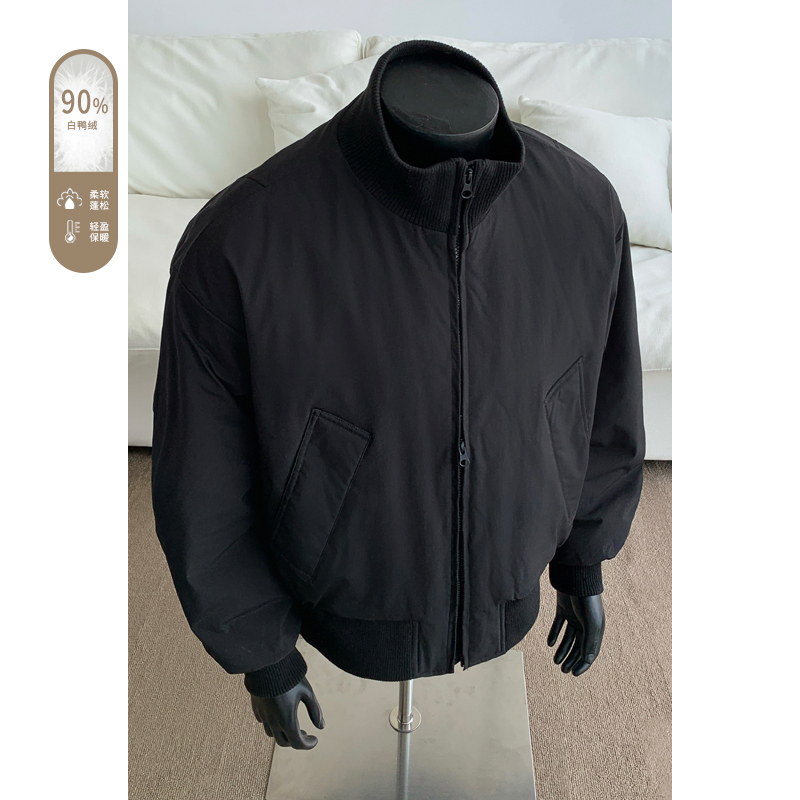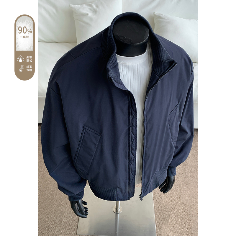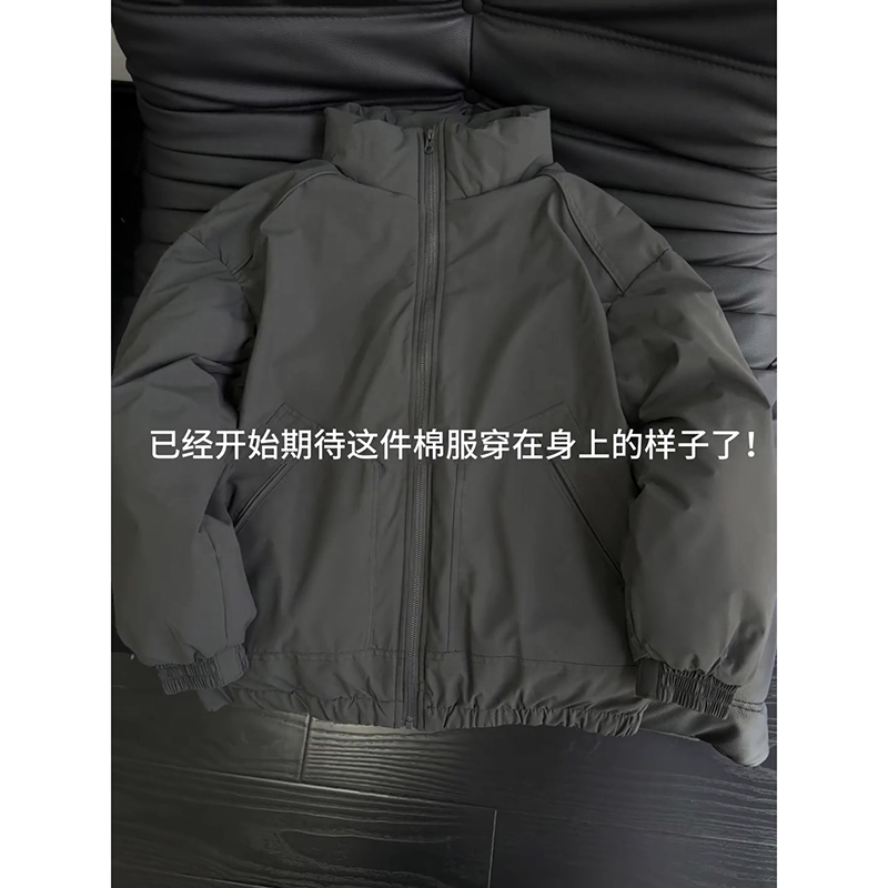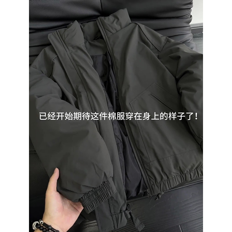美式cleanfit短款羽絨服外套男冬季加厚boxy立領三防飛行夾克棉服