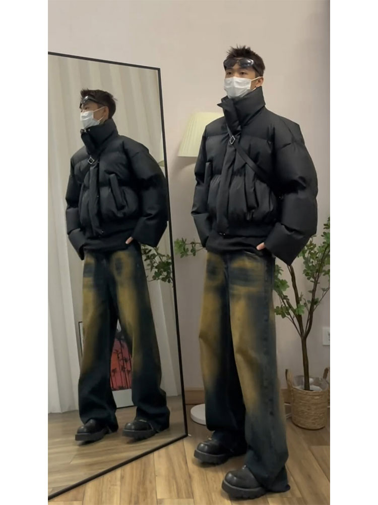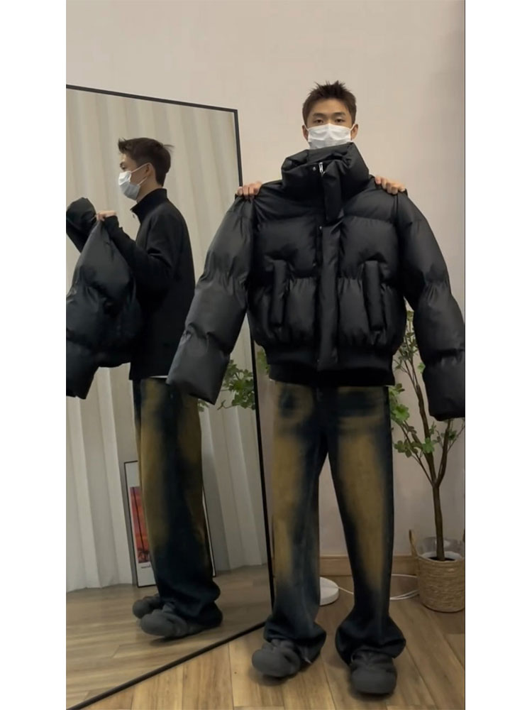 美式復古cleanfit短款棉服男冬季輕薄立領羽絨服vibe高街棉衣外套