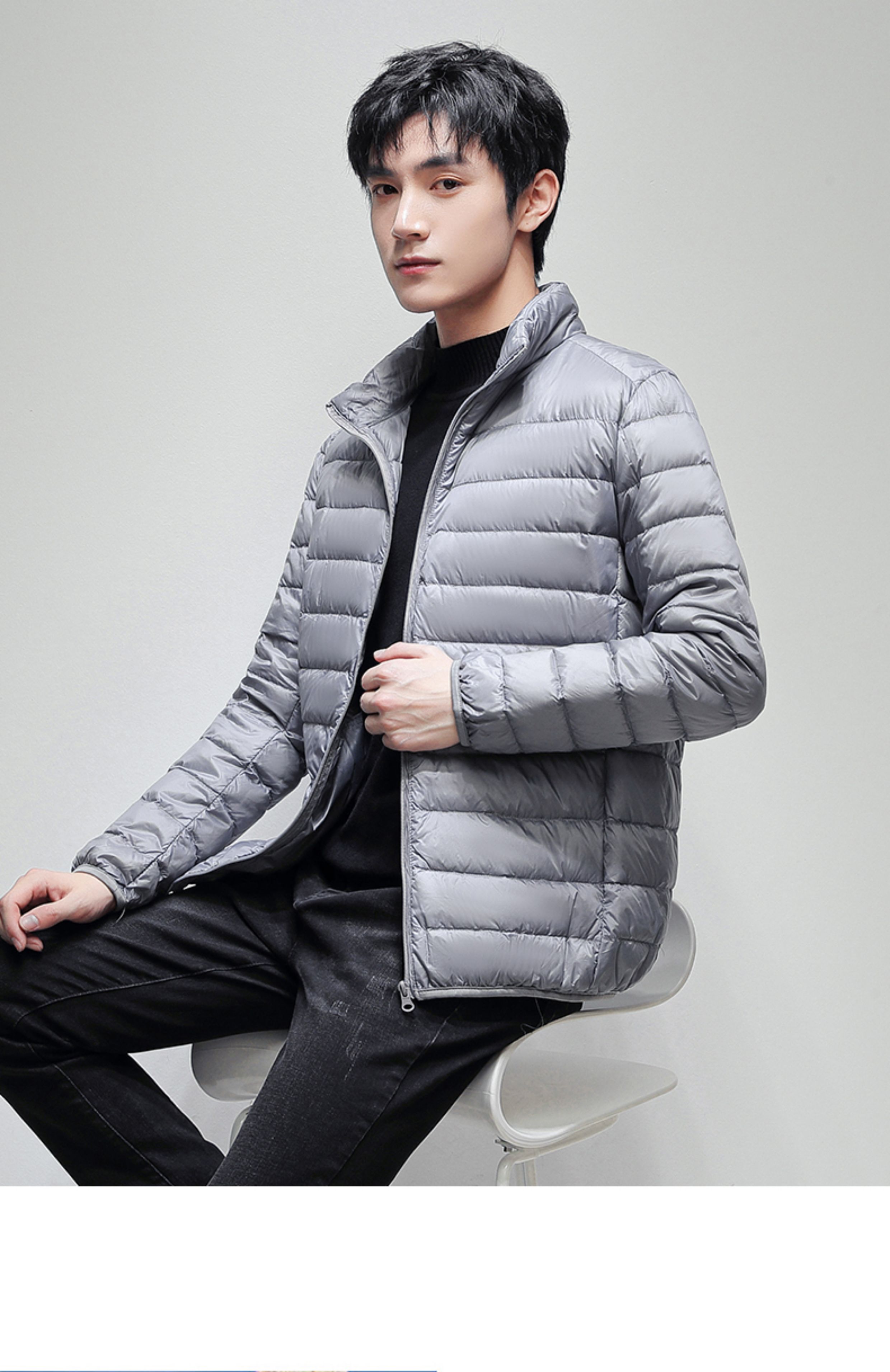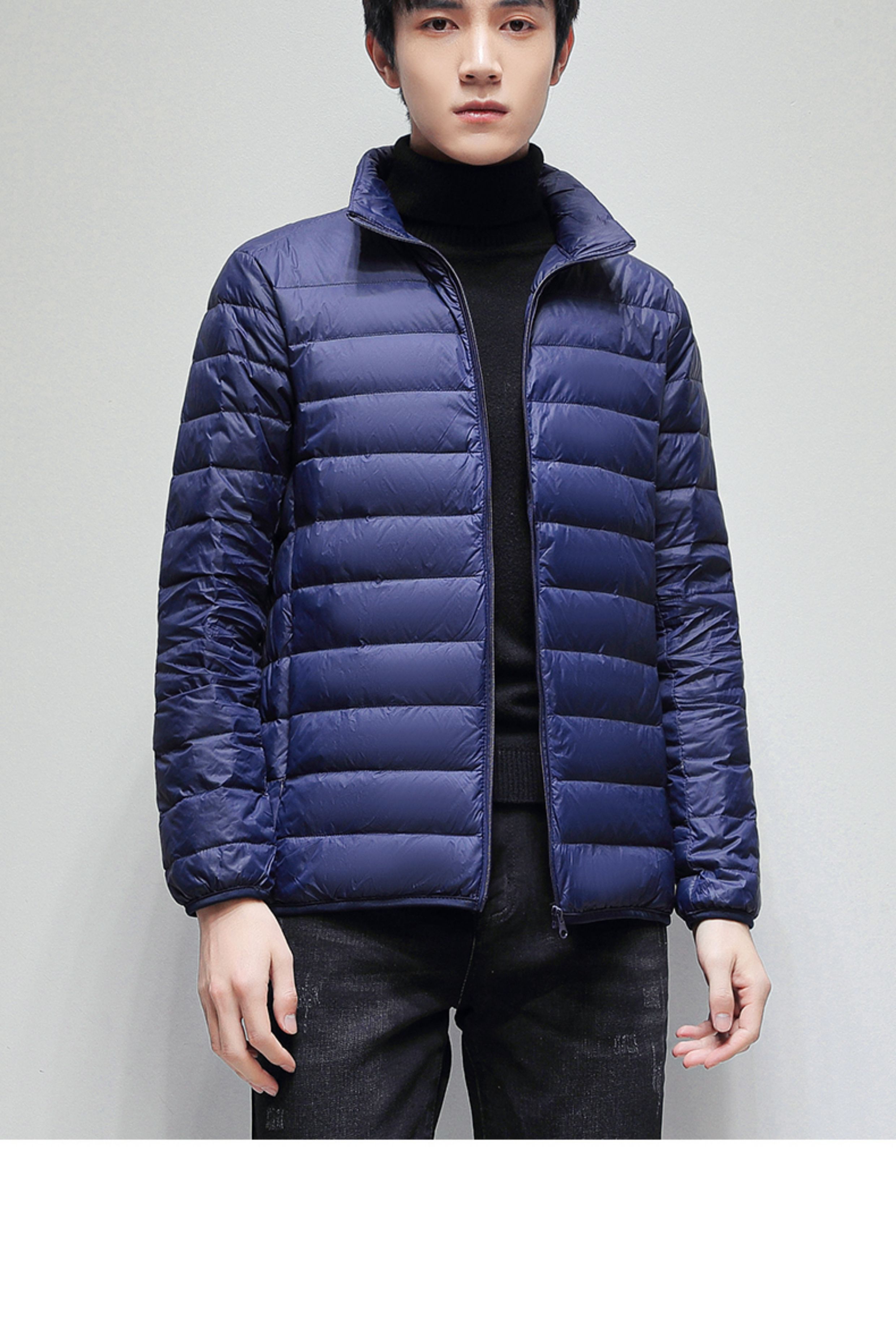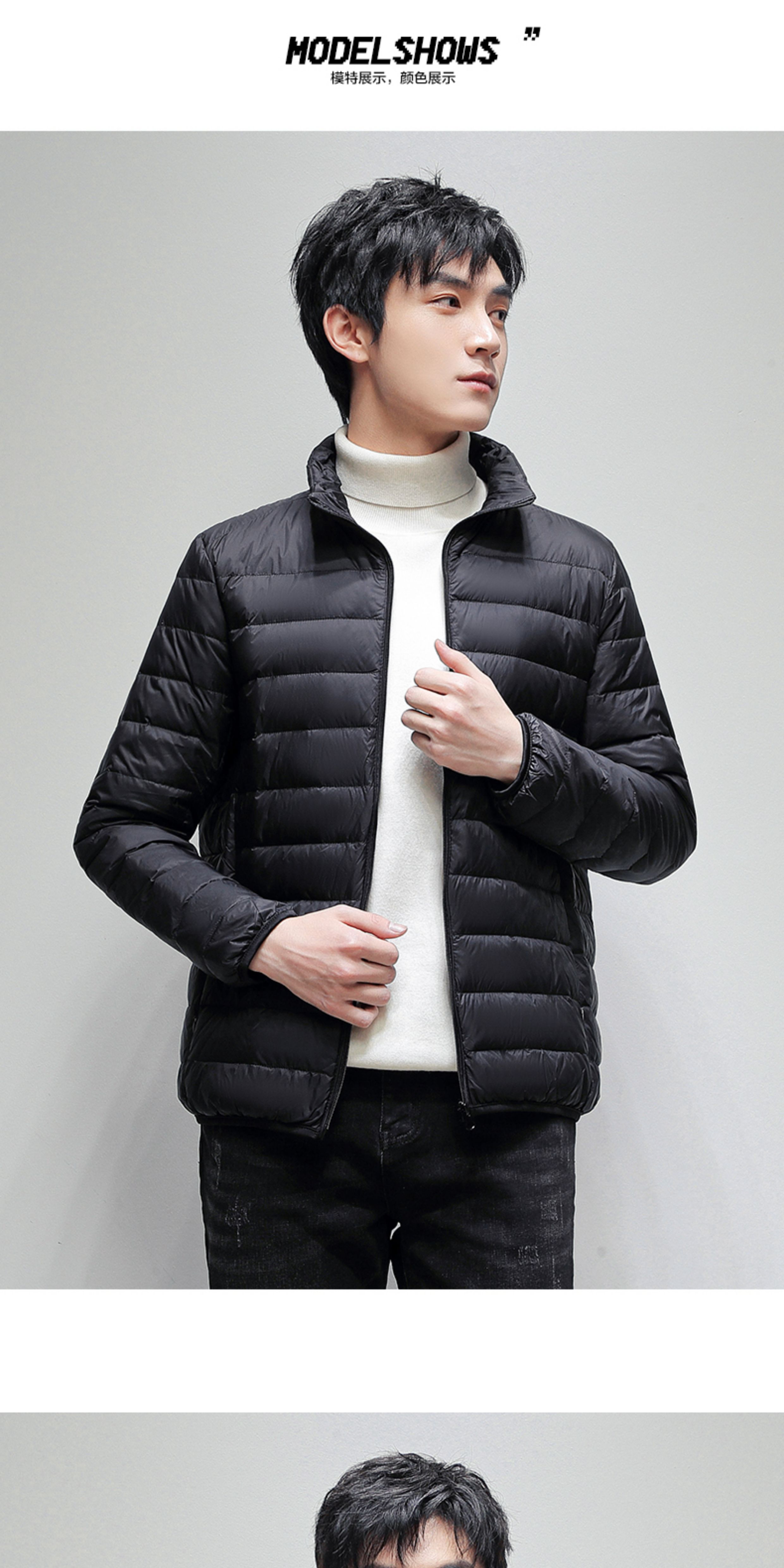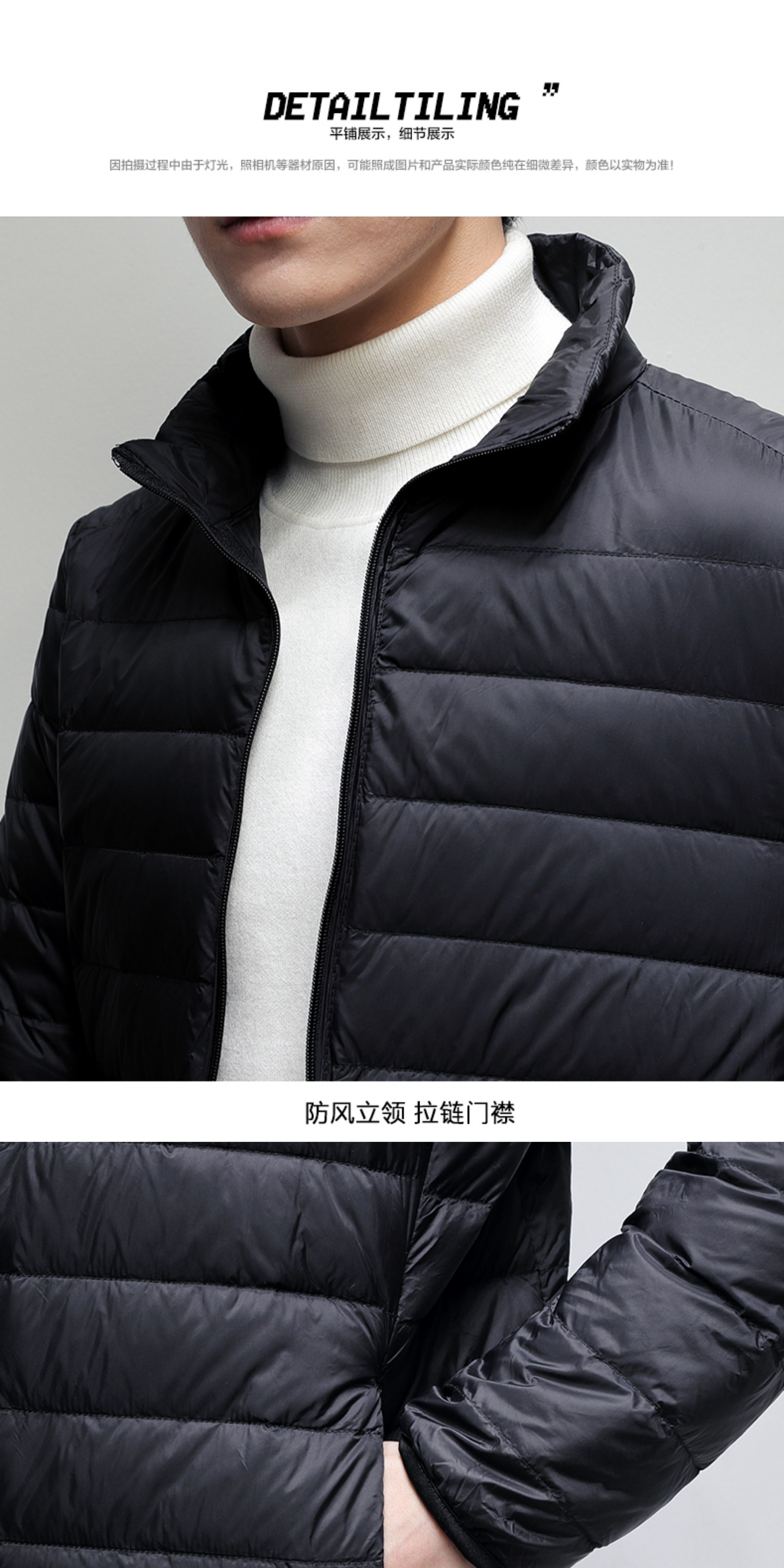啄木鳥黑色白鴨絨輕薄短款羽絨服秋冬季男款立領保暖防風春秋外套
