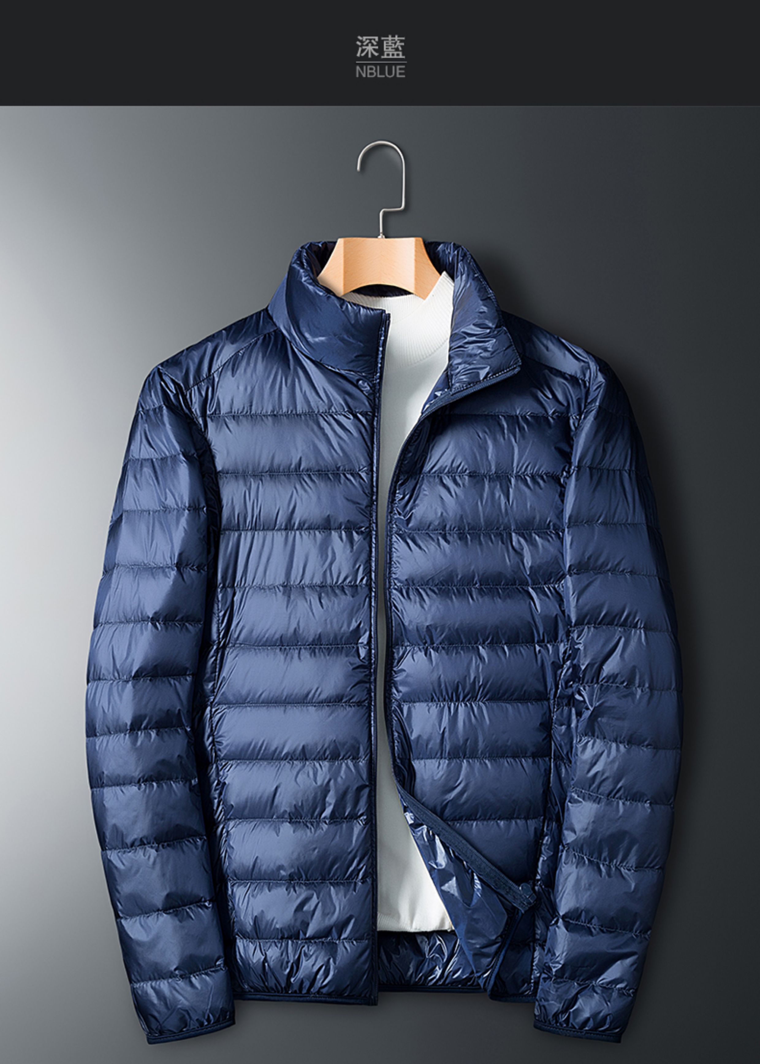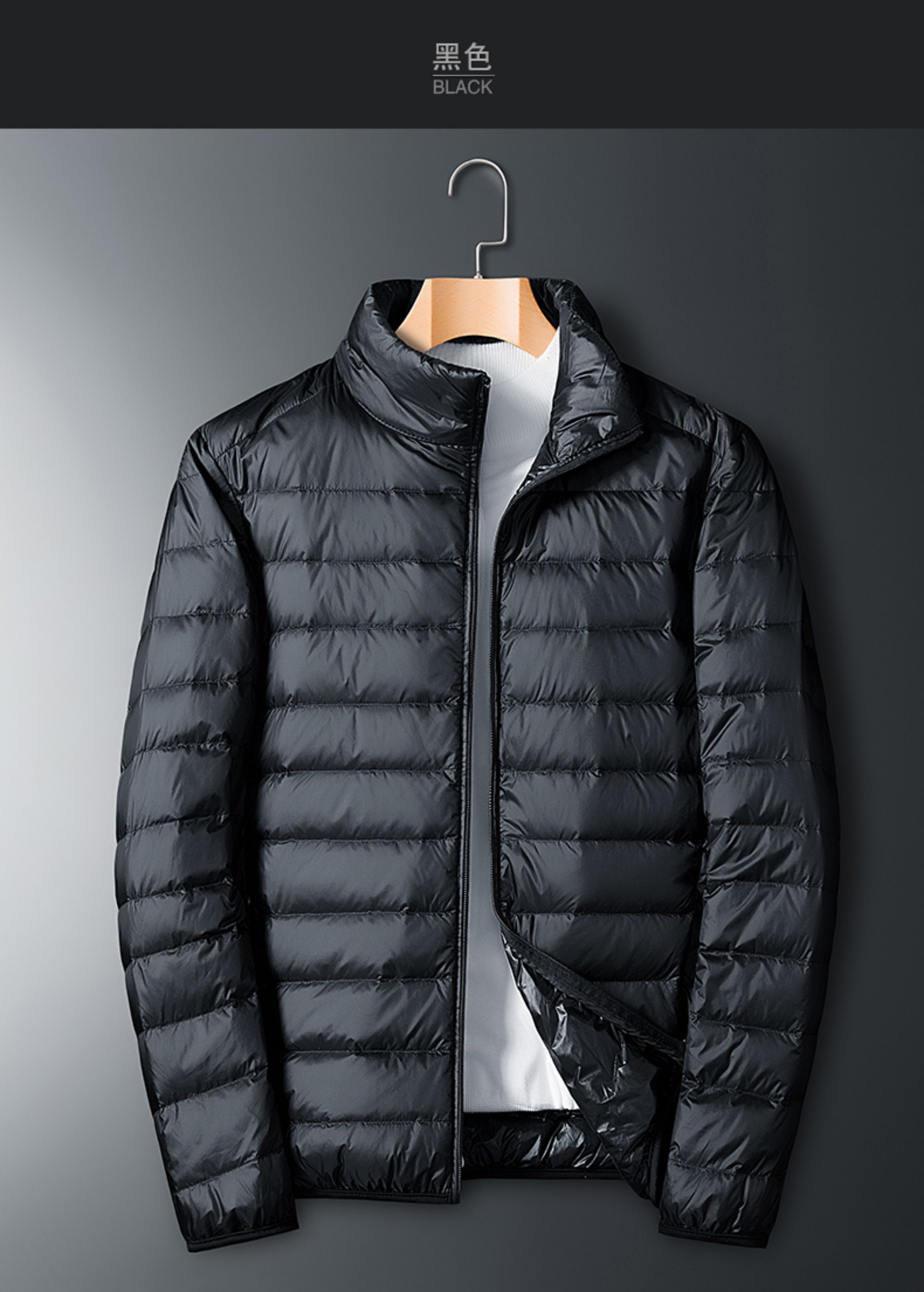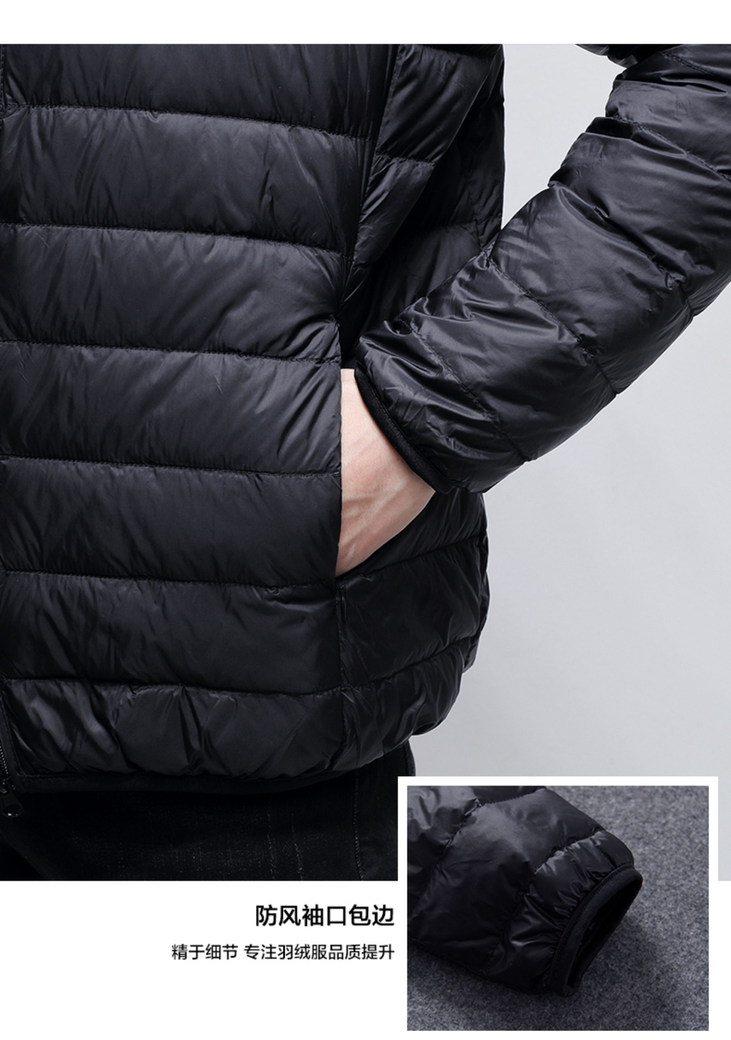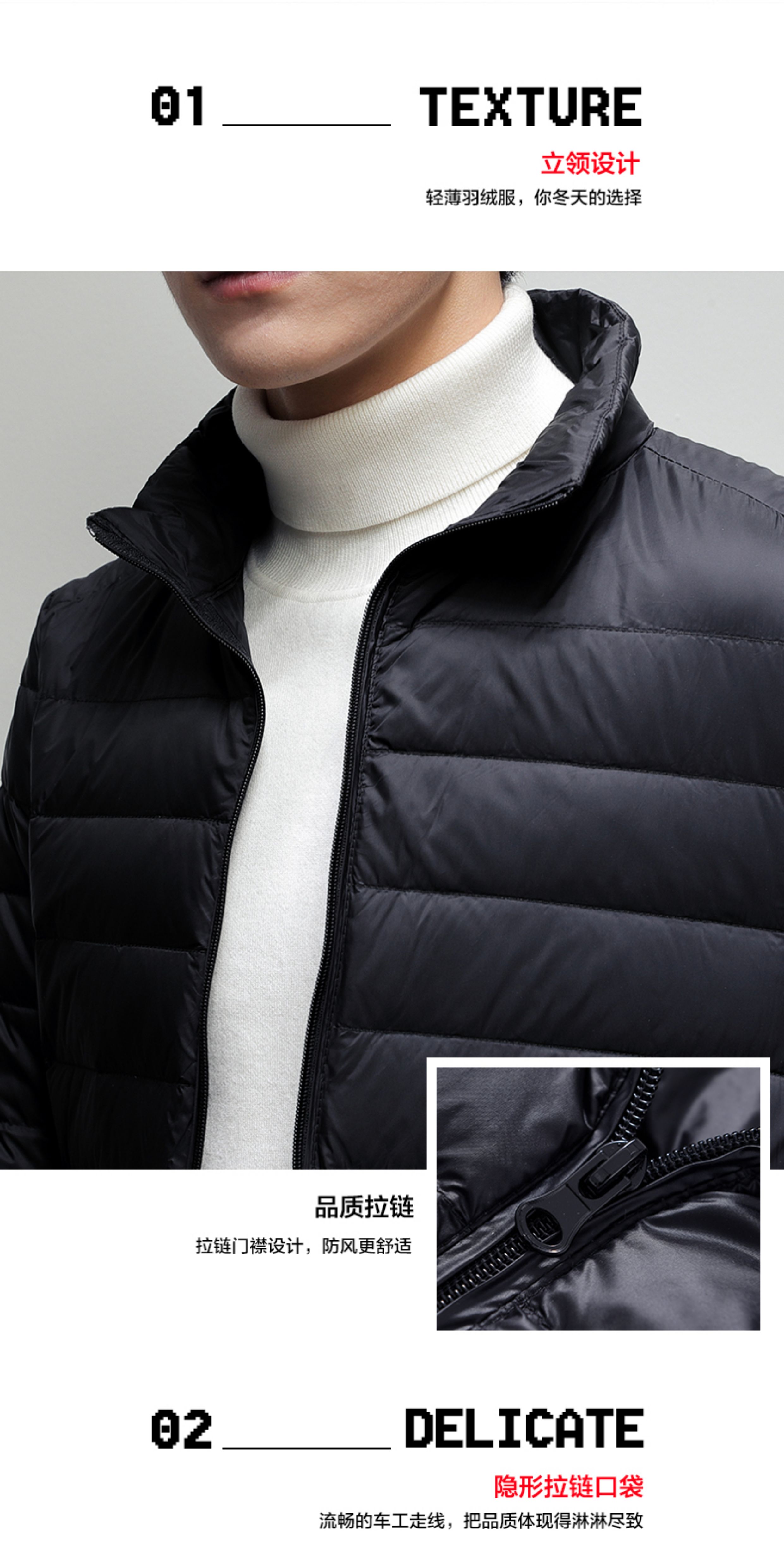 啄木鳥黑色白鴨絨輕薄短款羽絨服秋冬季男款立領保暖防風春秋外套
