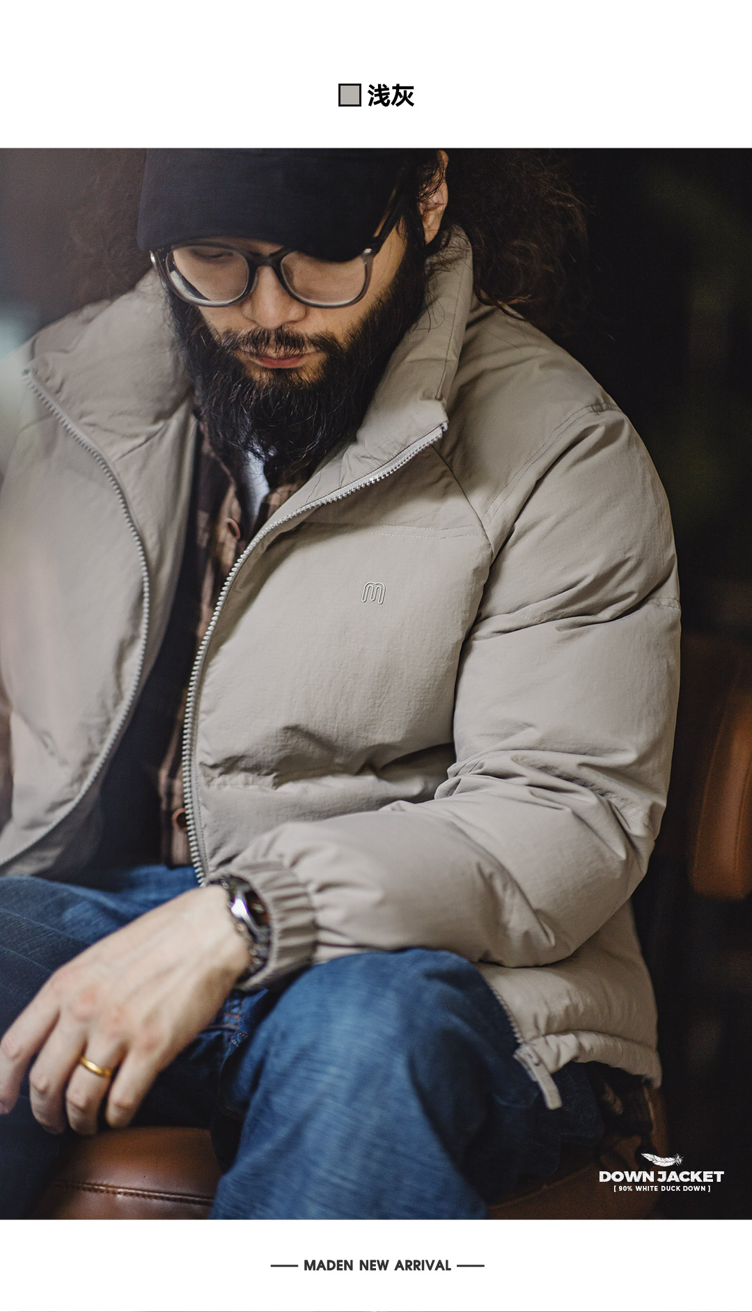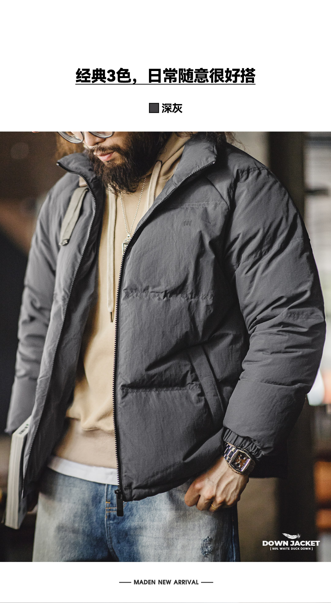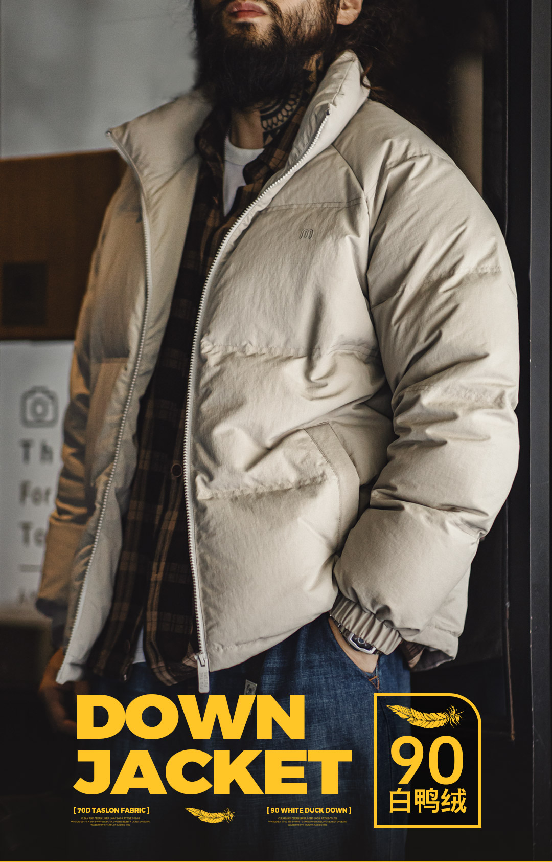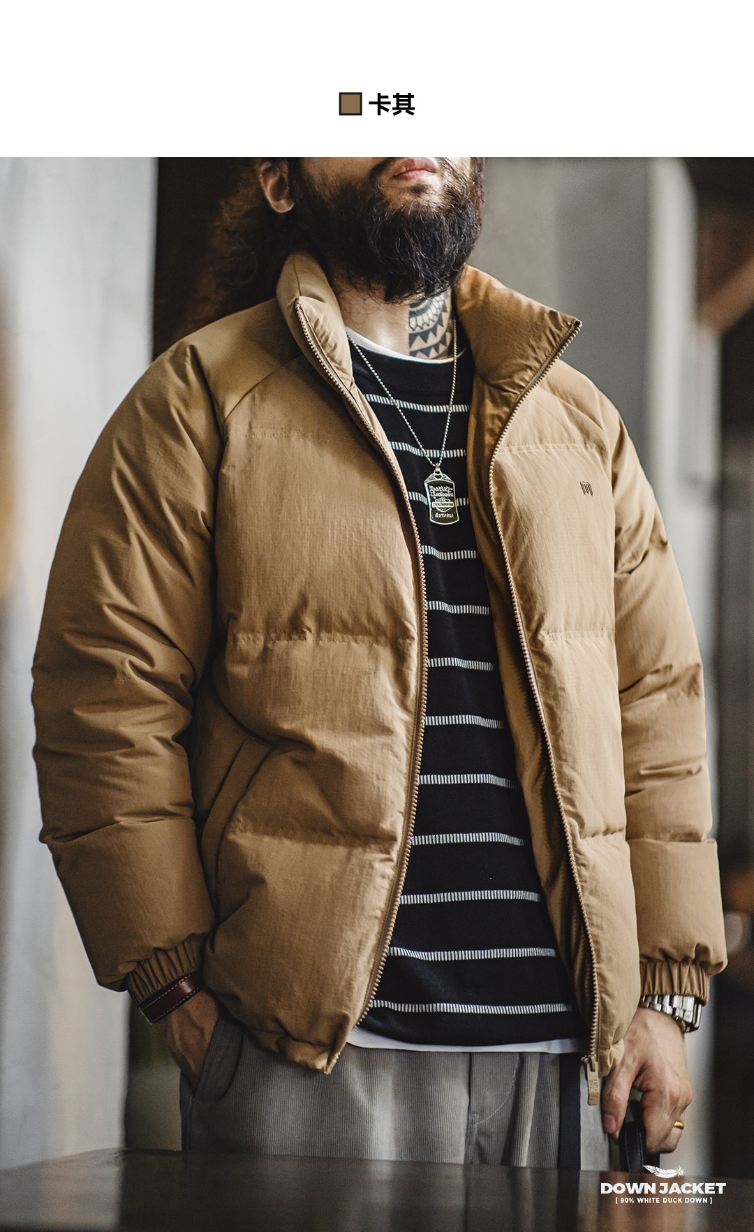 馬登工裝美式休閒立領90白鴨絨羽絨服戶外短款麵包服保暖外套男冬