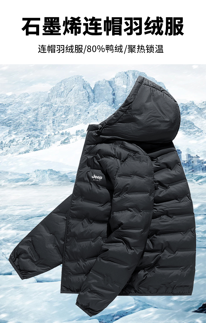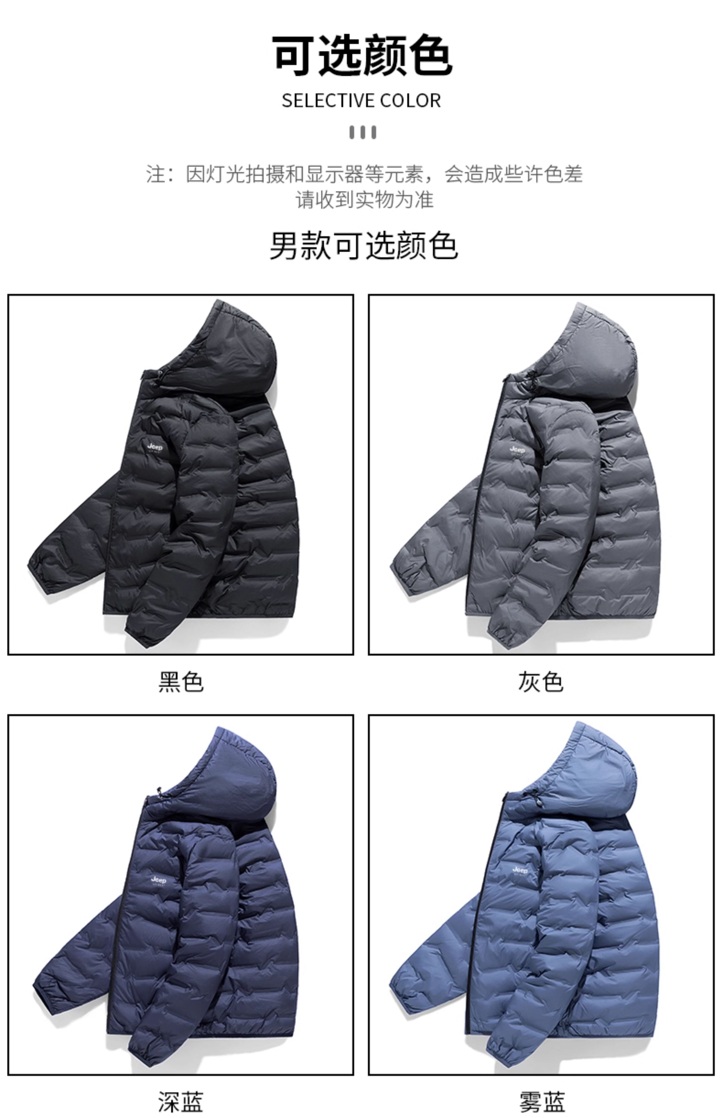 JEEP輕薄羽絨服男款冬季2025新款青少年男生連帽男士白鴨絨外套