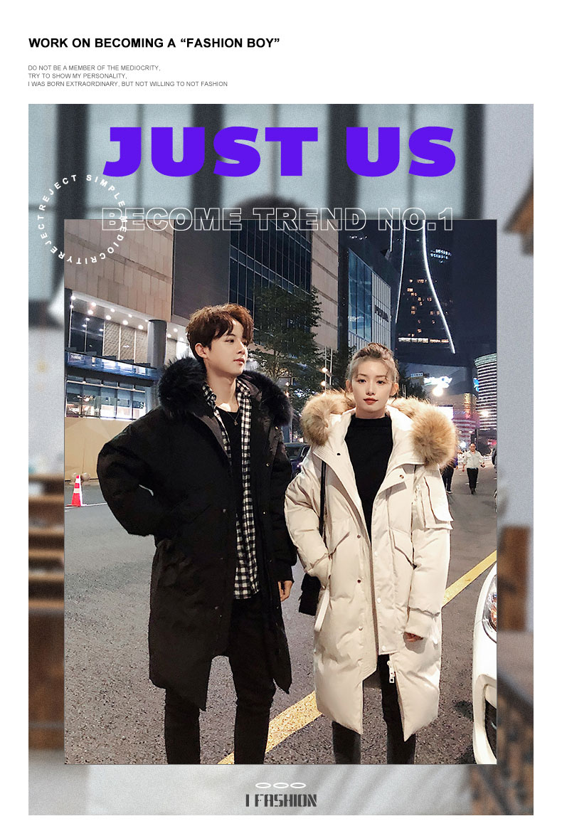 中長款情侶羽絨服2025新款連帽毛領時尚寬松男女款保暖加厚外套潮