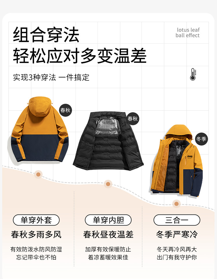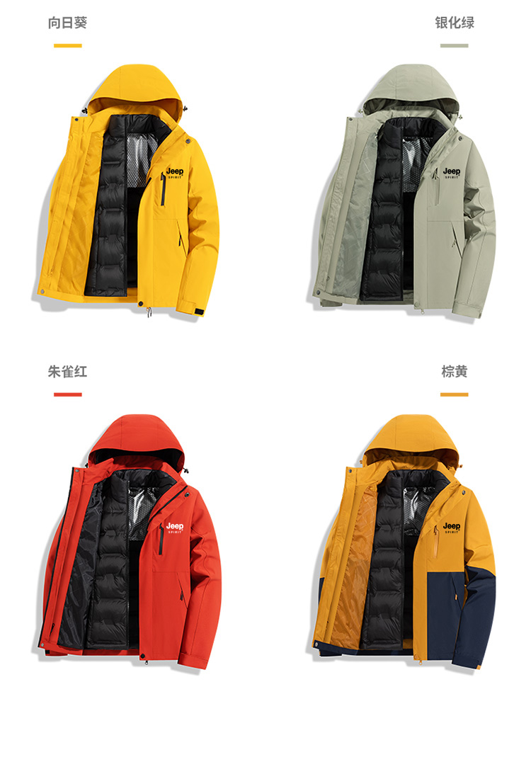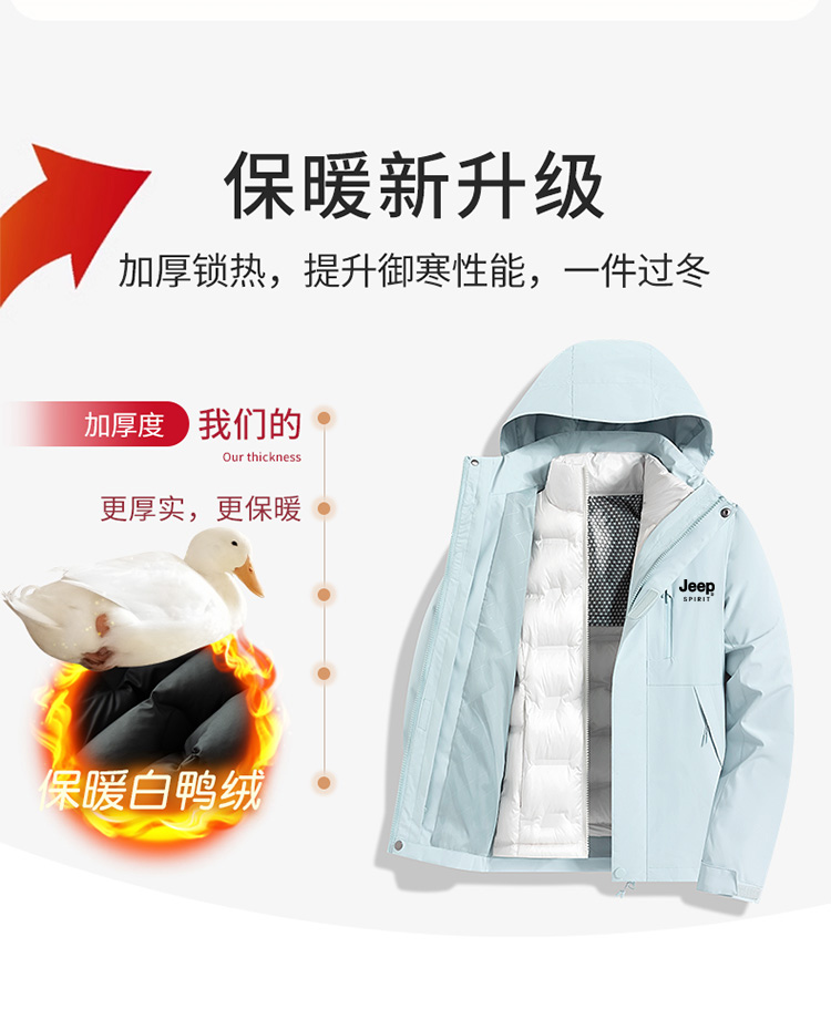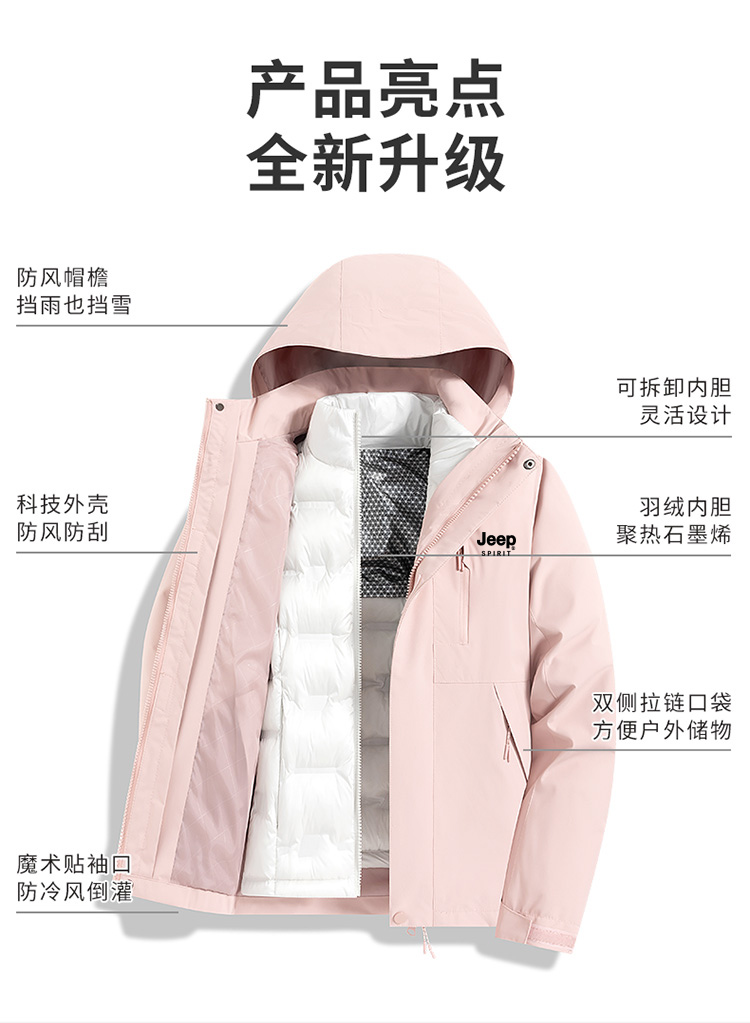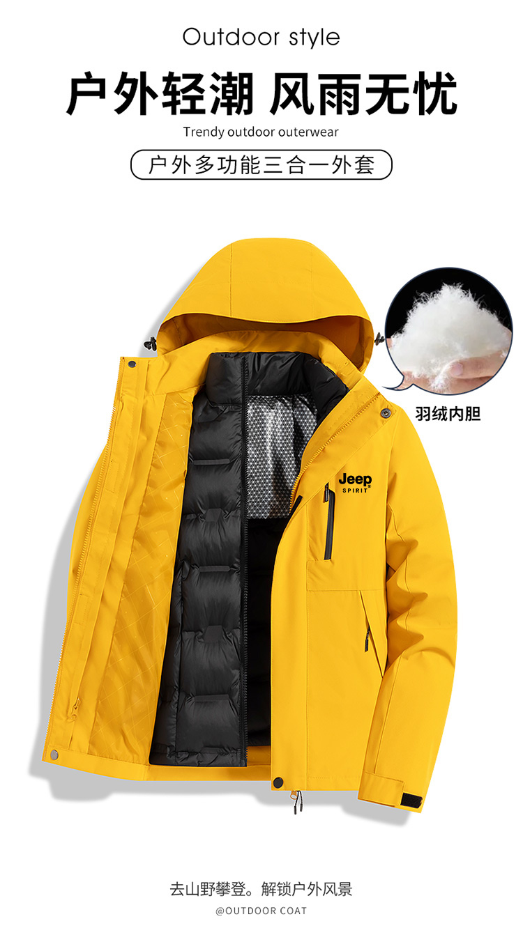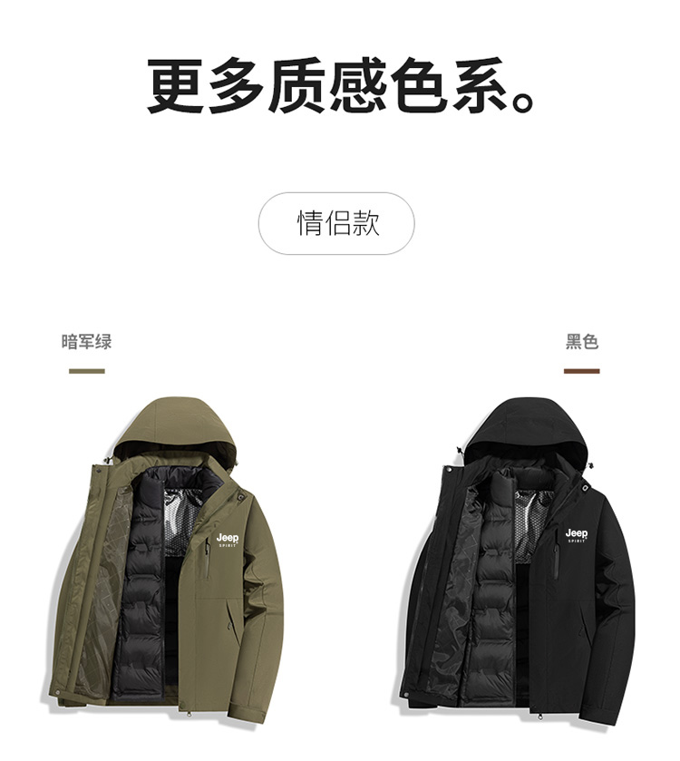 JEEP沖鋒衣羽絨服三合一男女款冬季外套2025新款防風暴雨級登山服
