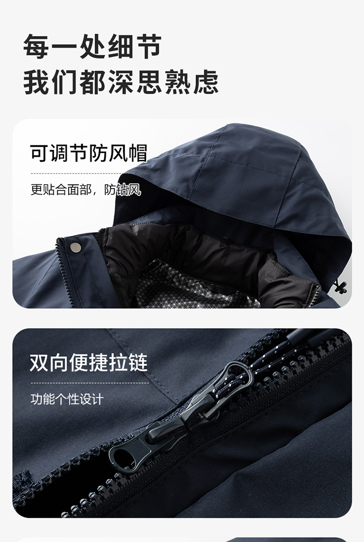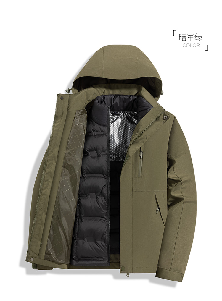 JEEP三合一防風防水羽絨服沖鋒衣男款可拆卸2025新款冬季保暖外套