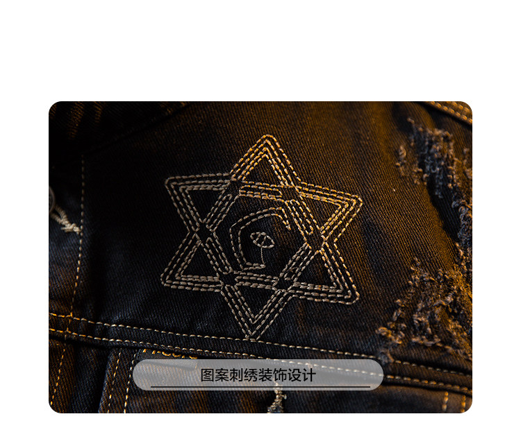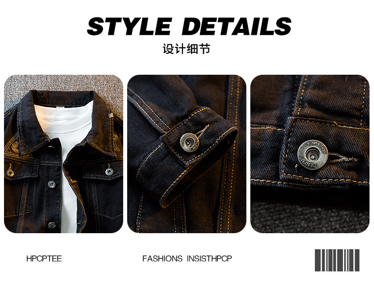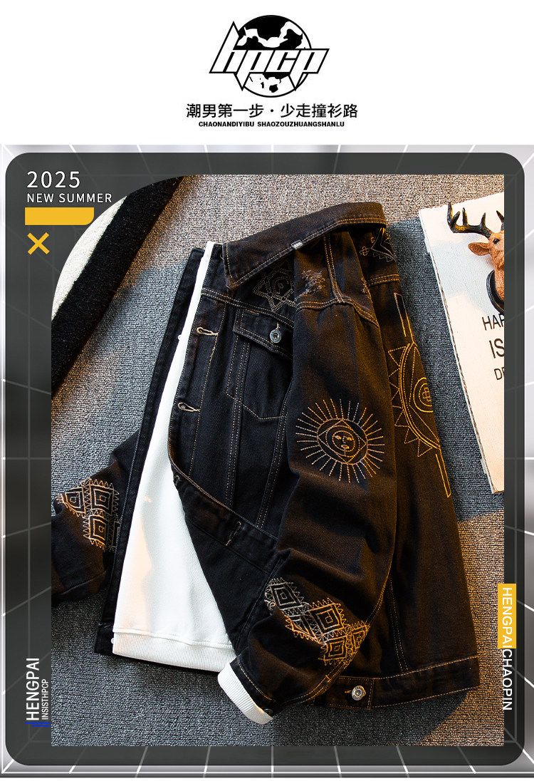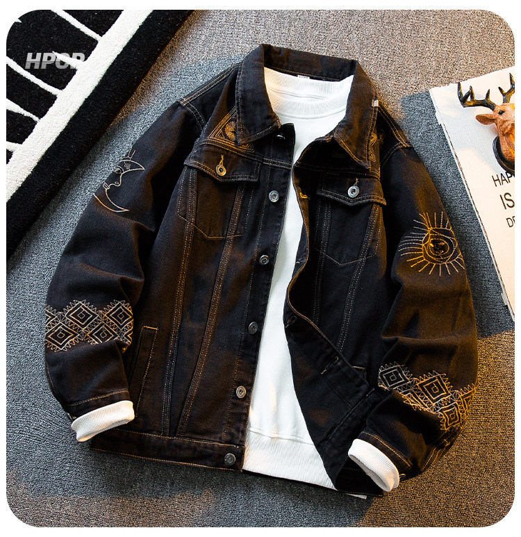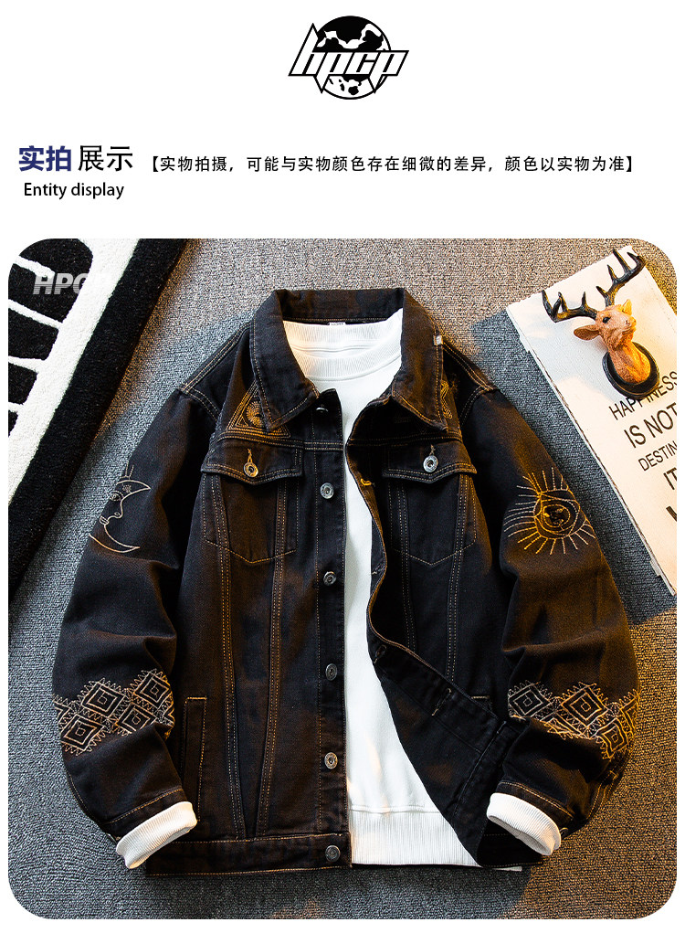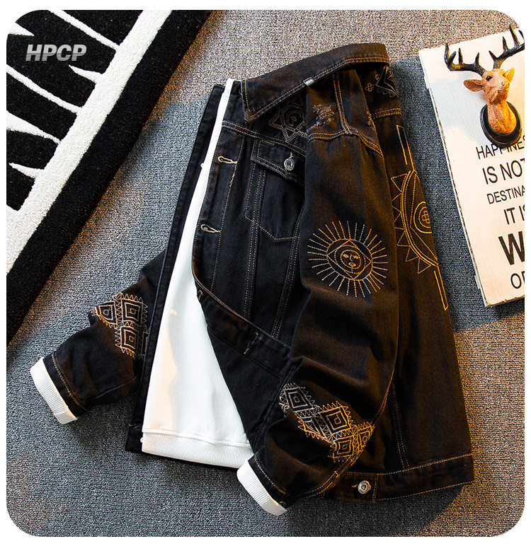 HPCP歐美風重工刺綉牛仔外套男春秋潮牌痞帥男士繙領休閒夾克衣服