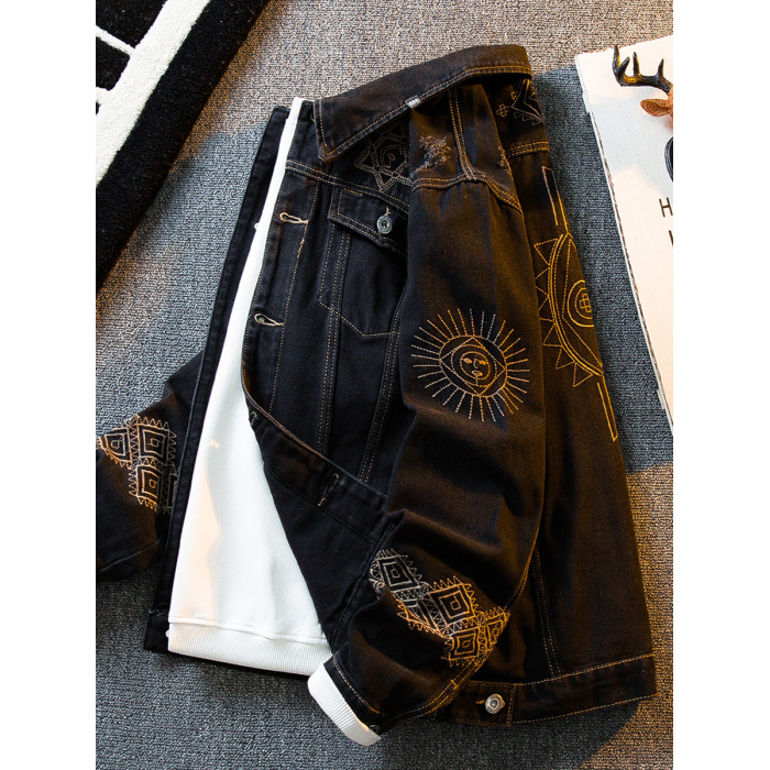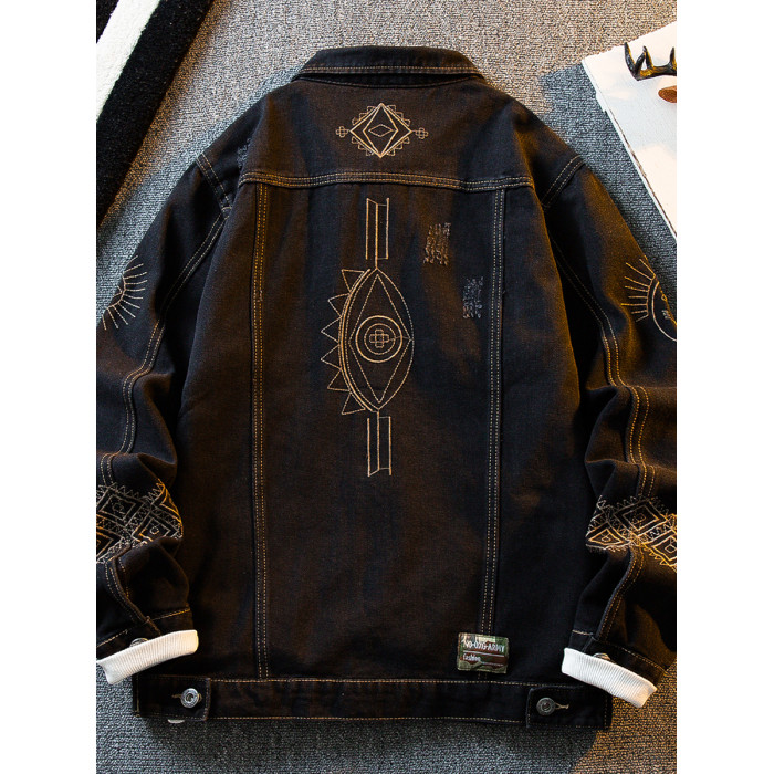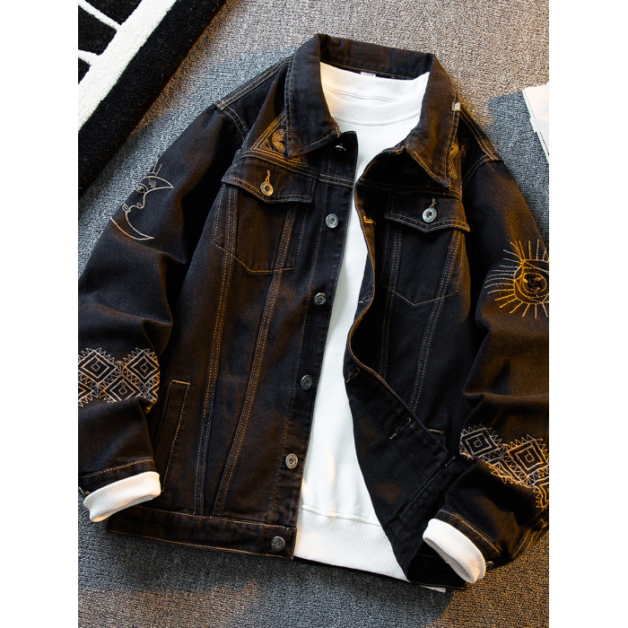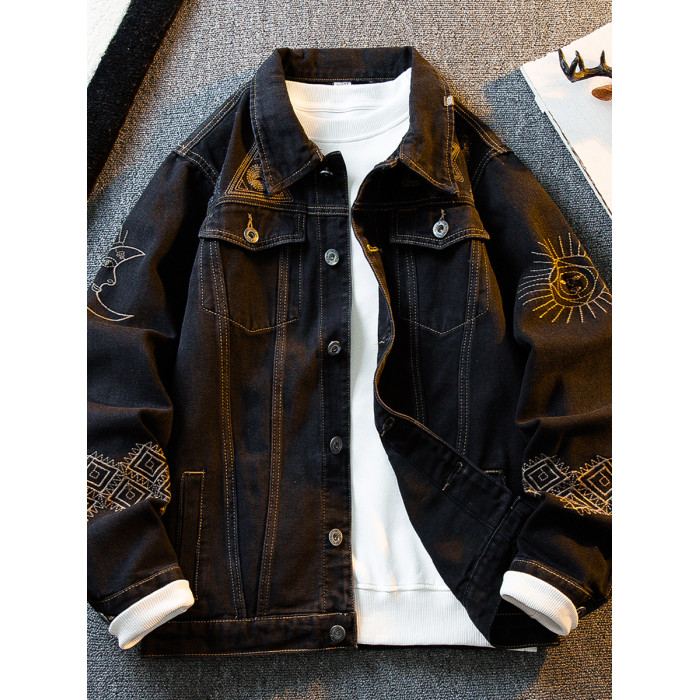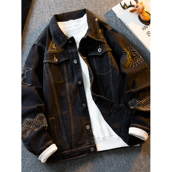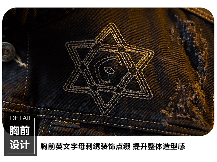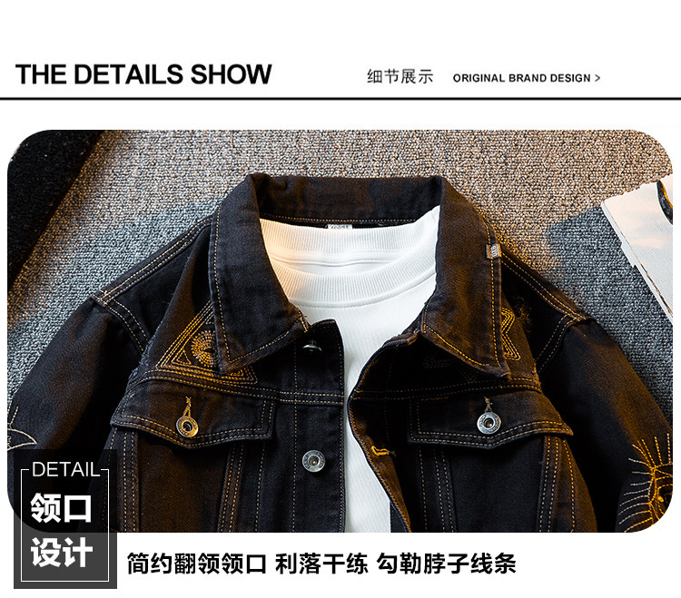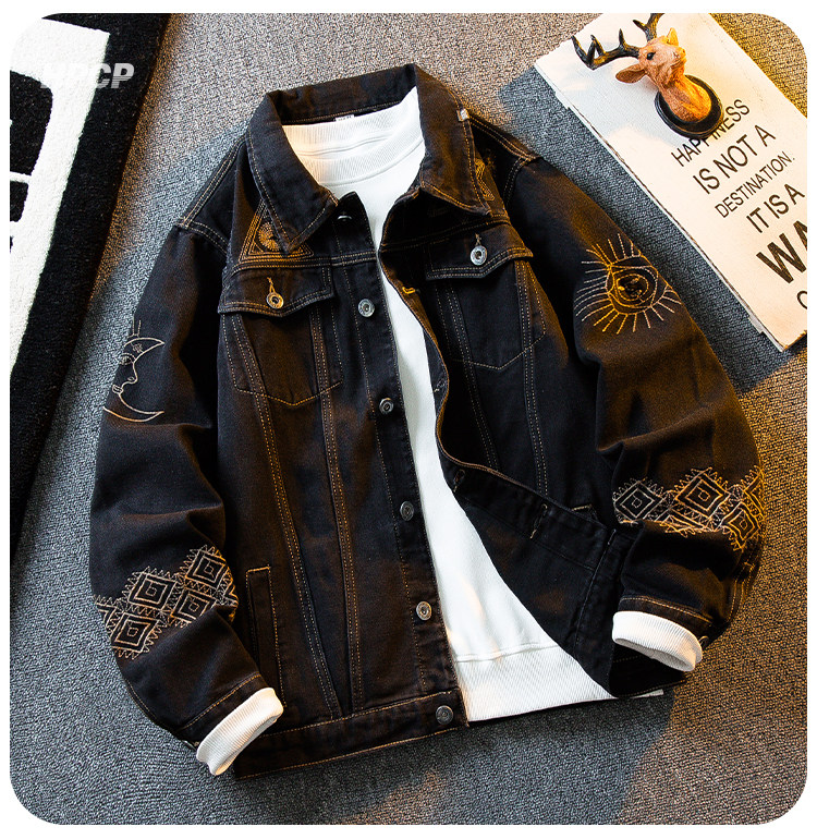 HPCP歐美風重工刺綉牛仔外套男春秋潮牌痞帥男士繙領休閒夾克衣服