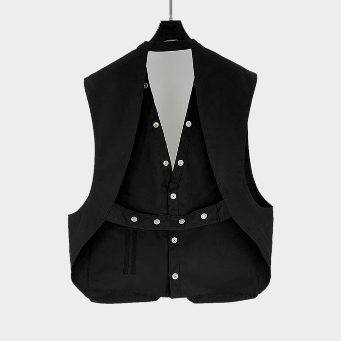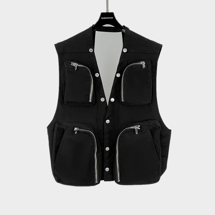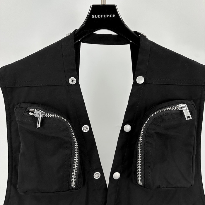 暗黑RO風格秀場功能多口袋機車拉鍊紐釦外搭時尚潮流小馬甲外套