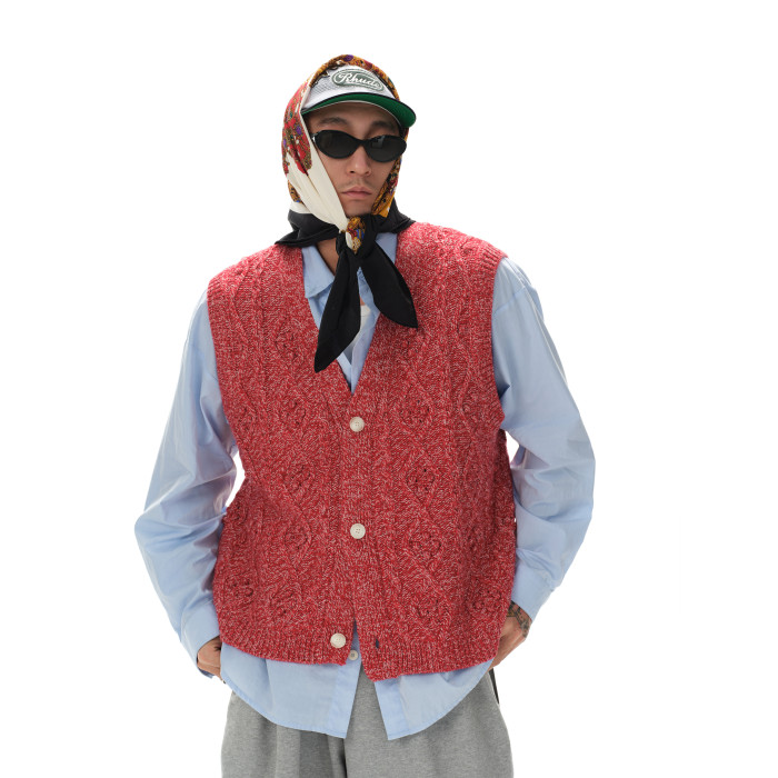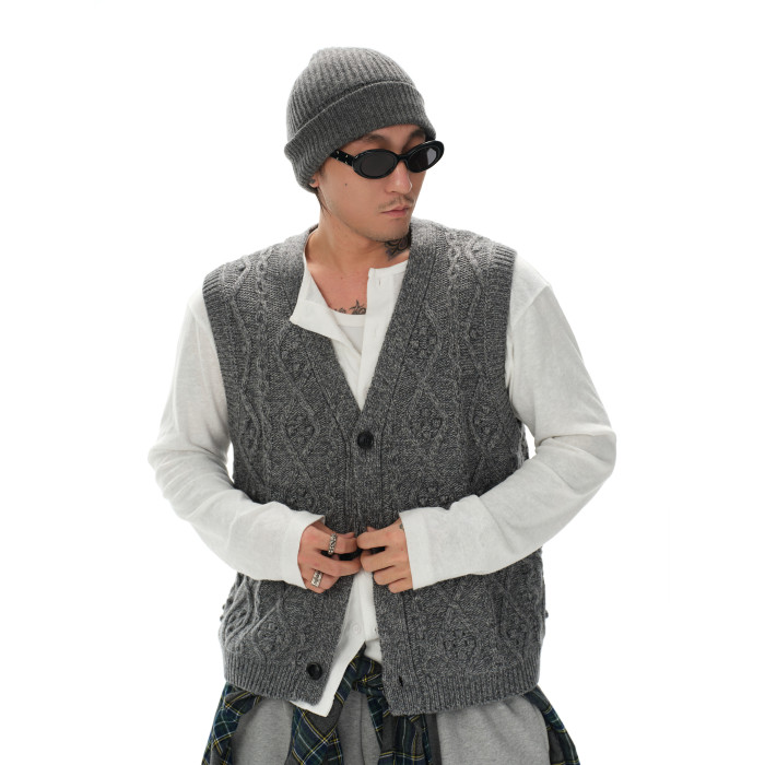 Shizukaumi24 秋冬曡穿 時髦奶奶 羊毛混紡復古針織馬甲
