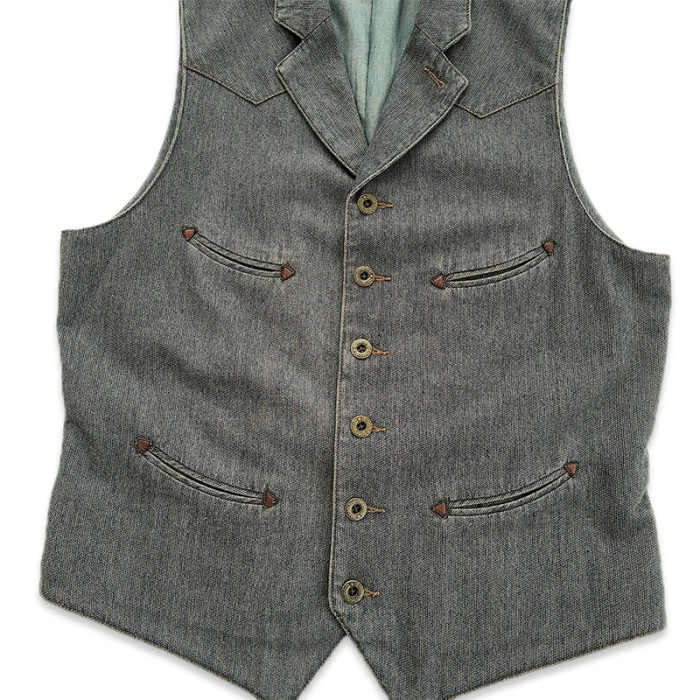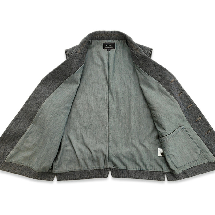 西裡布灰色美式復古休閒西服領馬甲青年修身水洗哢嘰新品非rrl