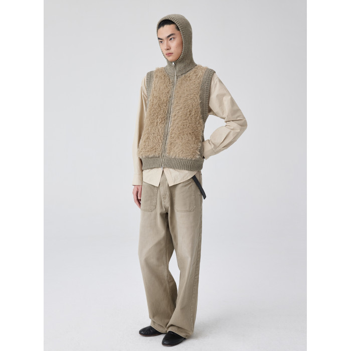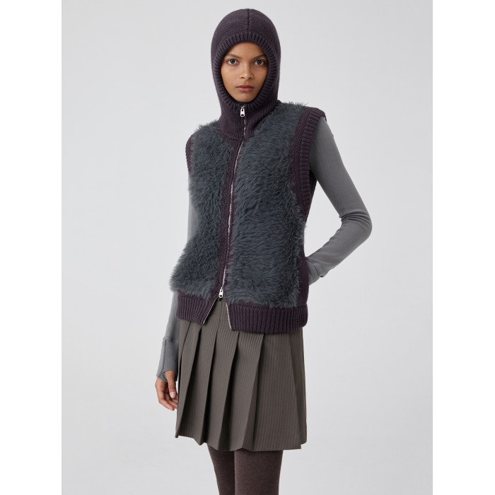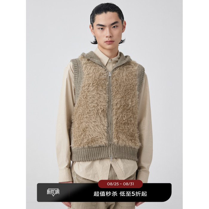 Simple Project*Zipper Knitted Vest長毛拼接拉鍊連帽毛衣馬甲