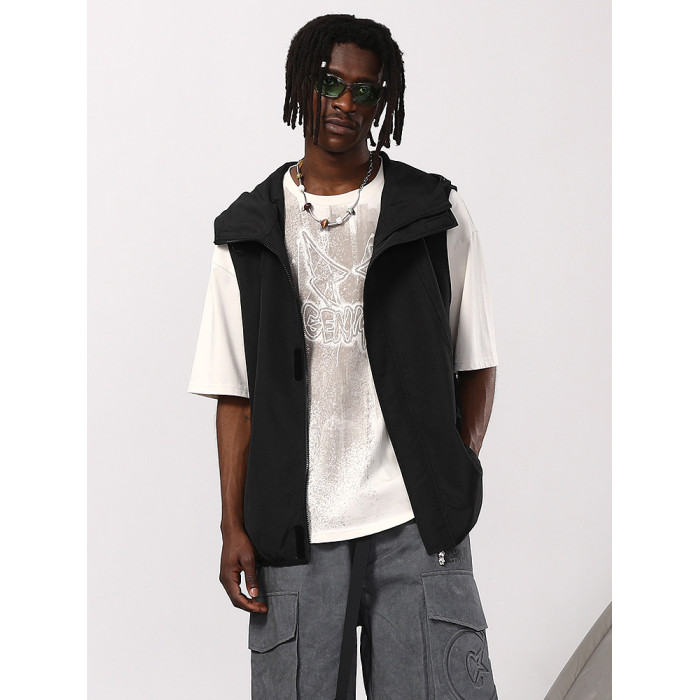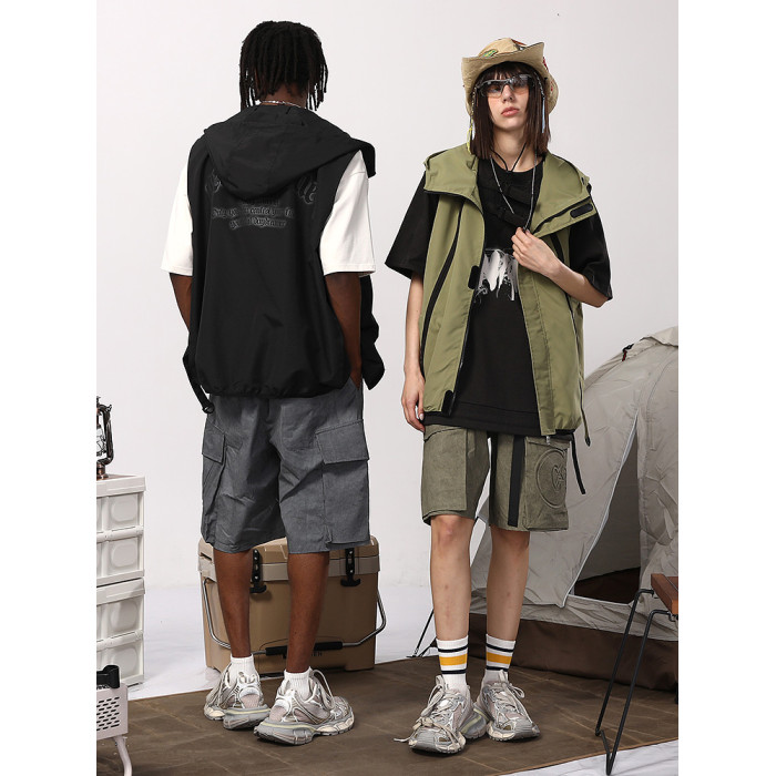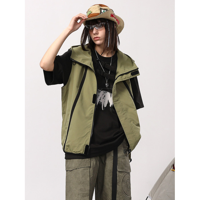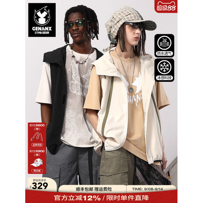 GENANX閃電潮牌美潮山系防水梭織布撞色彈力繩卡扣夏新款連帽馬甲