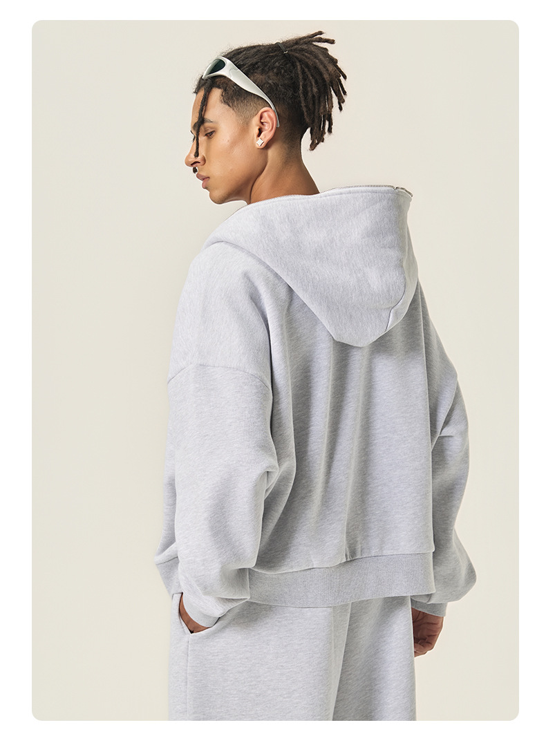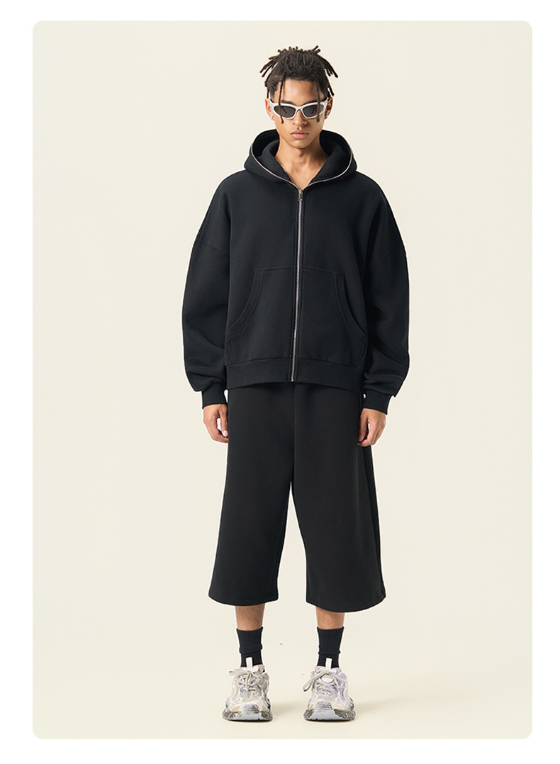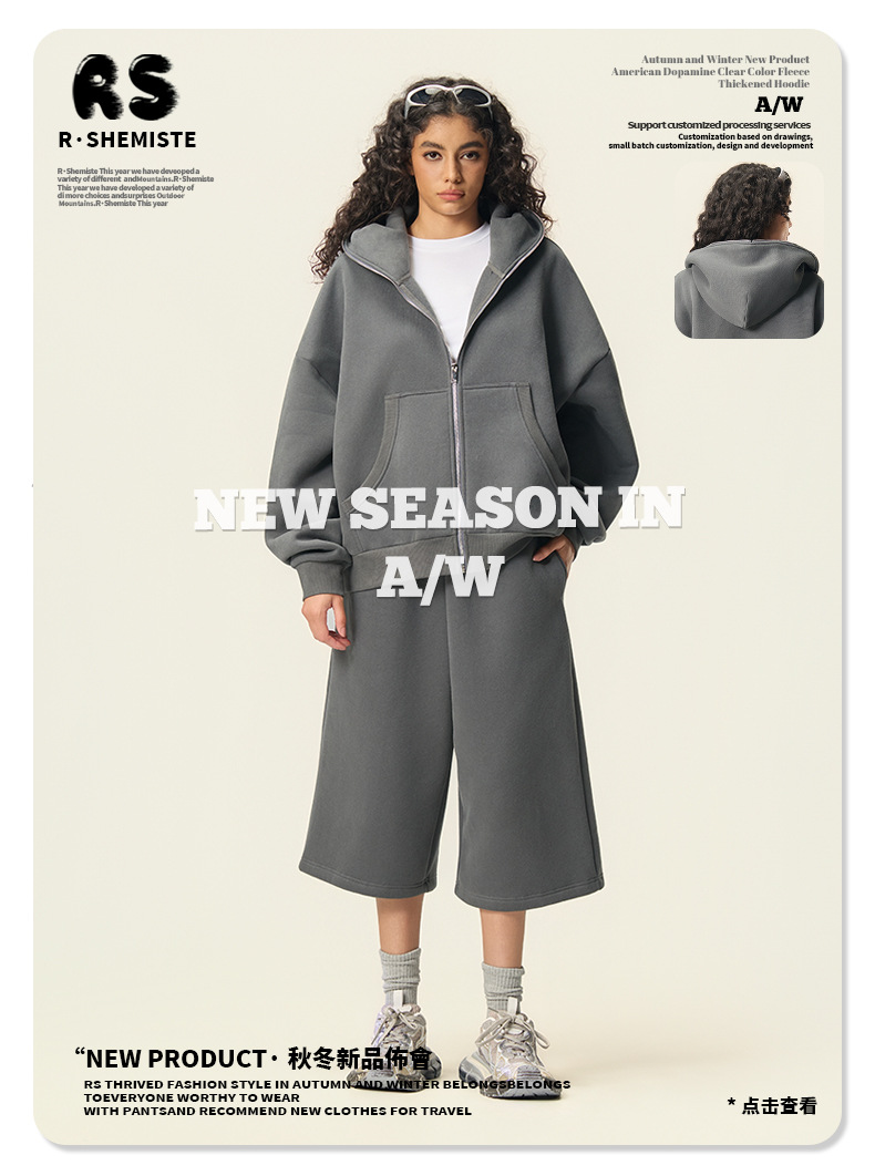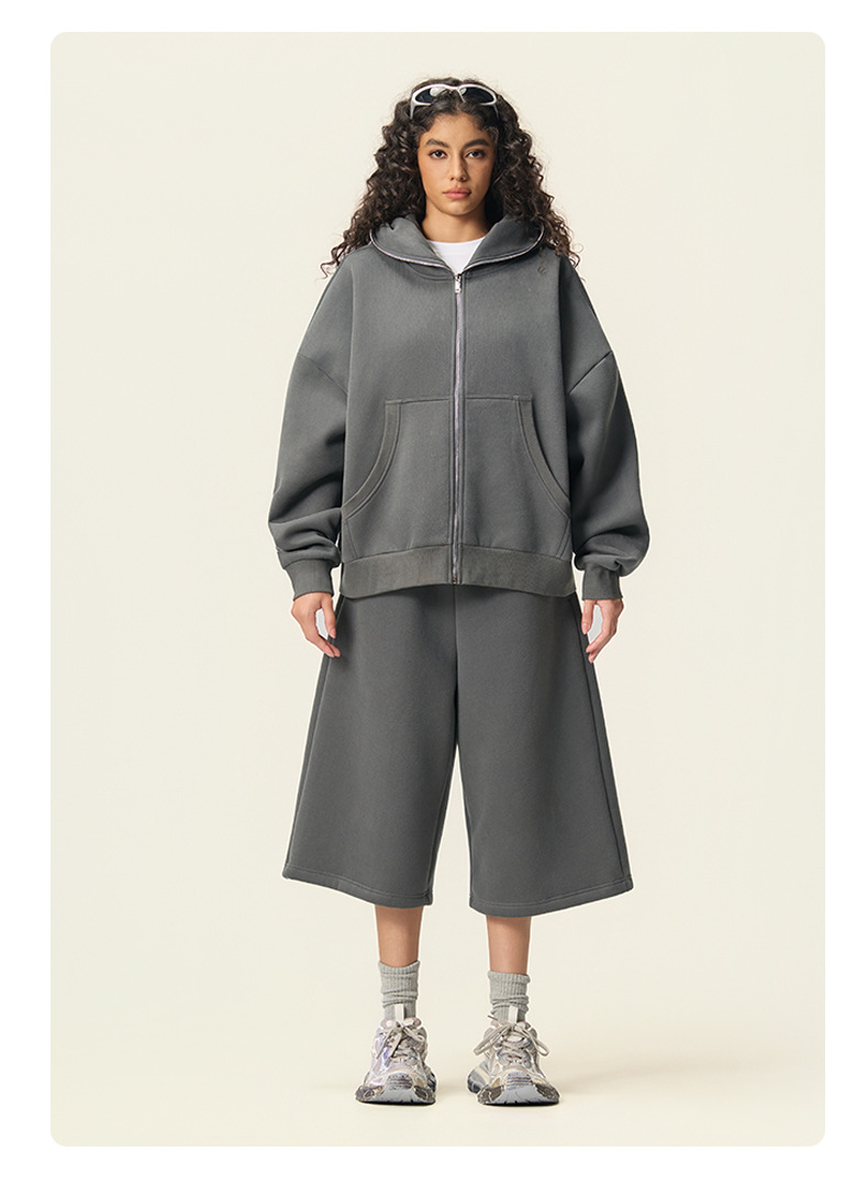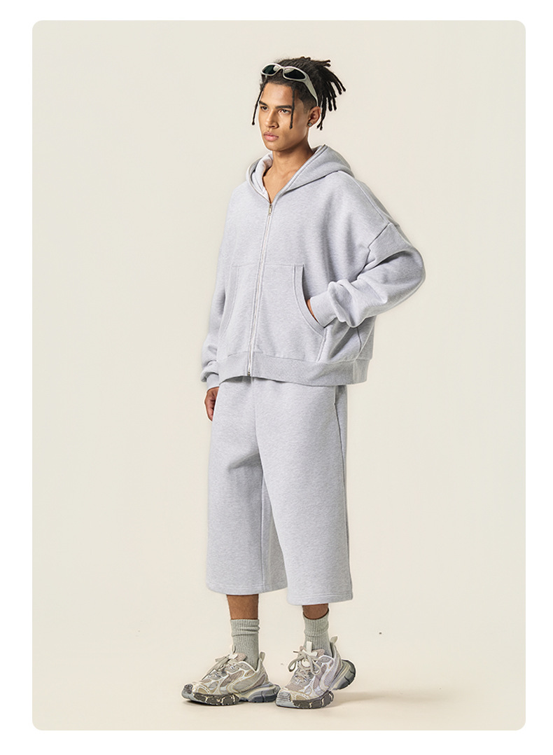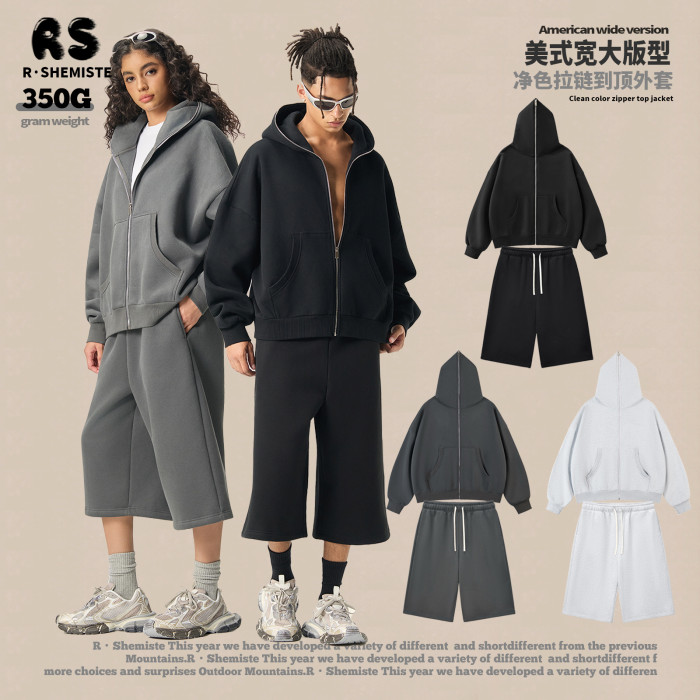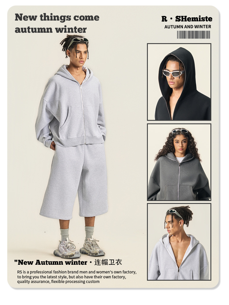RS男裝|Boxy“龐克”短寬350G抓絨拉鍊連帽外套七分褲衛褲套裝