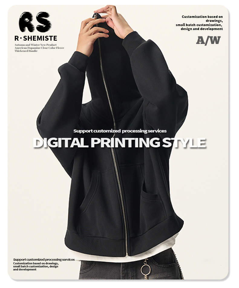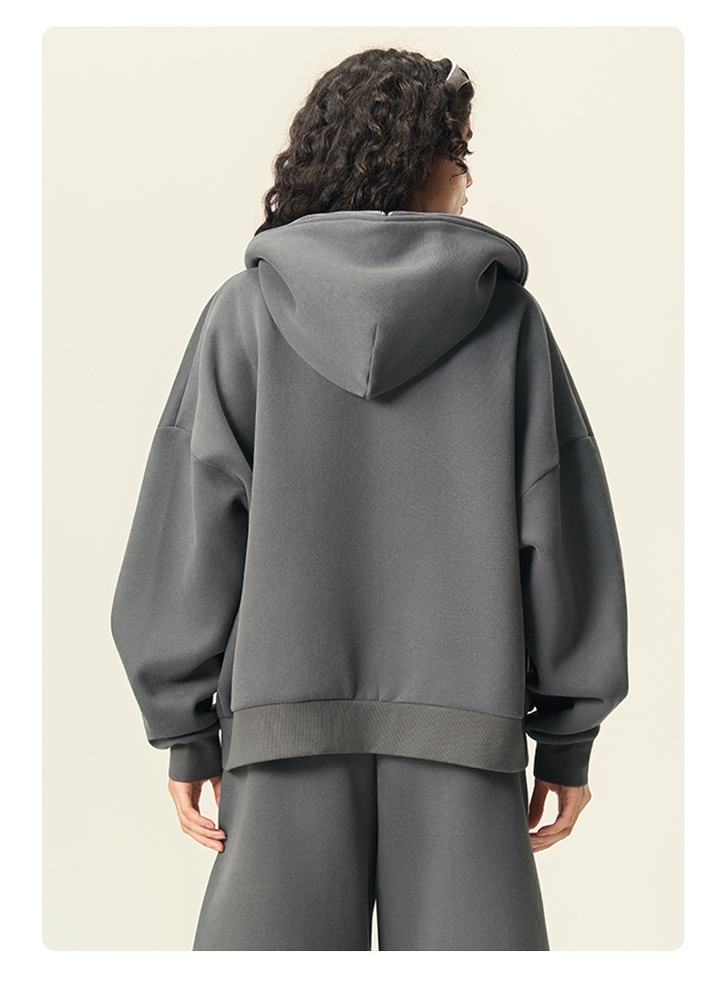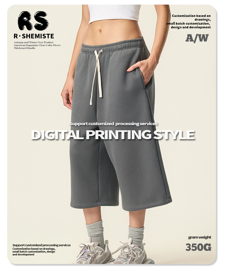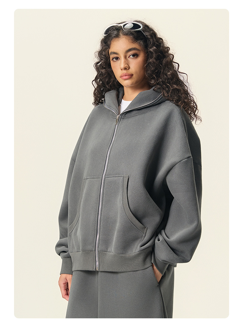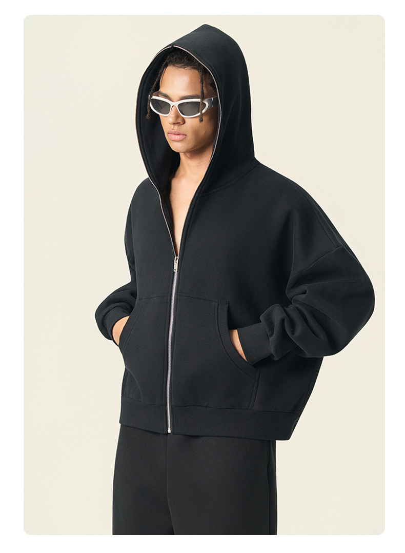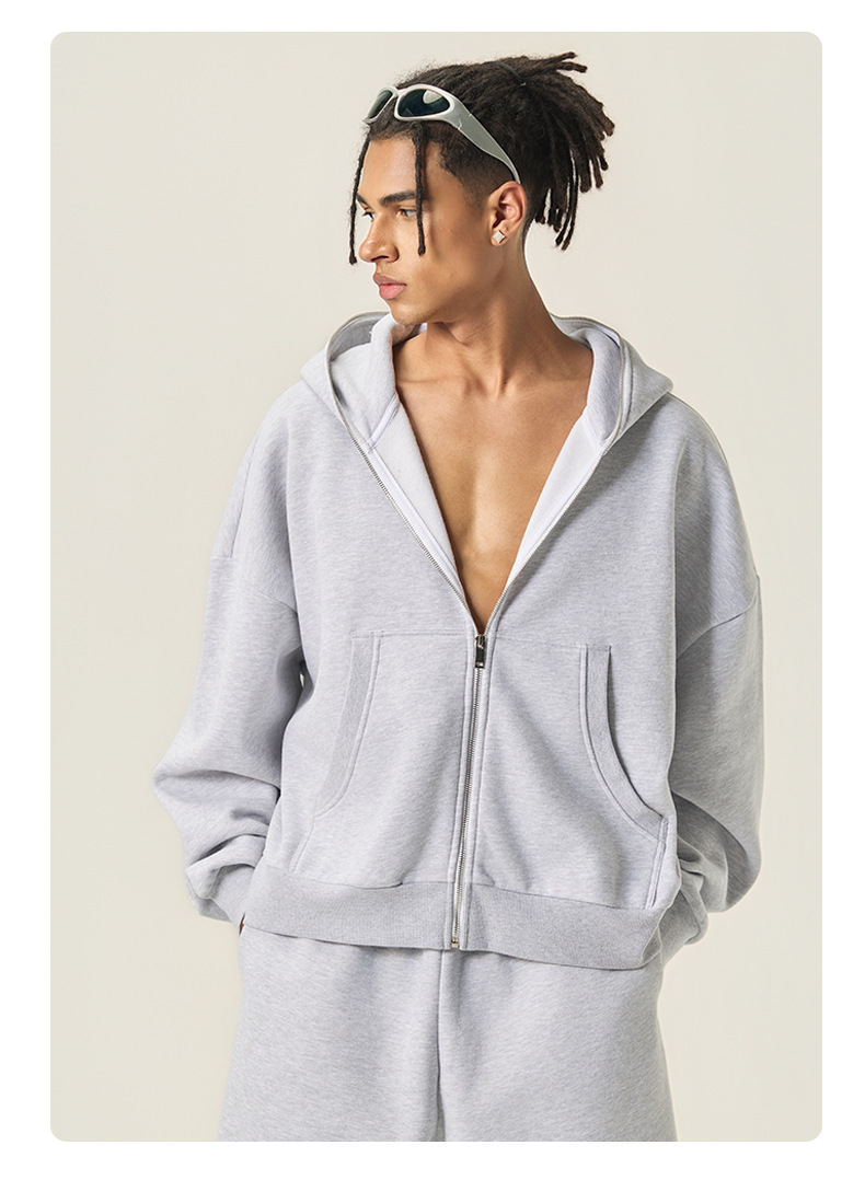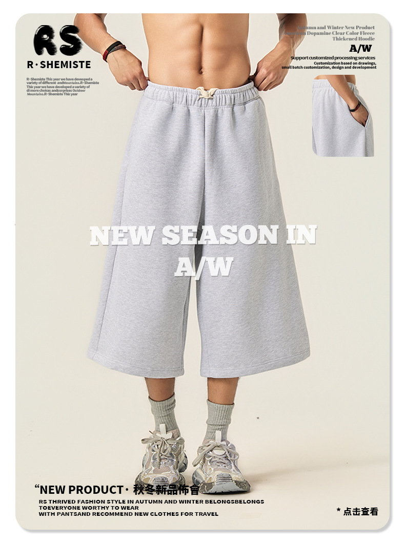 RS男裝|Boxy“龐克”短寬350G抓絨拉鍊連帽外套七分褲衛褲套裝