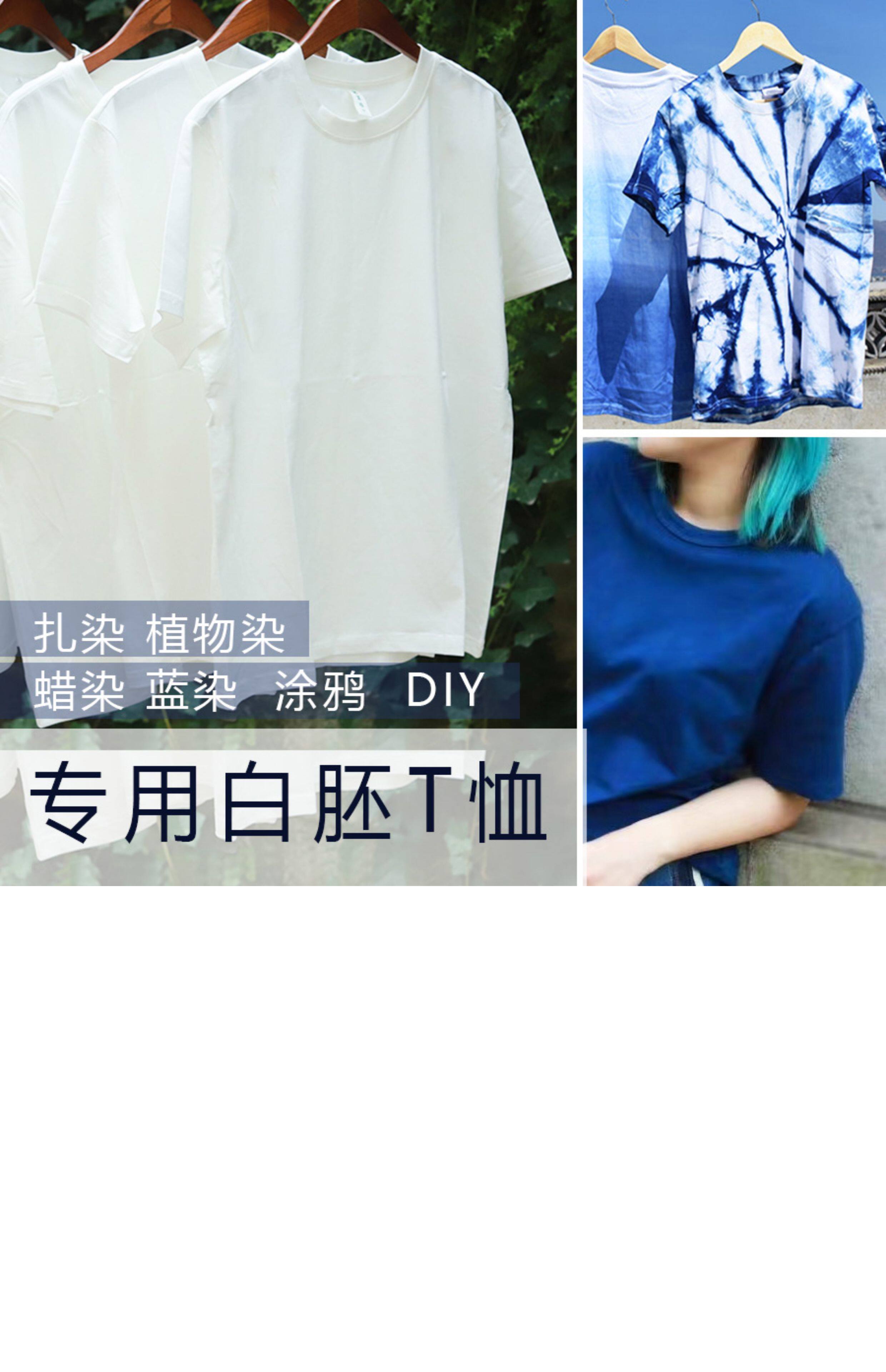 水家坊染色專用白T恤竹纖維植物蠟染紥染藍染純棉塗鴉手工diy白胚