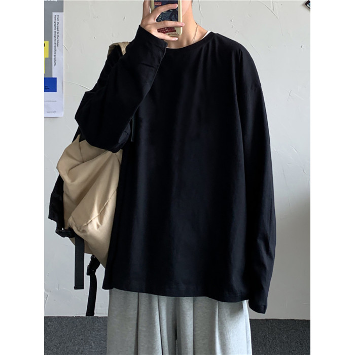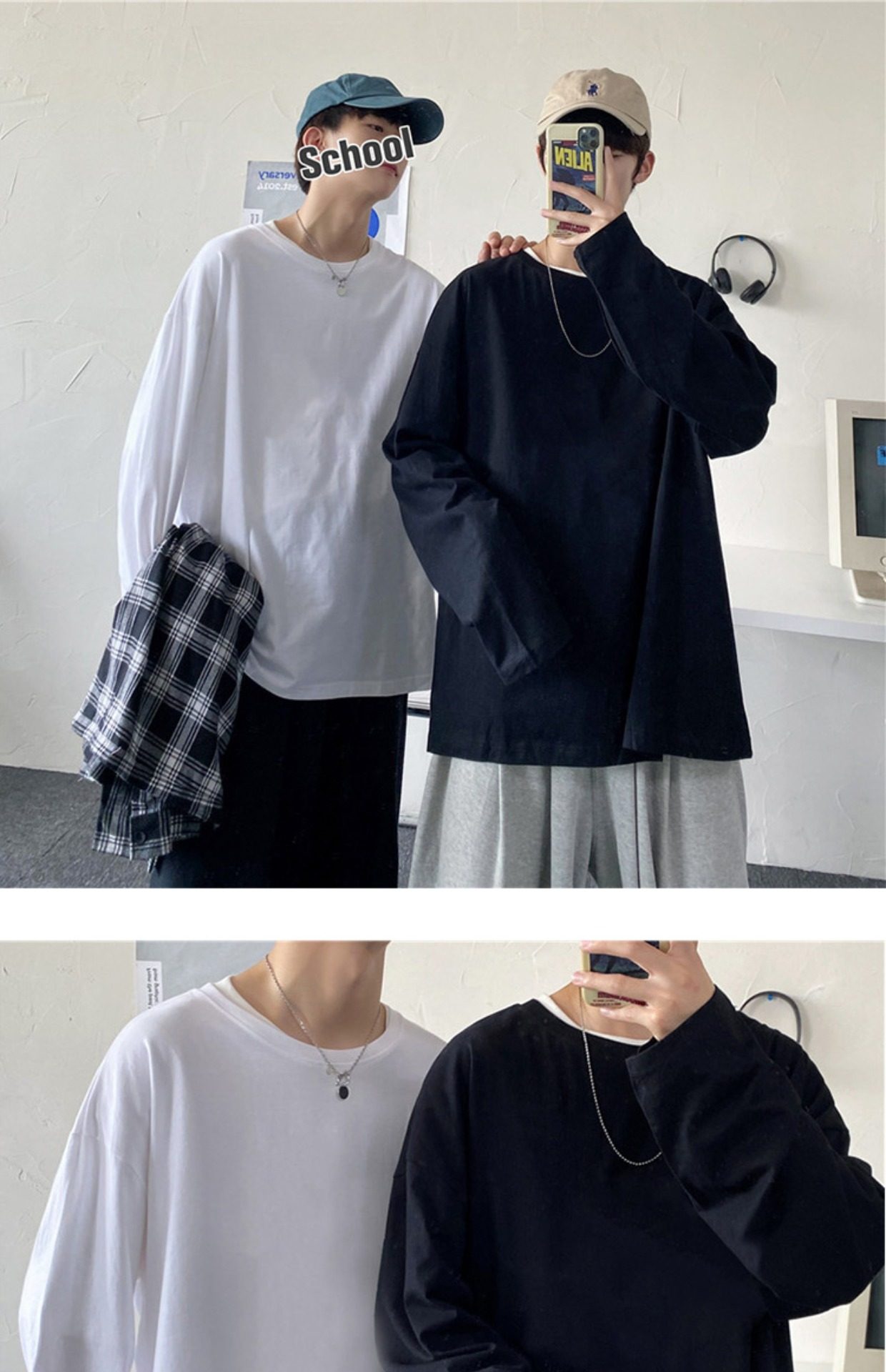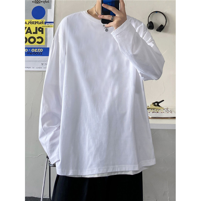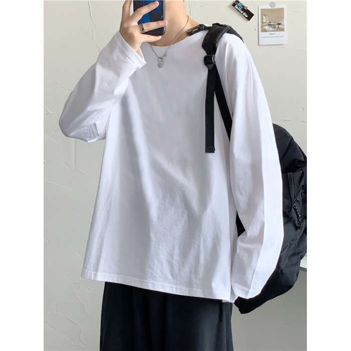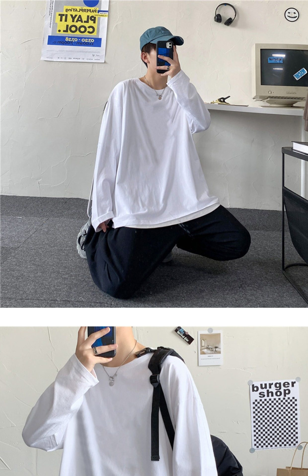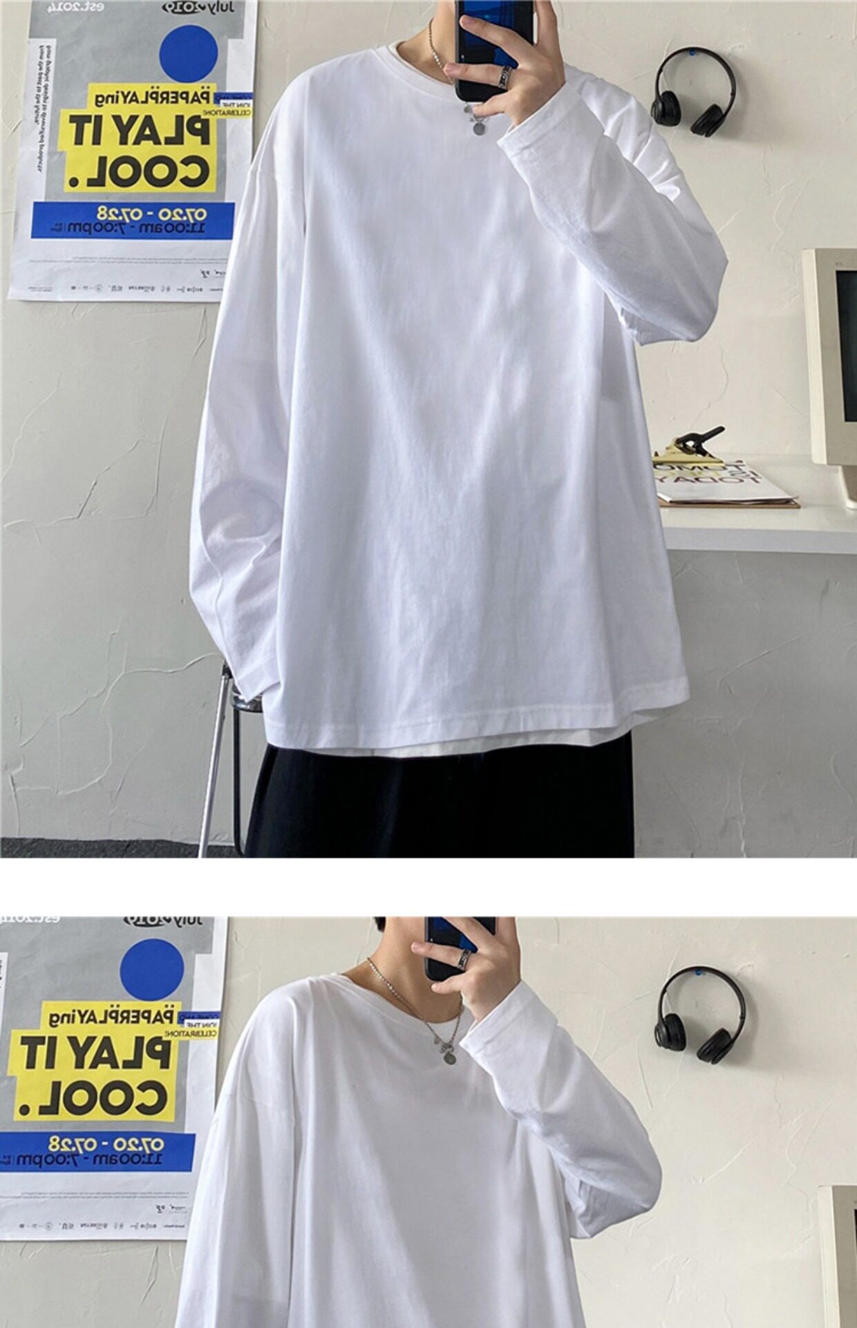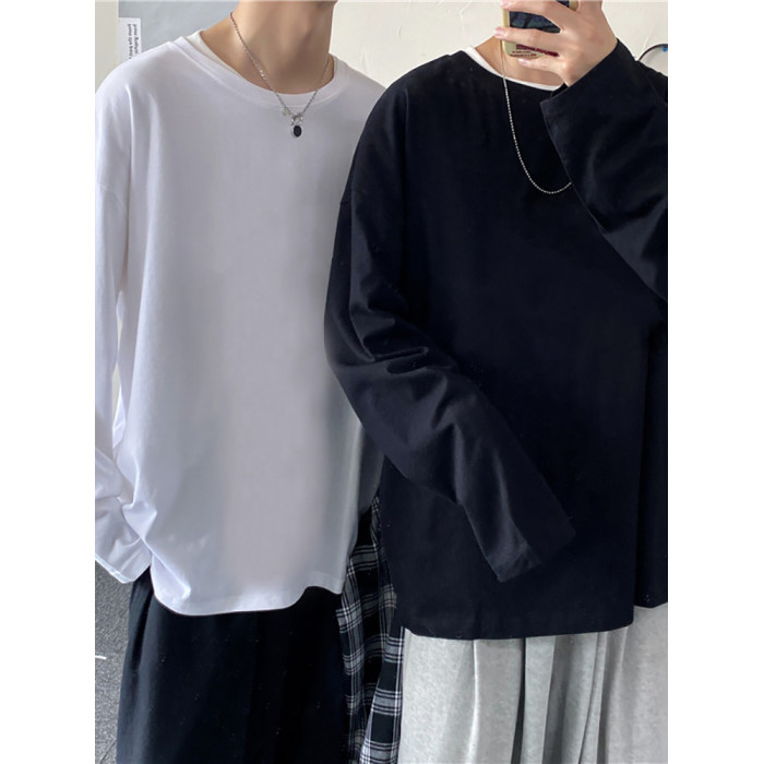 純色長袖t恤男生潮牌秋季韓版寬松百搭潮流ins情侶款打底衫上衣服