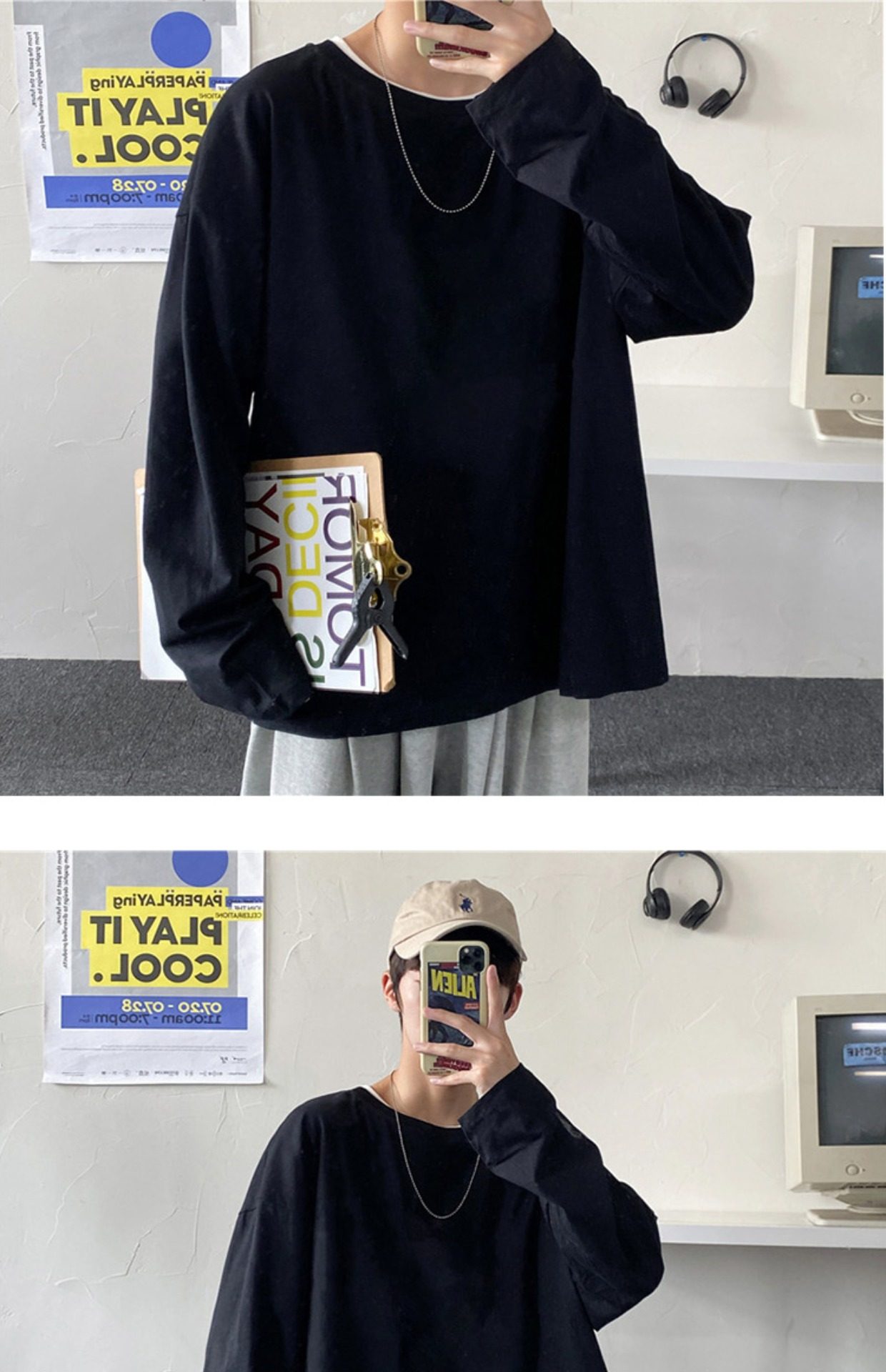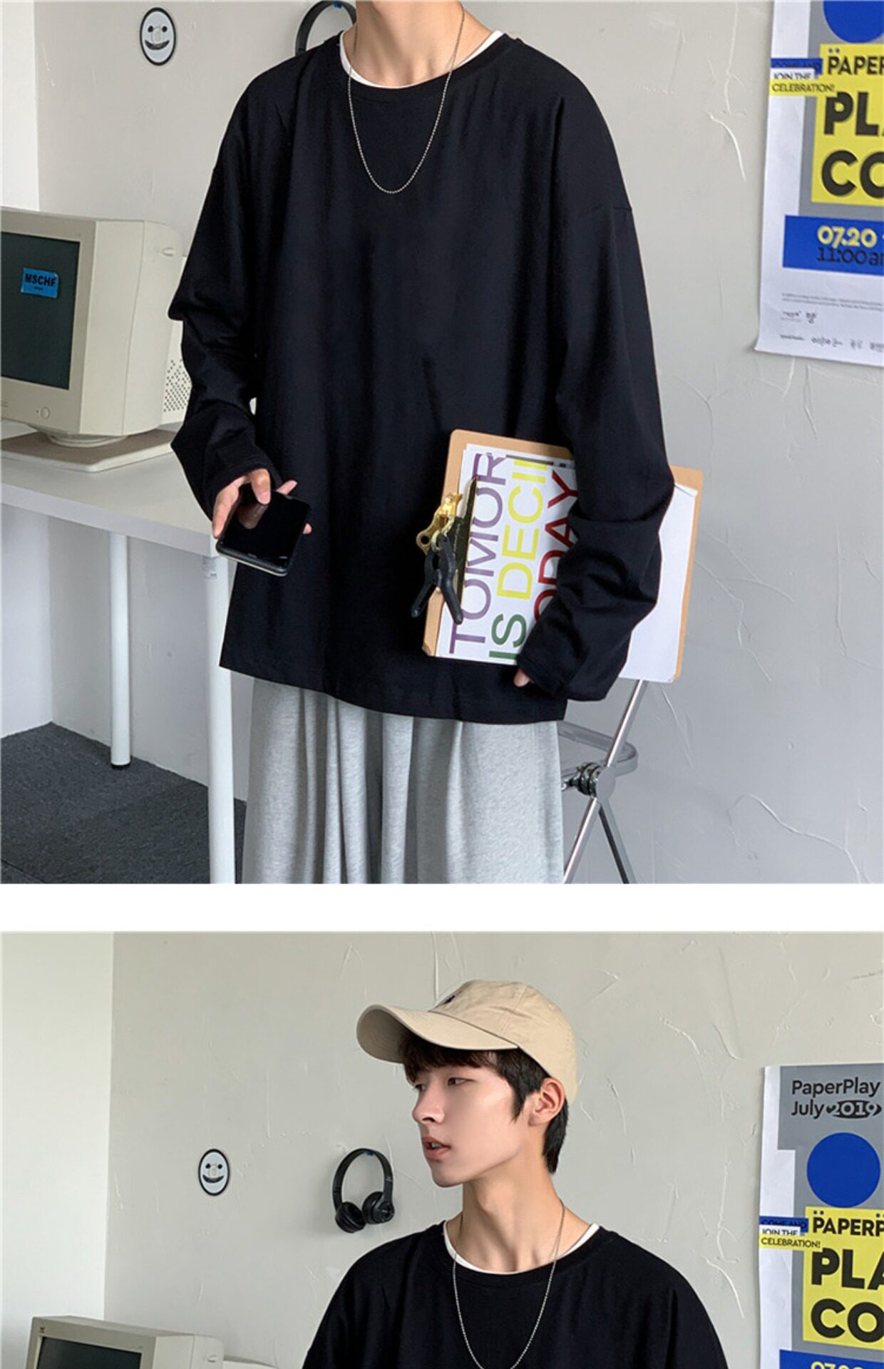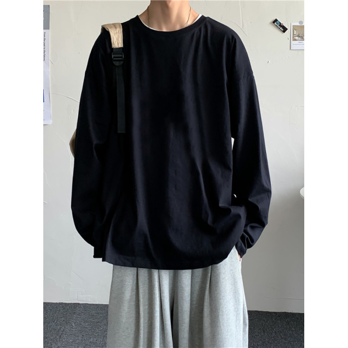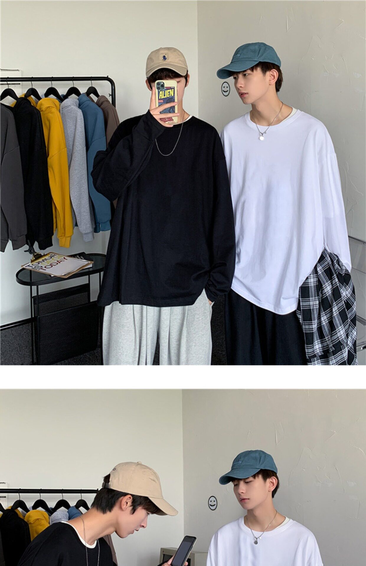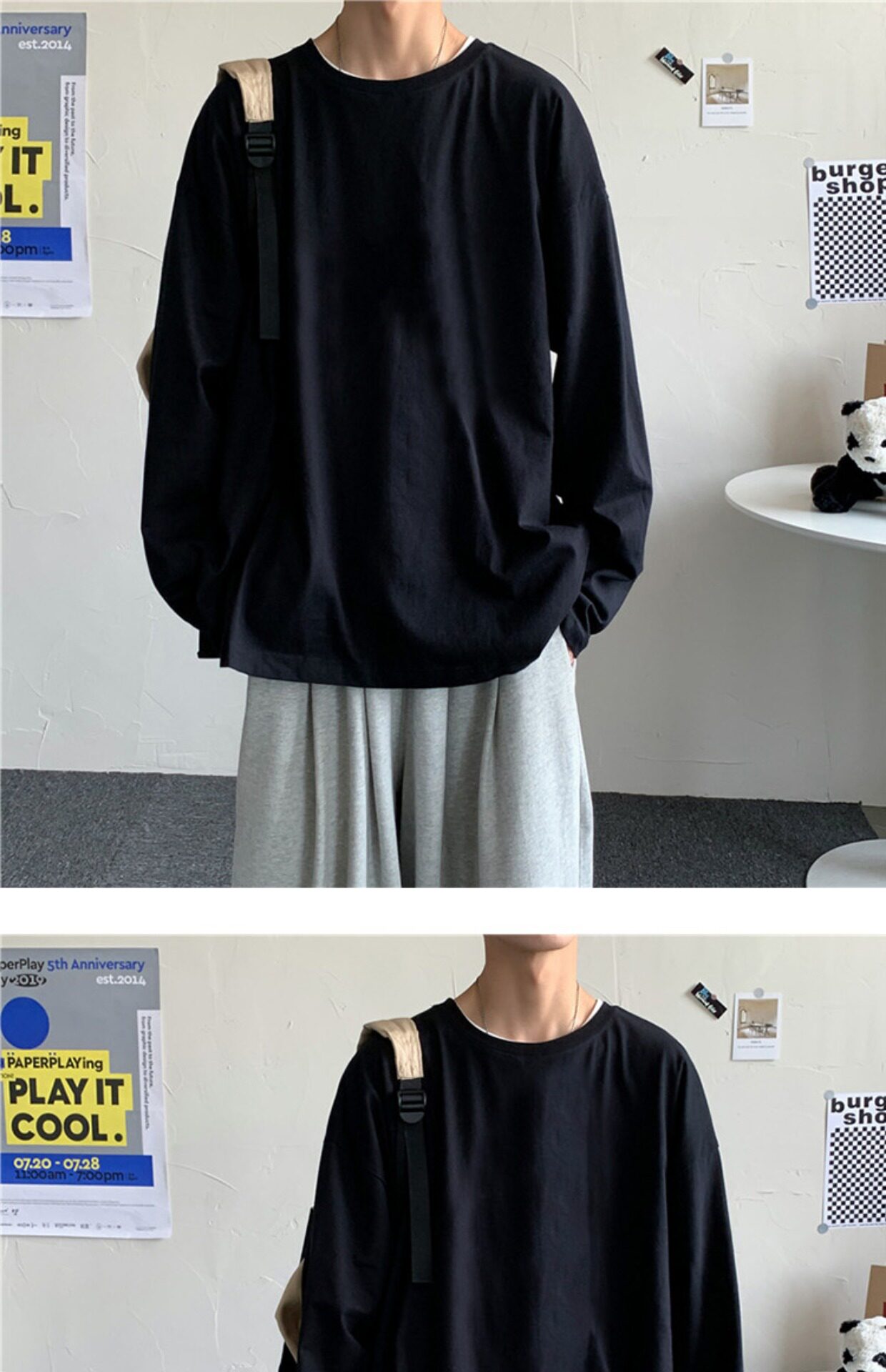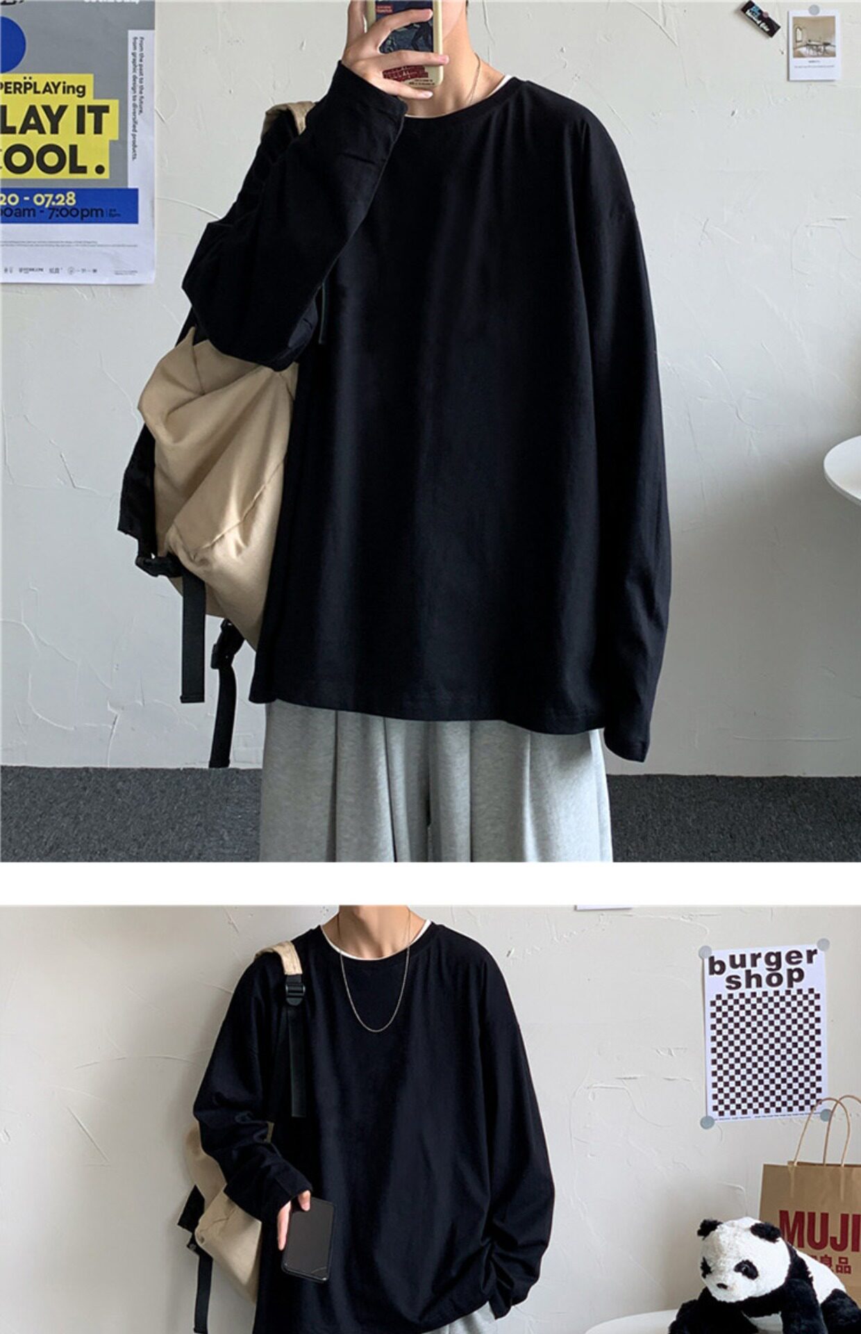 純色長袖t恤男生潮牌秋季韓版寬松百搭潮流ins情侶款打底衫上衣服