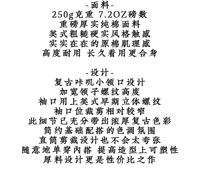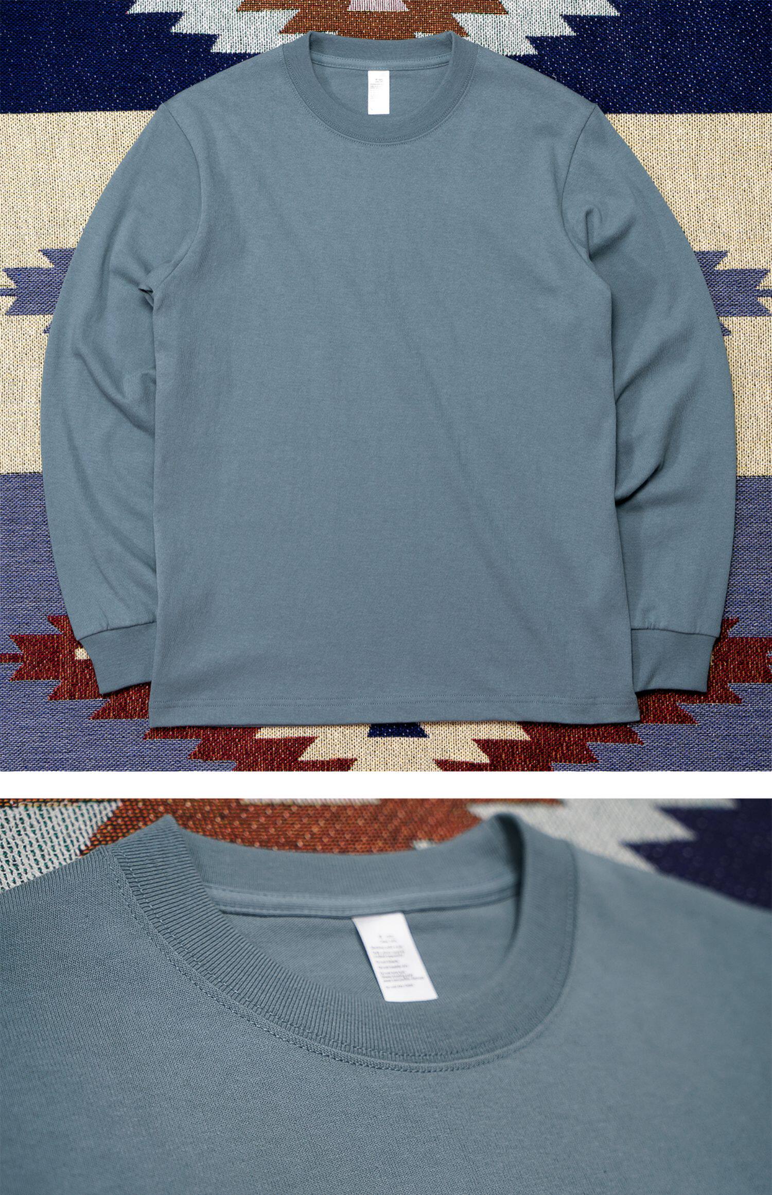 250g 阿美哢嘰復古小領口重磅厚實純棉圓領長袖T恤秋冬打底衫男款