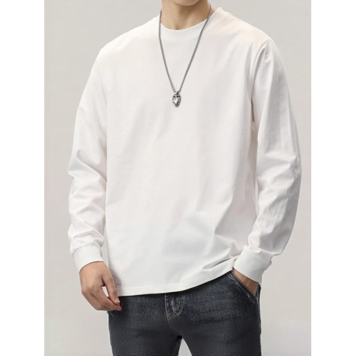純棉長袖t恤男春秋款基礎款純色內搭體恤寬鬆大碼衛衣男士打底衫