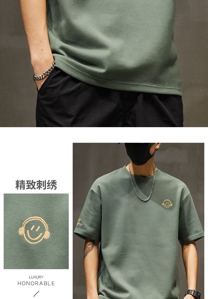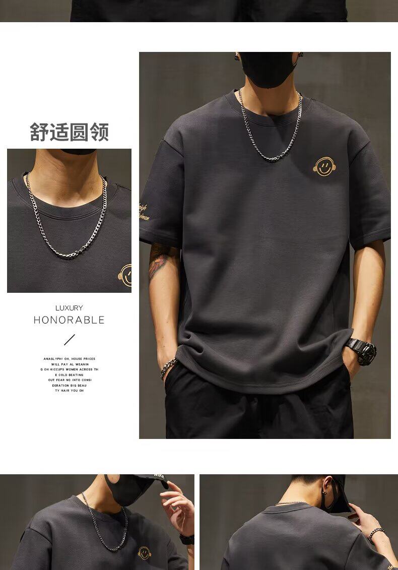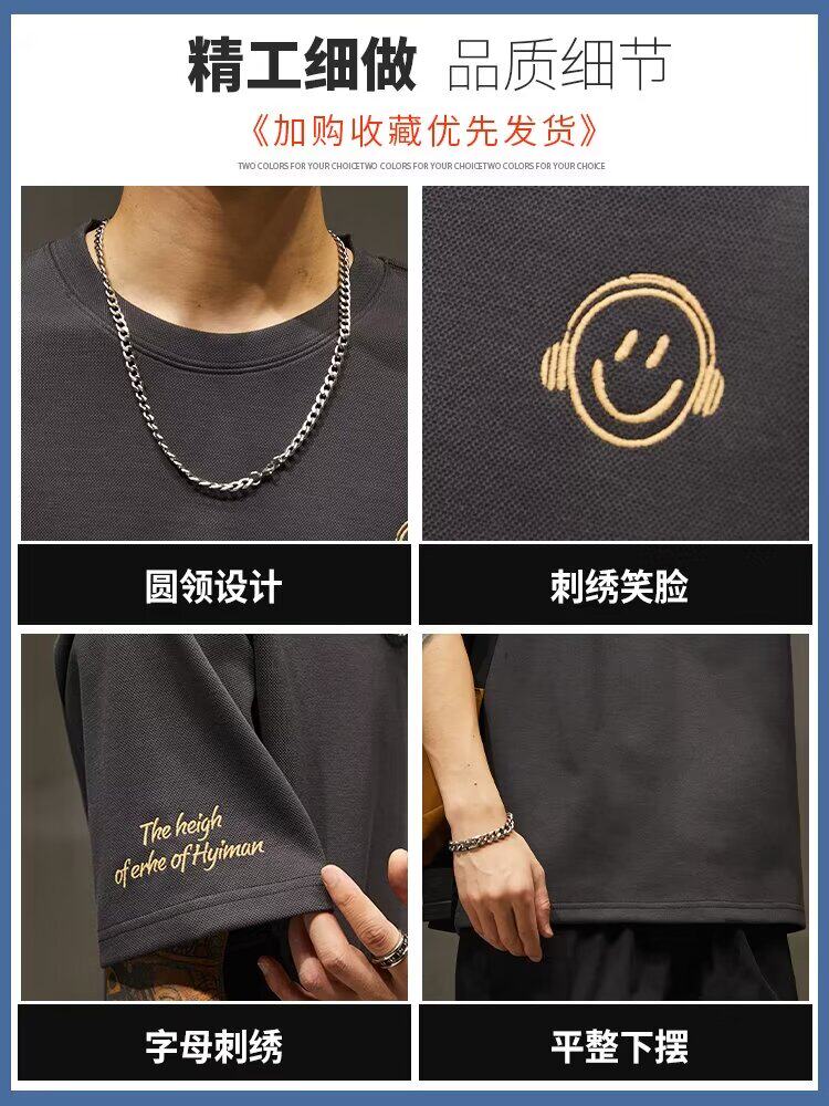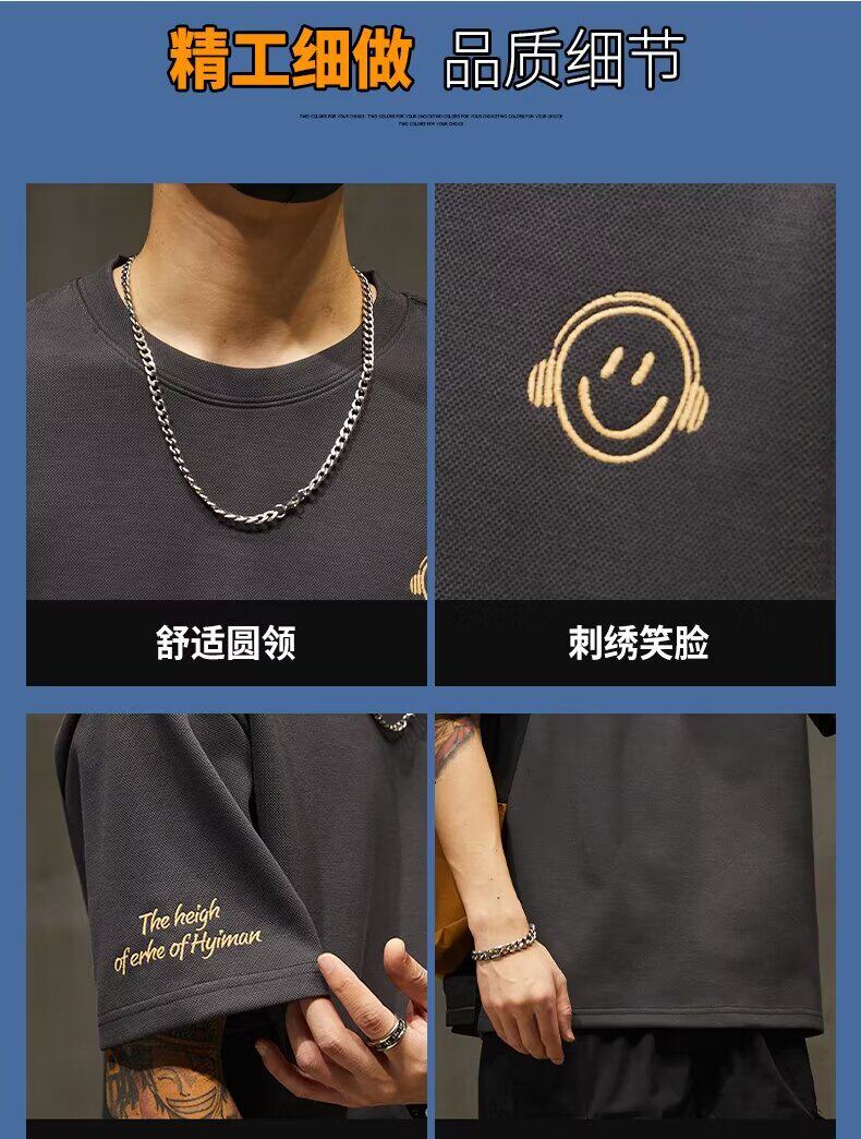 重磅短袖t恤男網紅笑臉2023新款寬松加肥加大碼休閒胖子半袖上衣