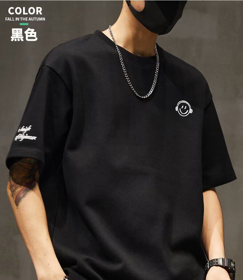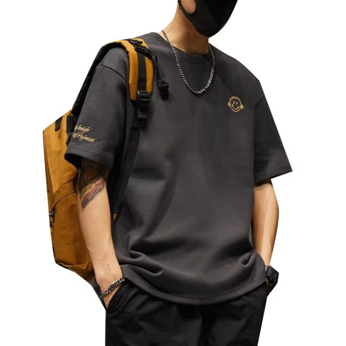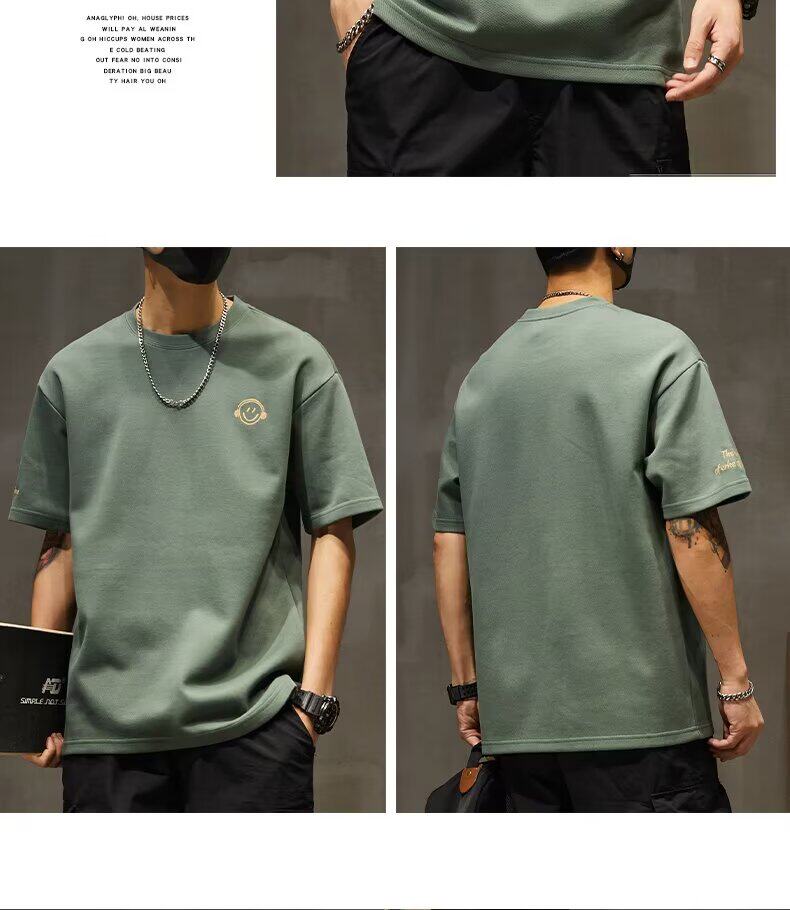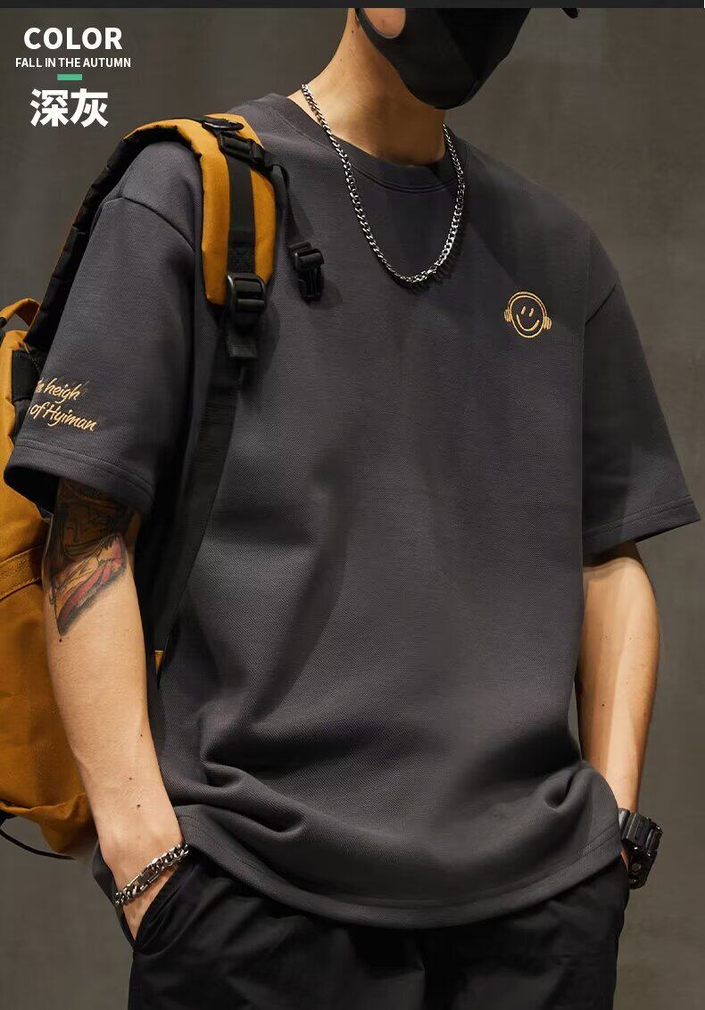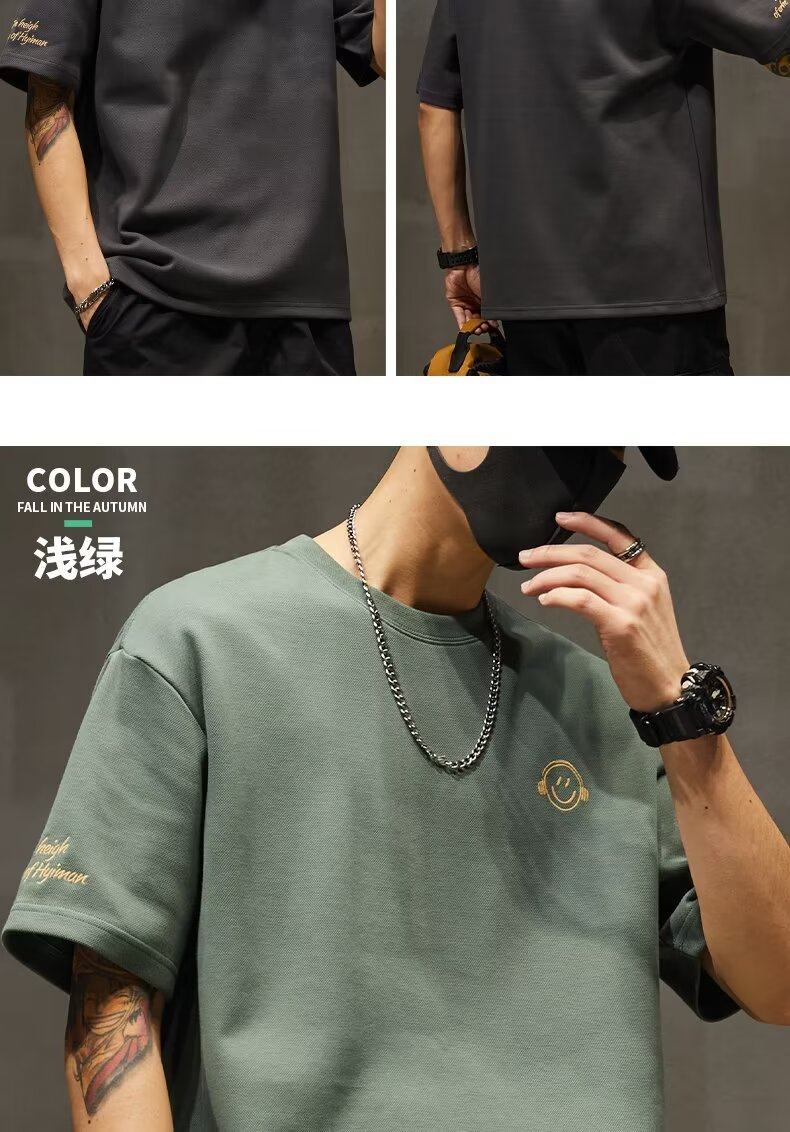 重磅短袖t恤男網紅笑臉2023新款寬松加肥加大碼休閒胖子半袖上衣
