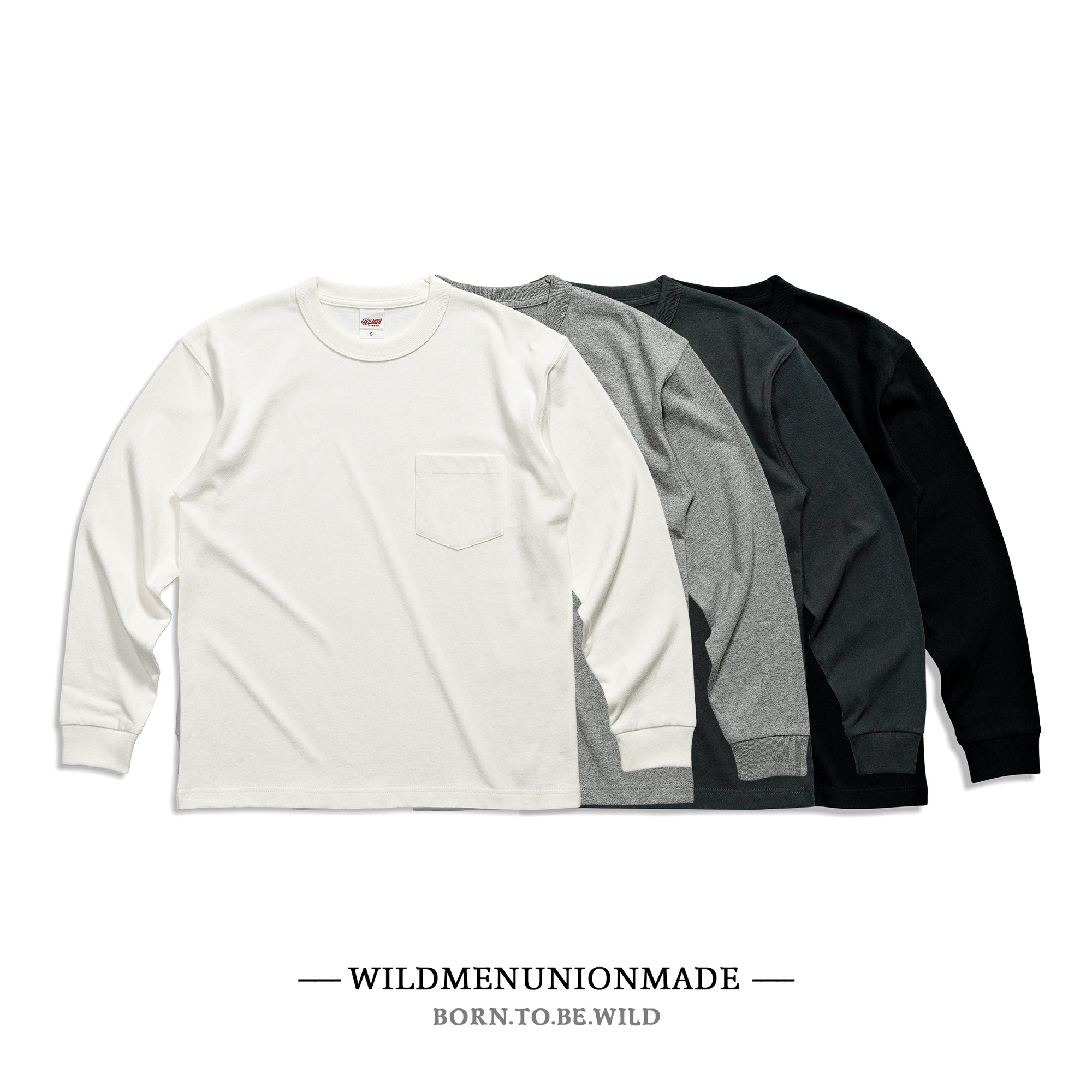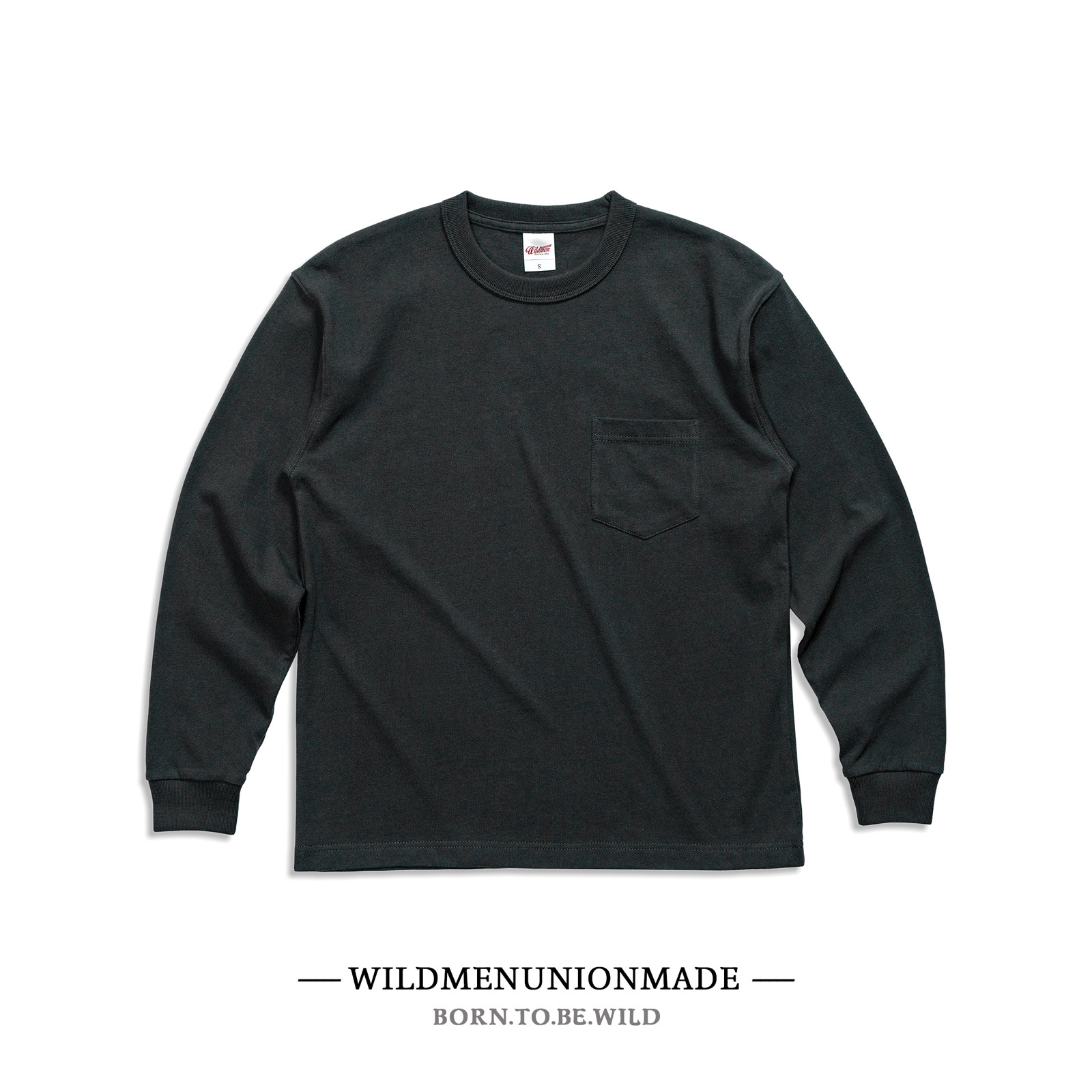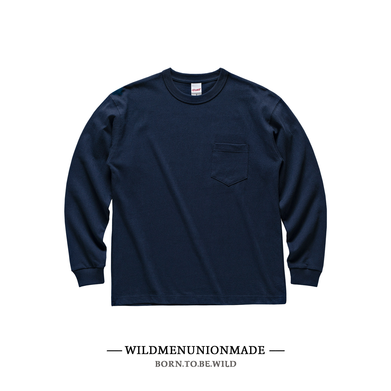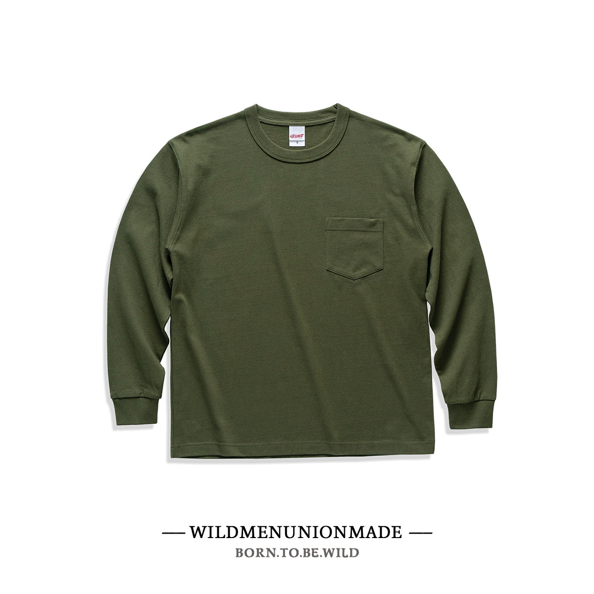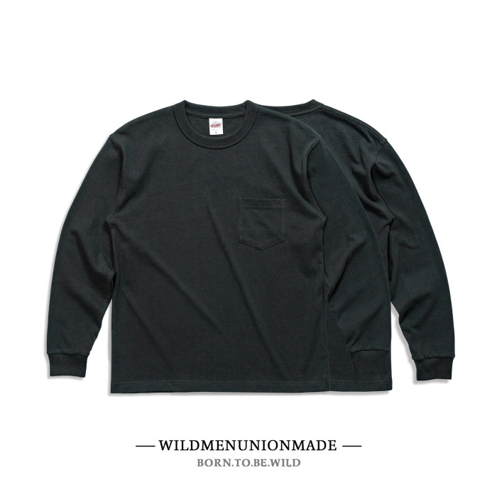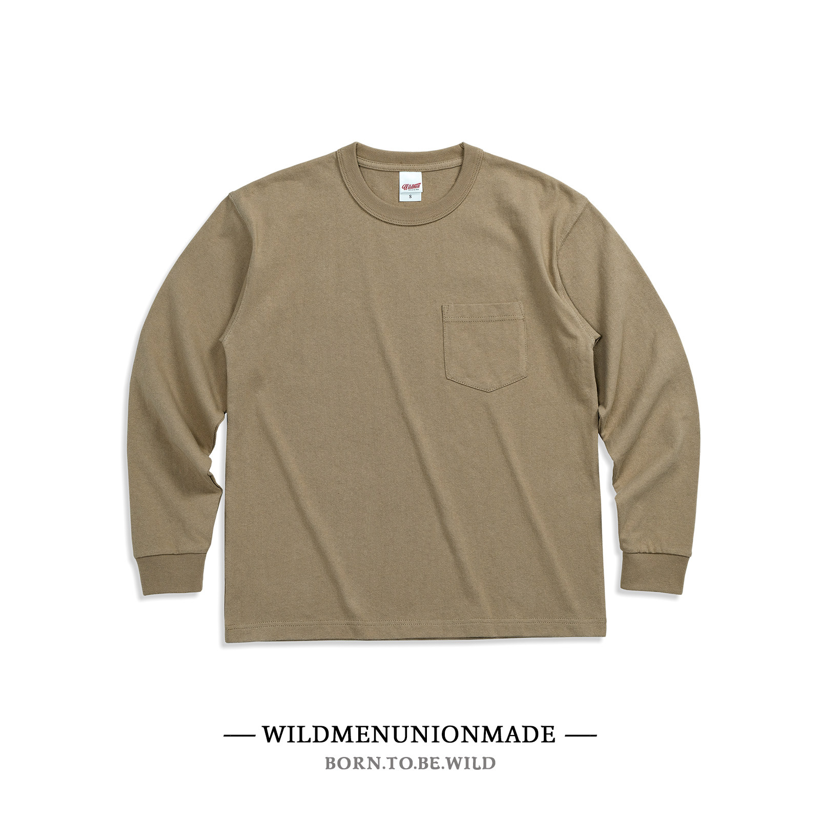 300g 美式復古重磅厚實純棉圓領長袖口袋T恤OVERSIZE落肩寬松男款