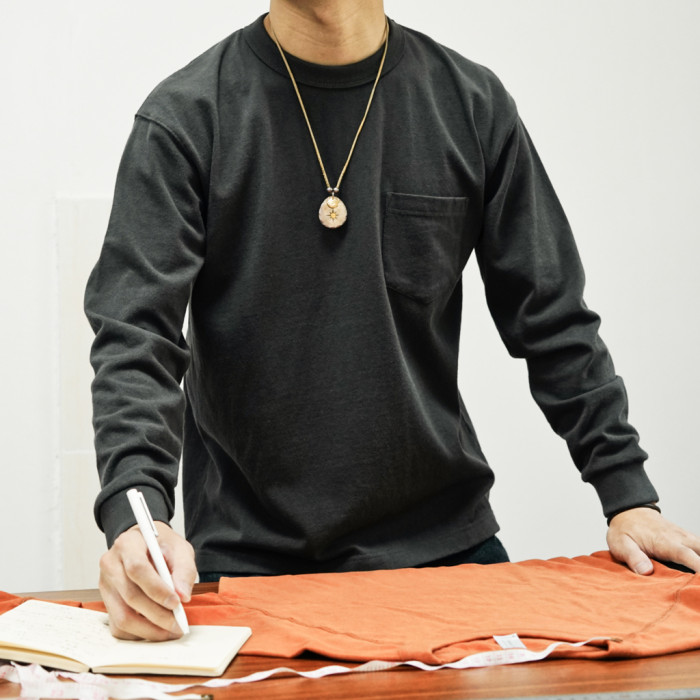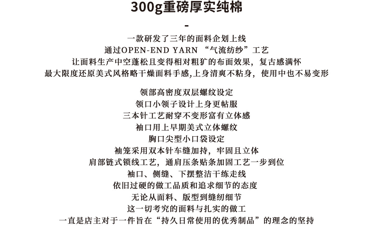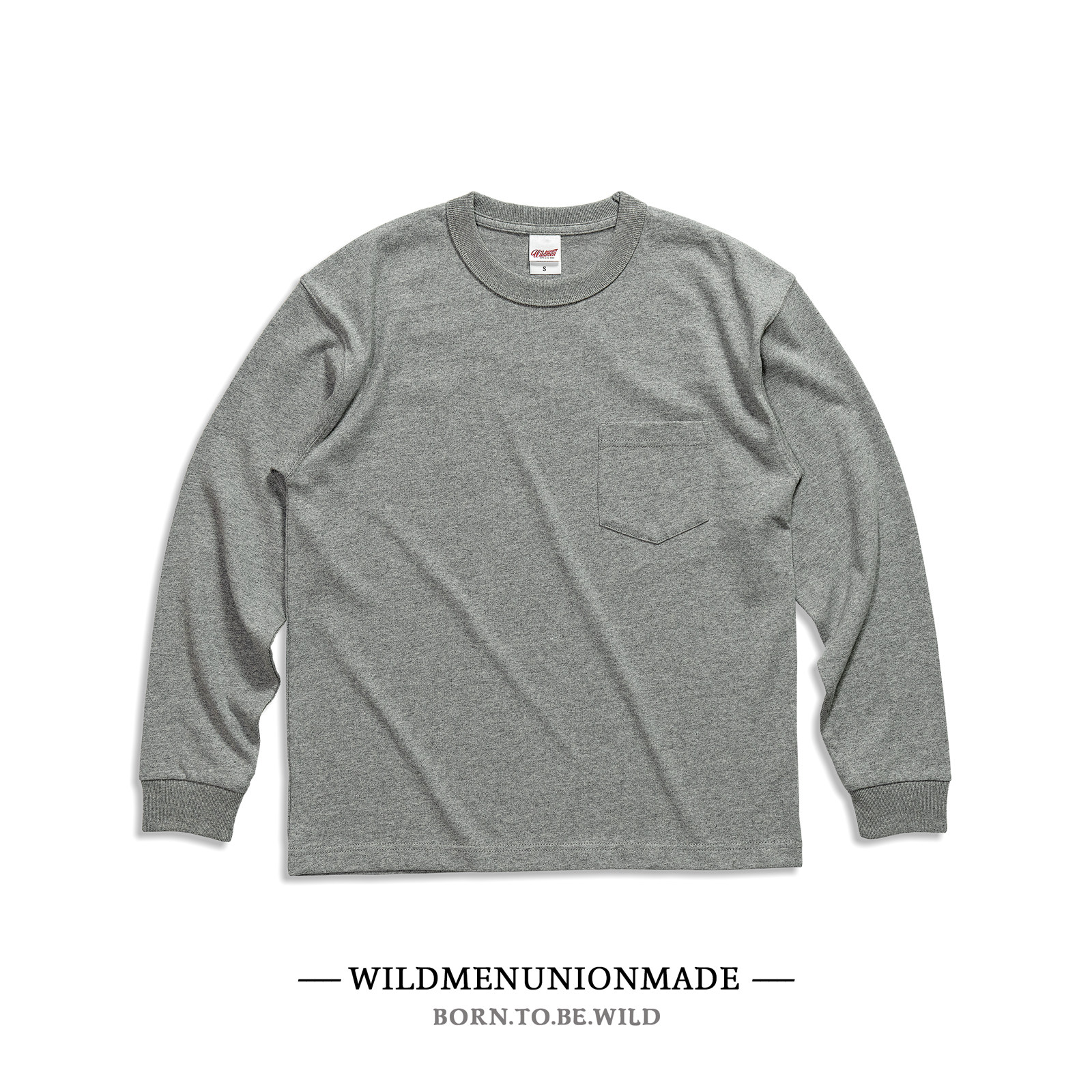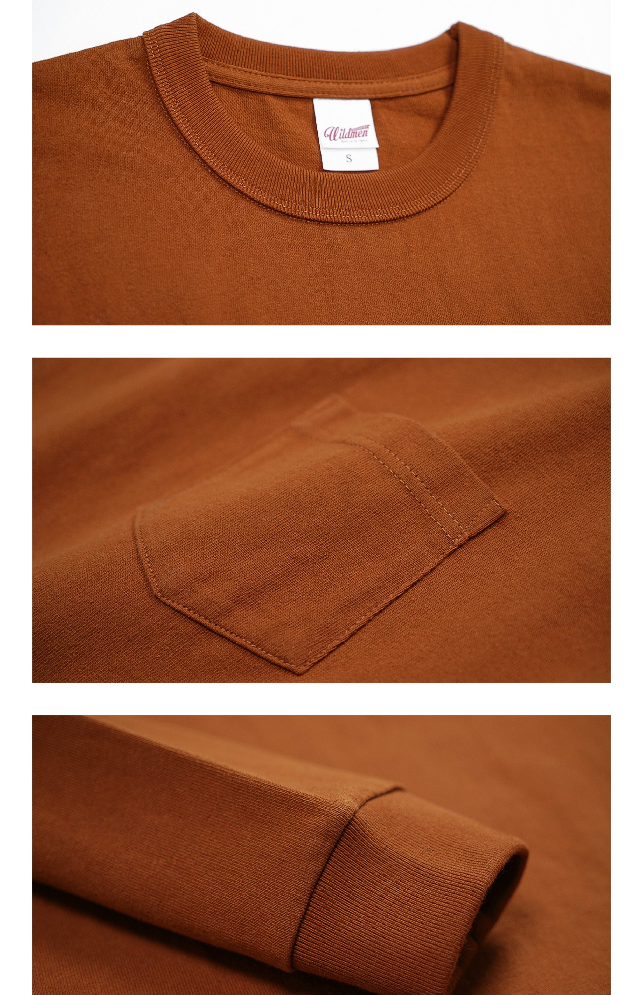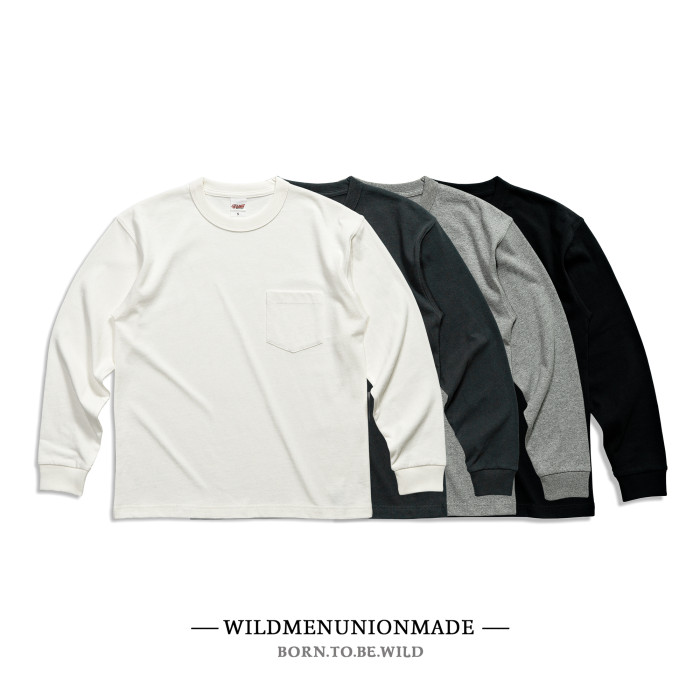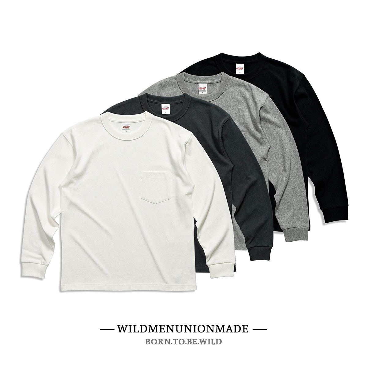 300g 美式復古重磅厚實純棉圓領長袖口袋T恤OVERSIZE落肩寬松男款