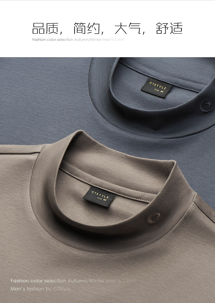 秋冬季男士中半高領長袖T恤加厚打底衫衛衣2025男裝秋衣秋裝上衣