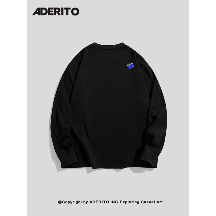 韓國潮牌AE聯名藍色狐狸頭刺綉高級高支高密百搭長袖T恤男女純色