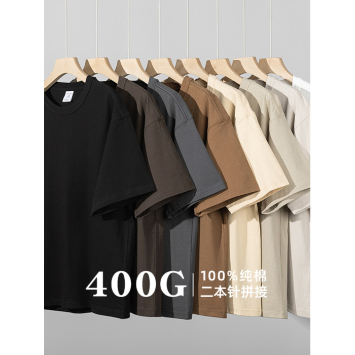 純色400g重磅純棉短袖t恤夏季男生美式寬松白t打底衫新款男女上衣