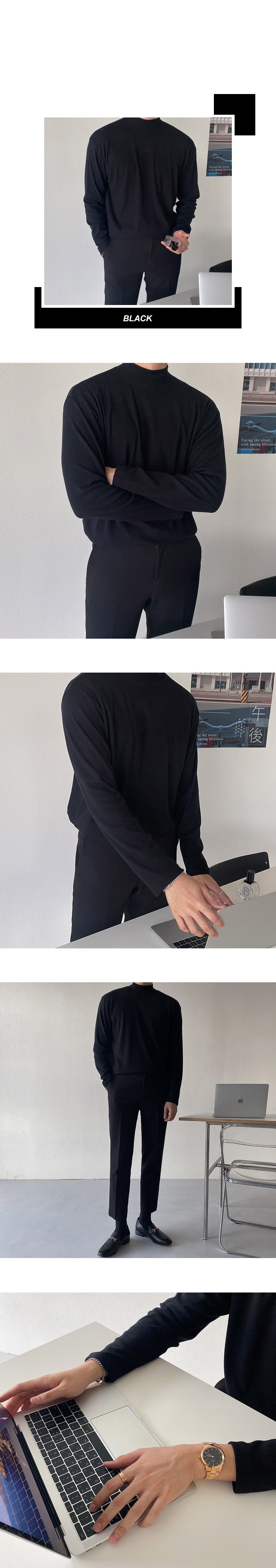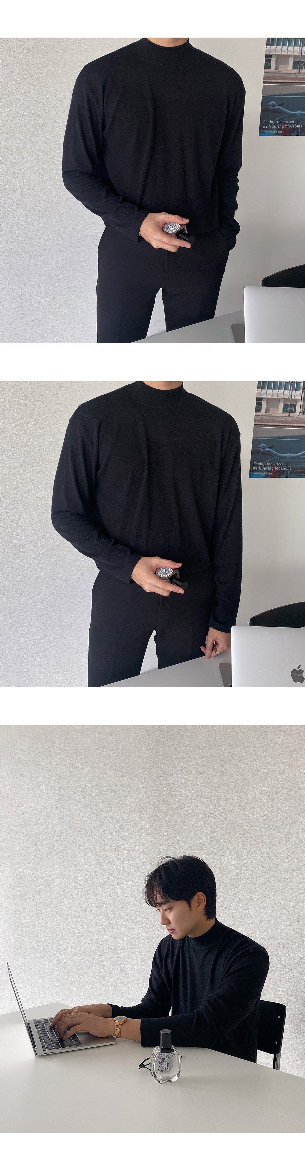 韓版秋冬季德絨半高領打底衫男寬鬆潮內搭黑色中高領秋衣長袖T恤