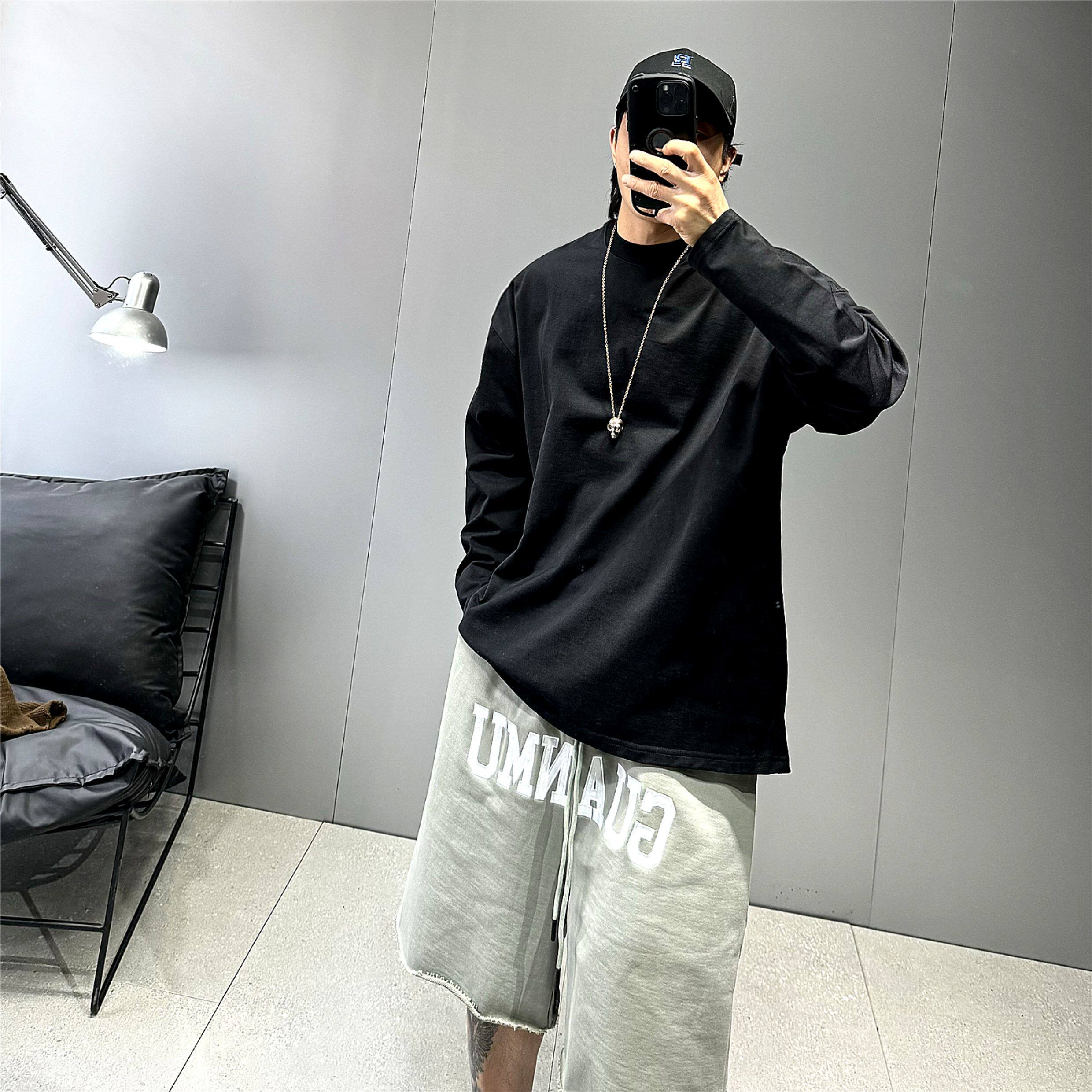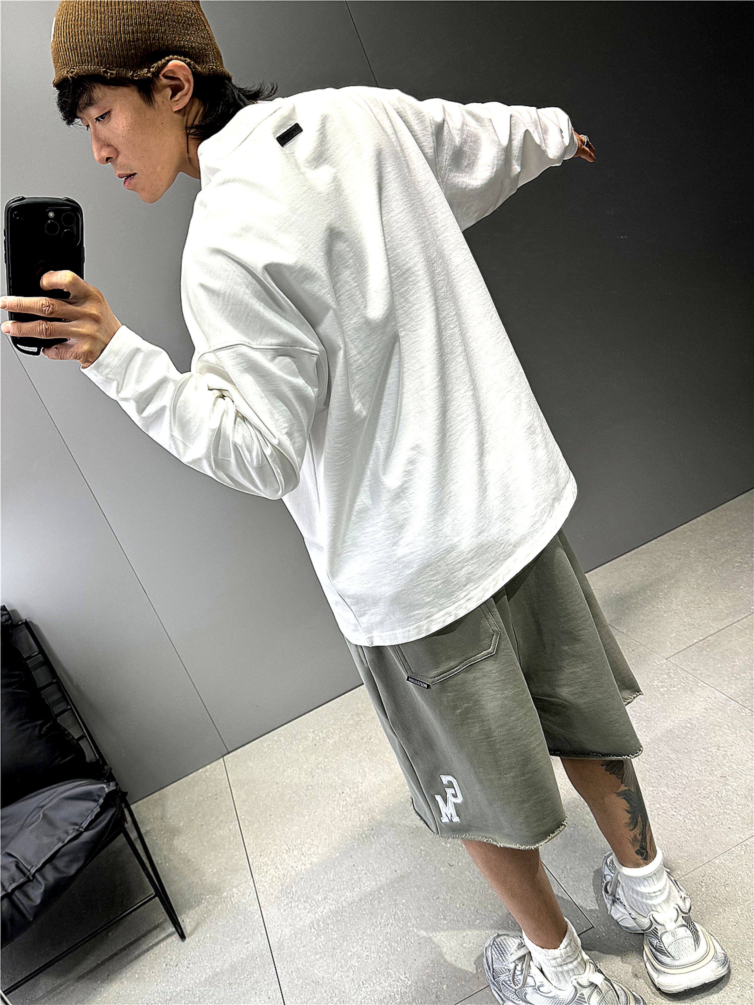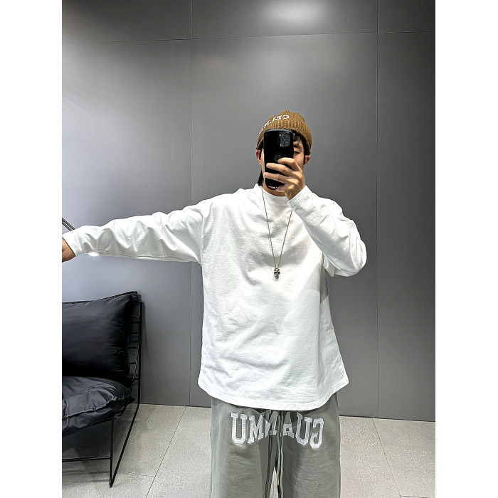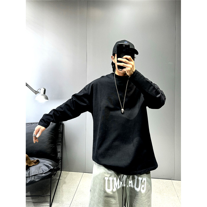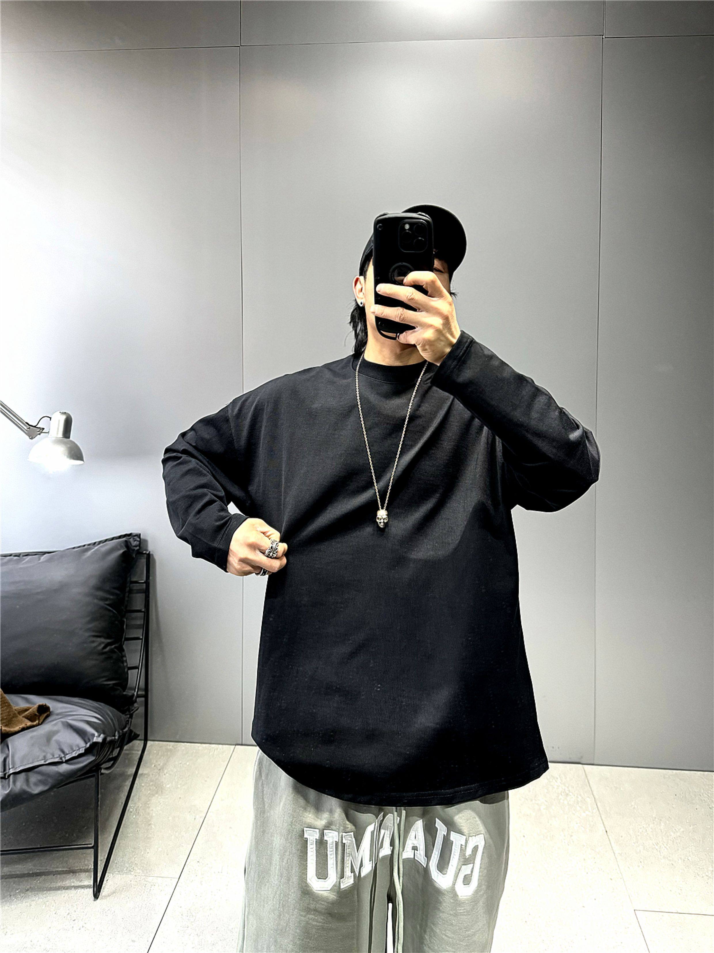 美式潮牌oversize寬松純色長袖T恤男青年百搭擴版體恤純棉白色t恤