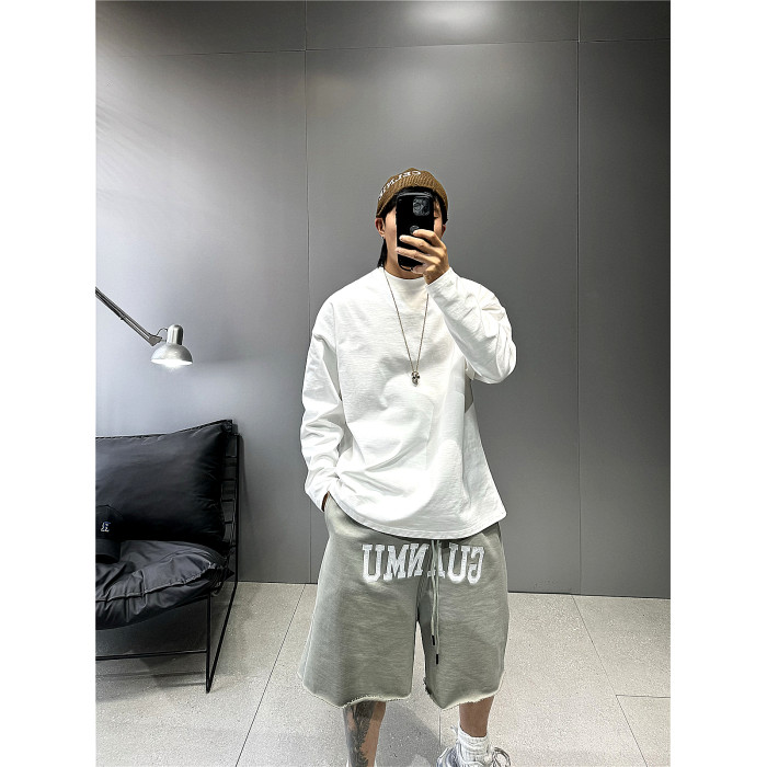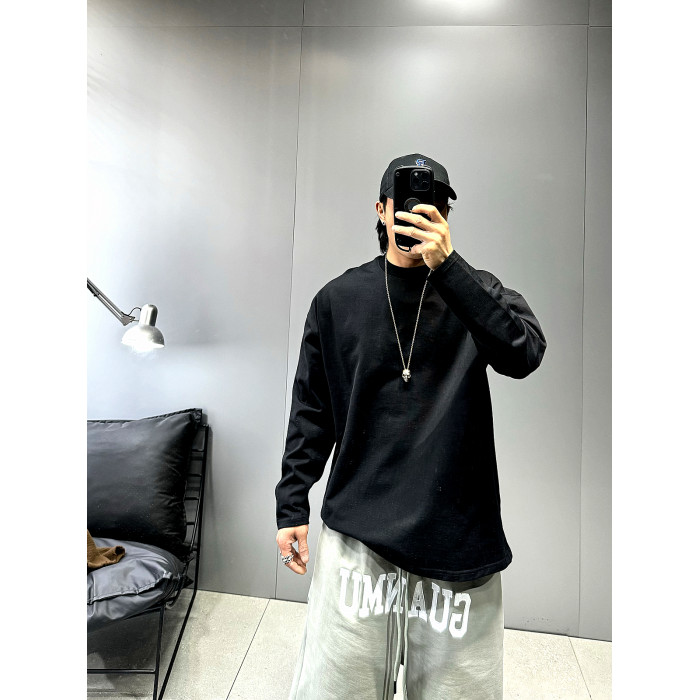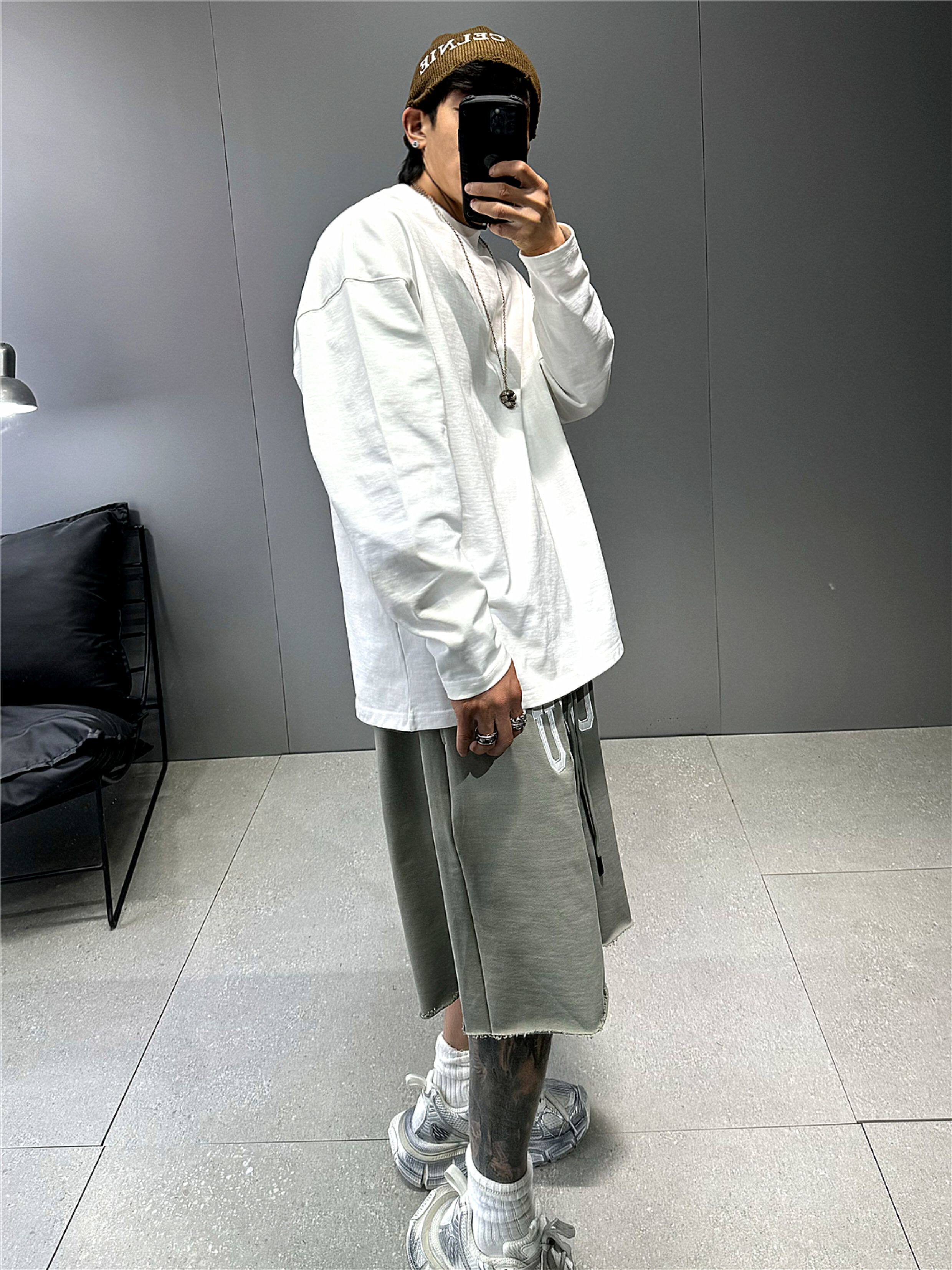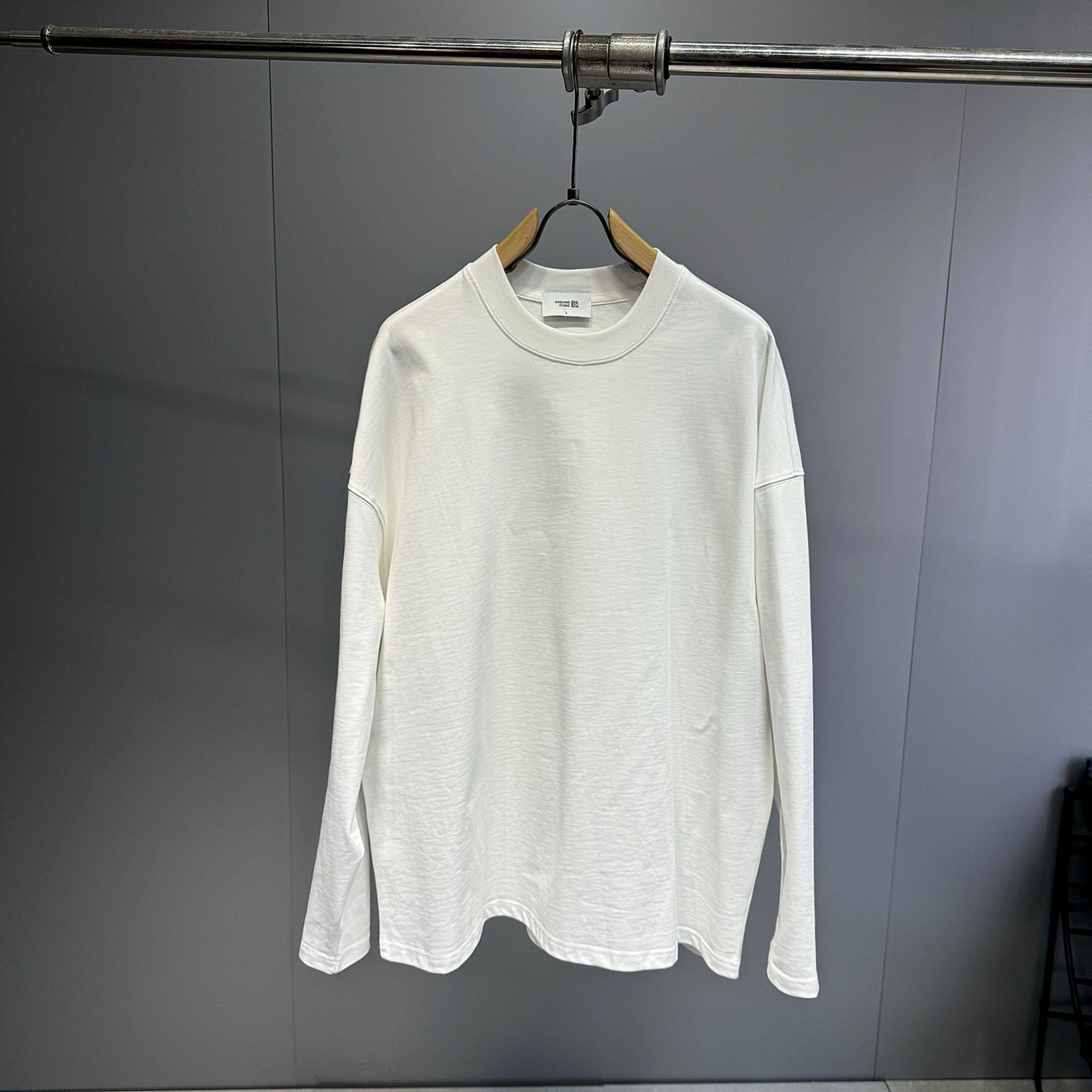 美式潮牌oversize寬松純色長袖T恤男青年百搭擴版體恤純棉白色t恤