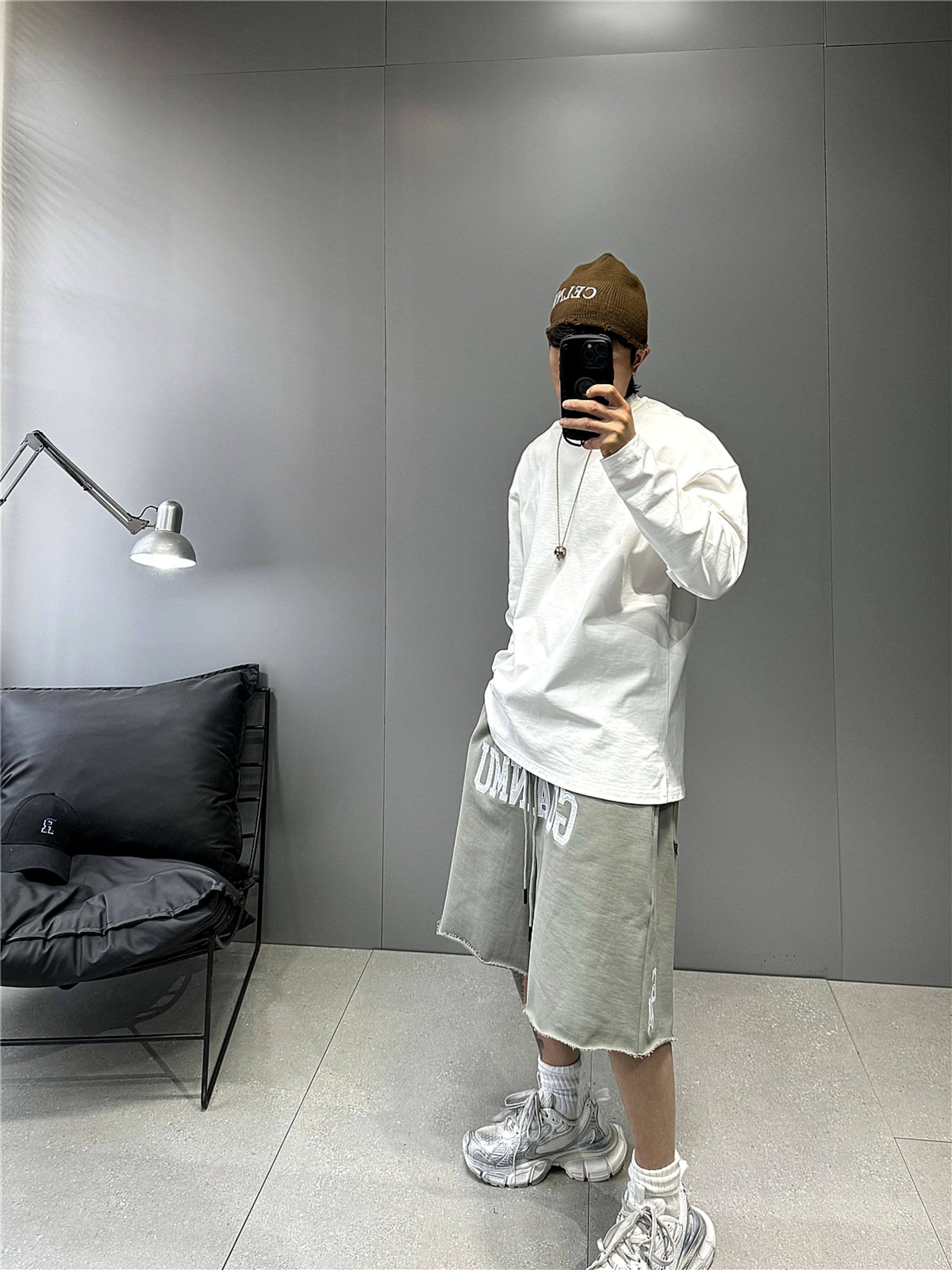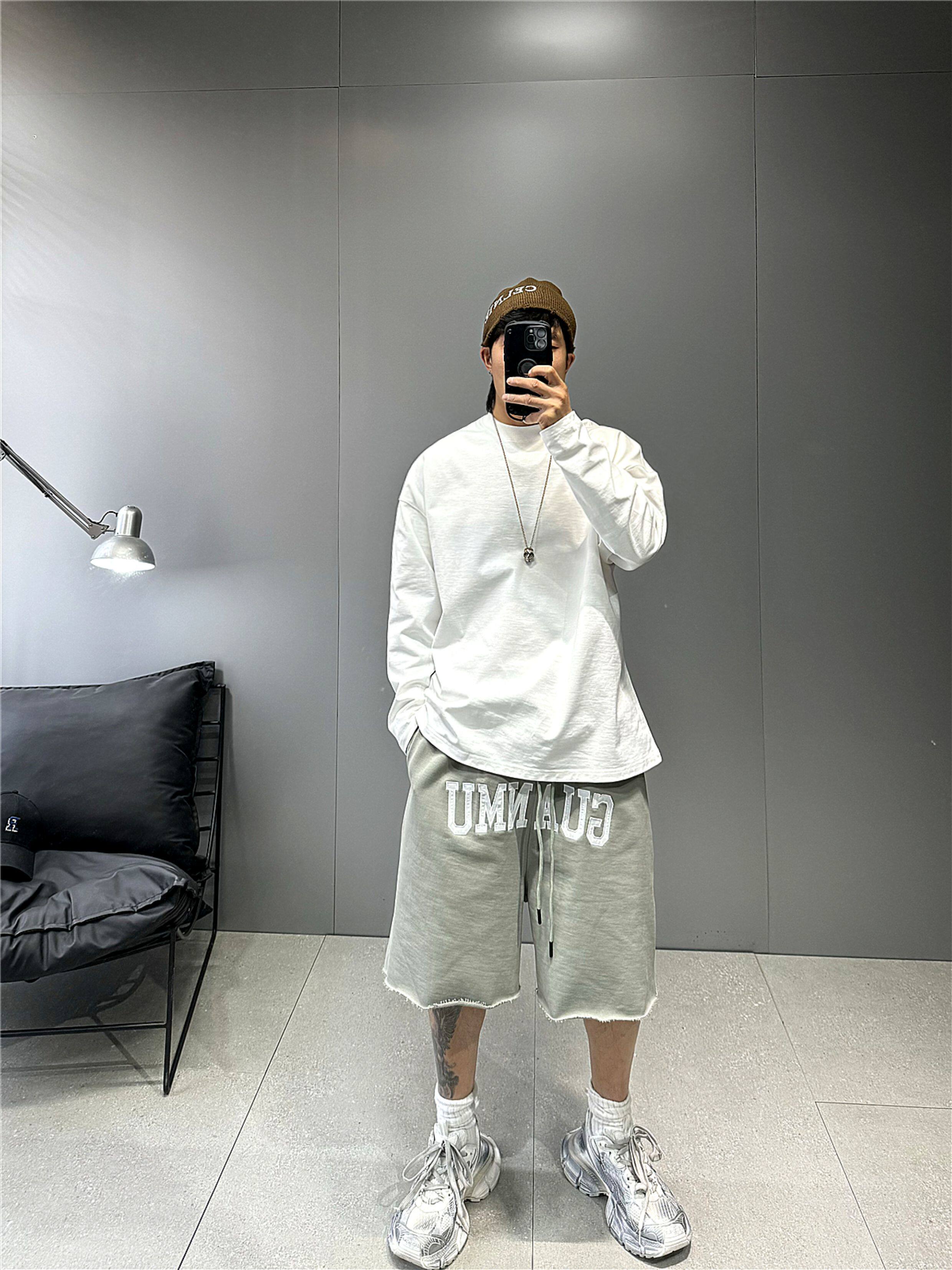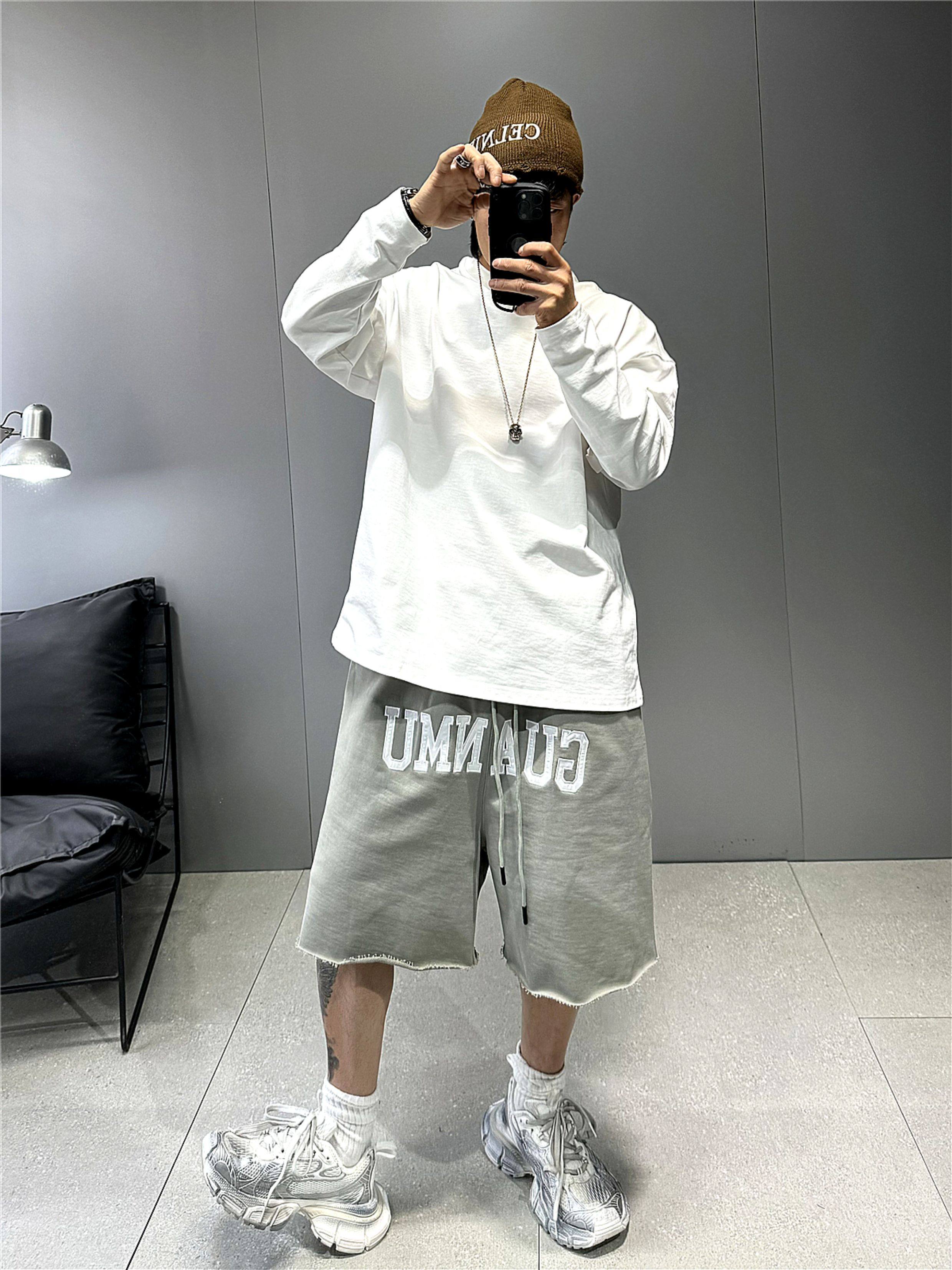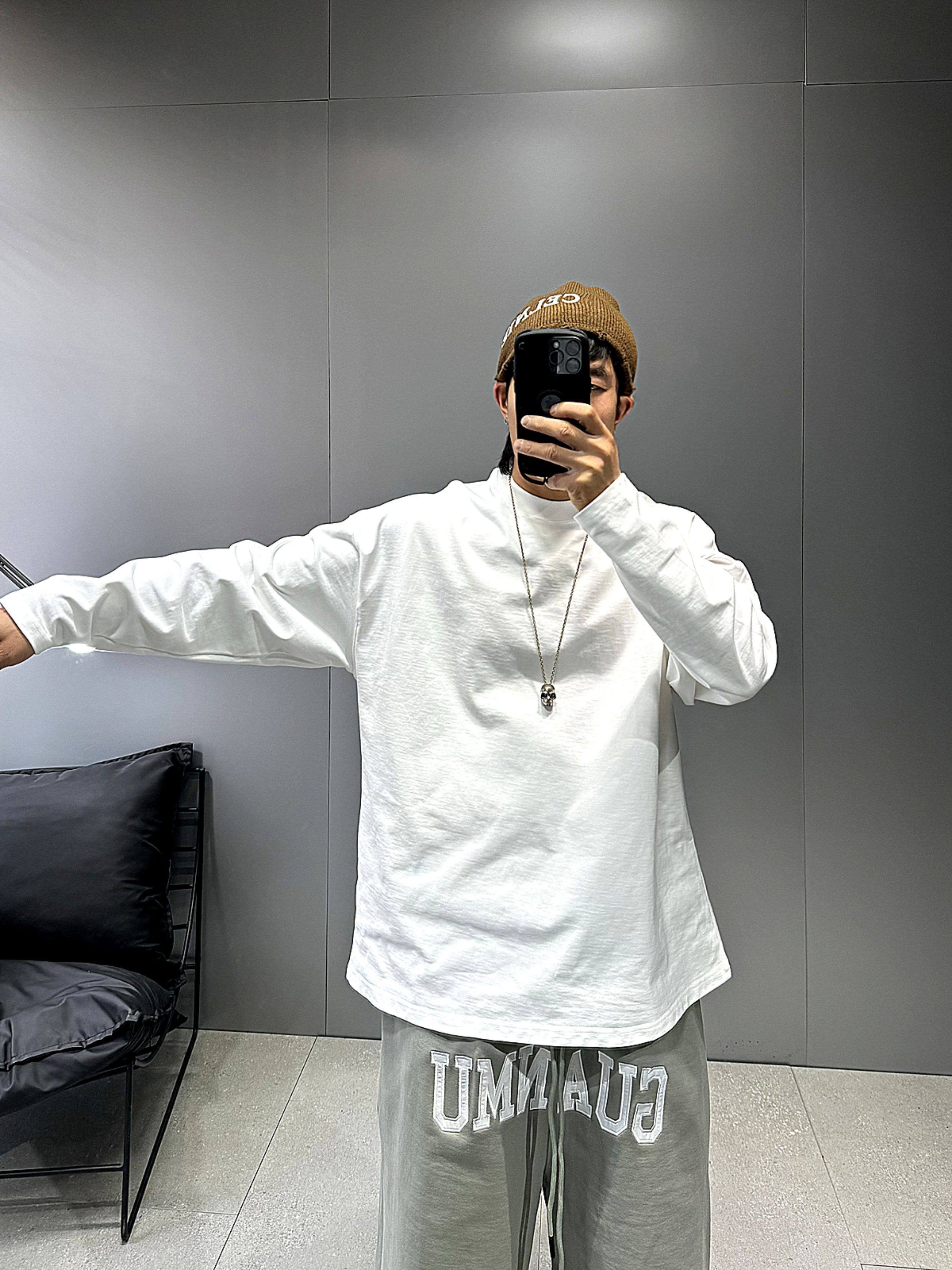美式潮牌oversize寬松純色長袖T恤男青年百搭擴版體恤純棉白色t恤