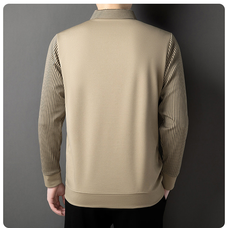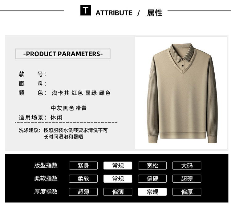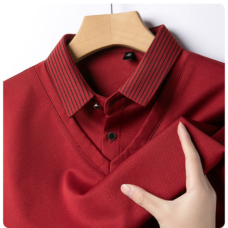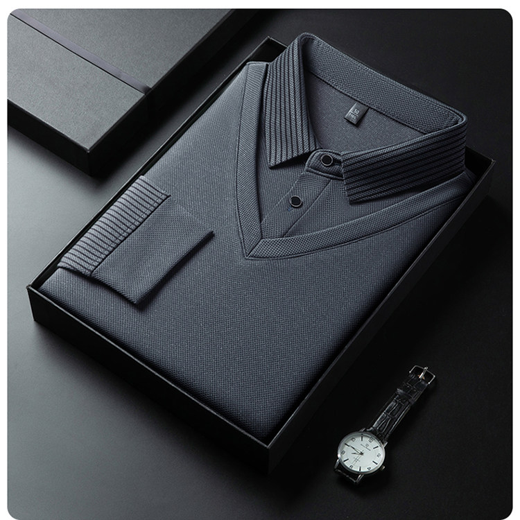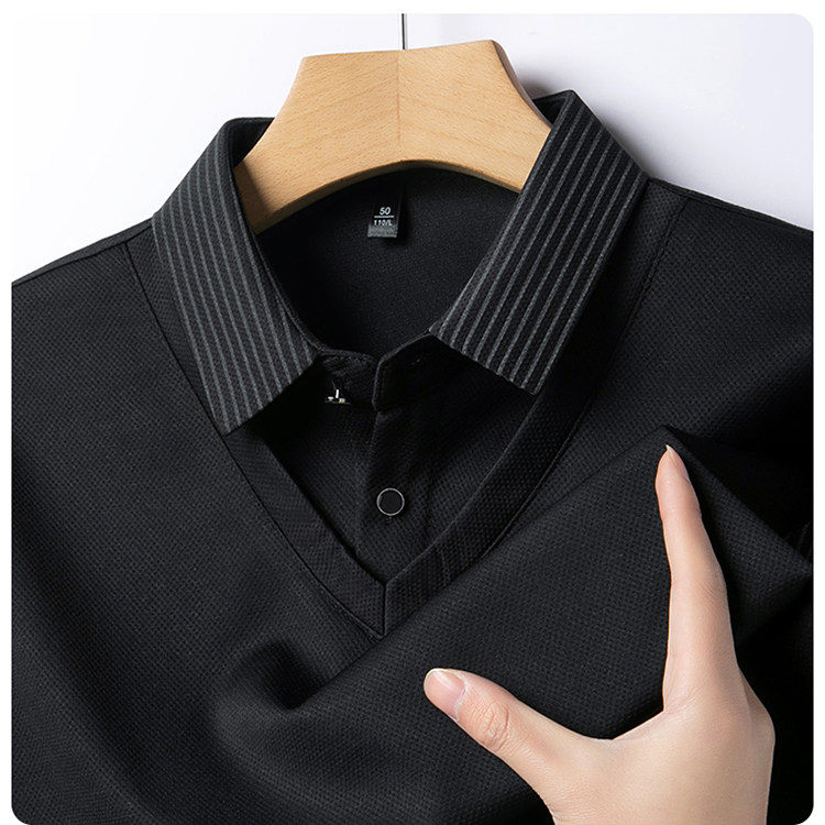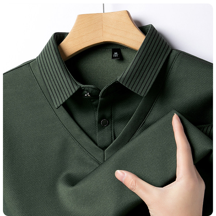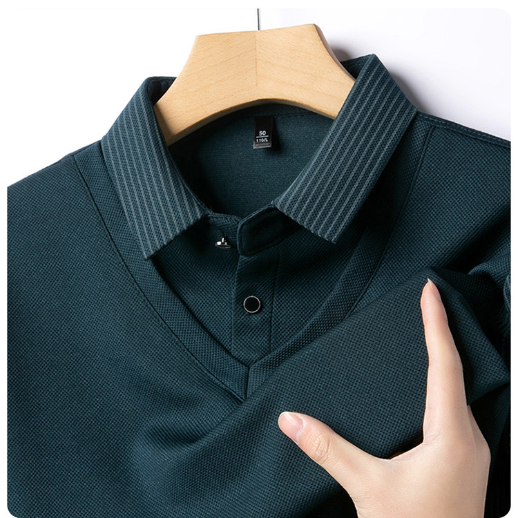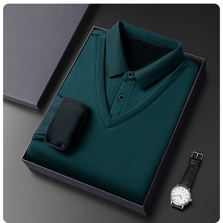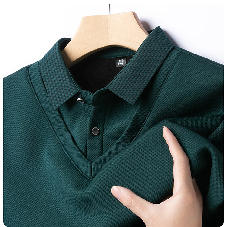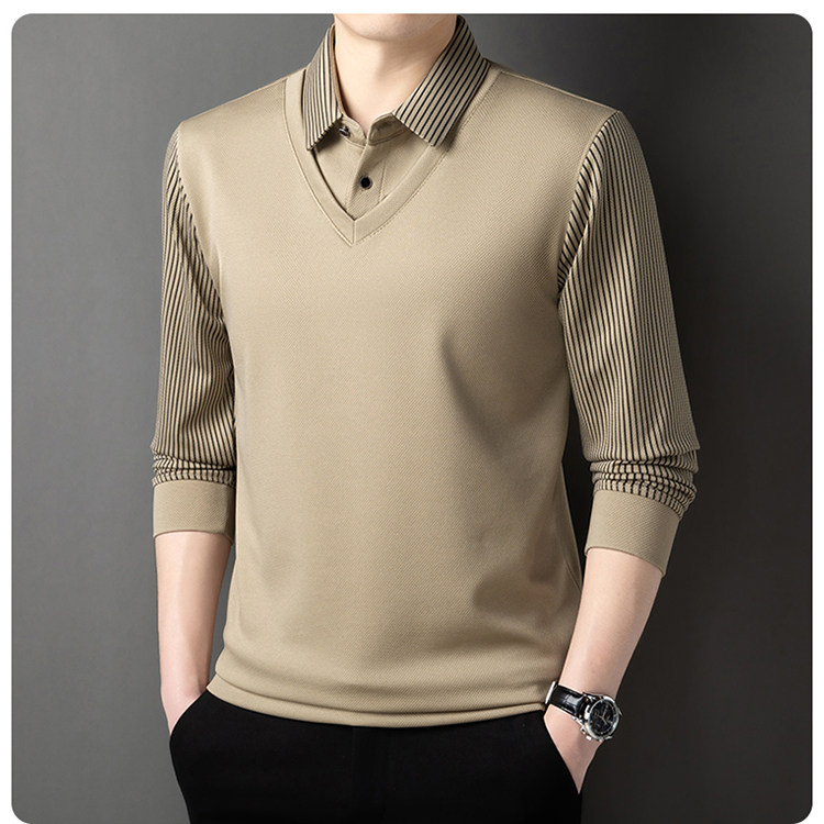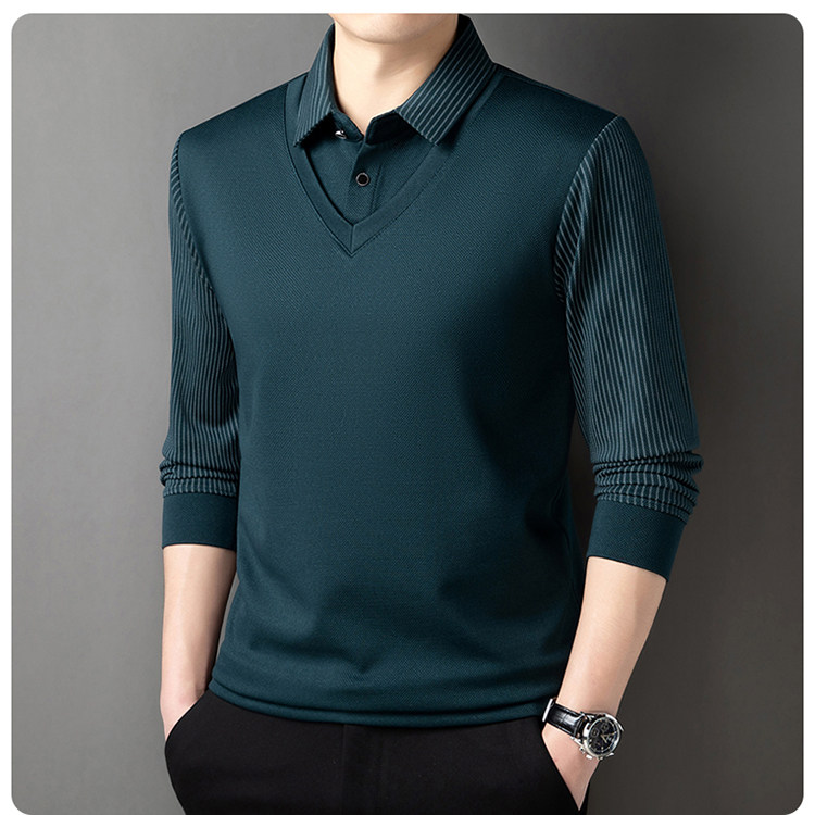 羅矇假兩件男士長袖t恤秋冬季新款爸爸裝休閒翻領上衣打底衫男