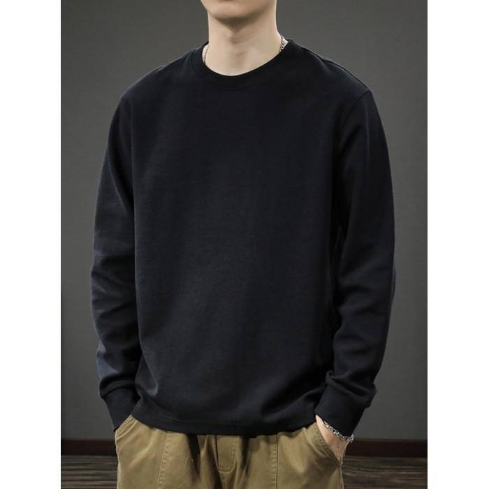 260克重磅純棉長袖T恤男士潮牌春秋百搭衛衣男寬松螺紋束口打底衫