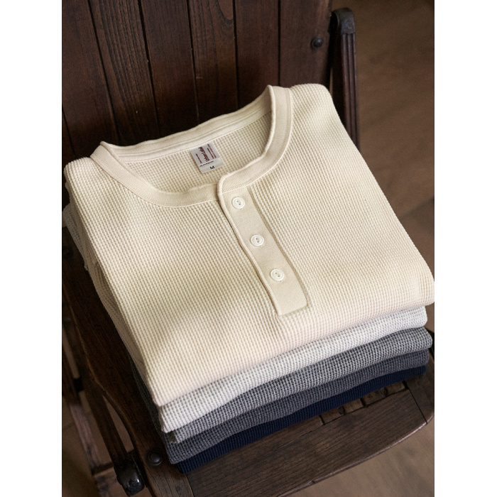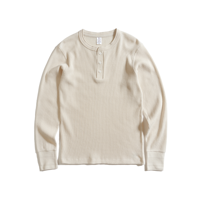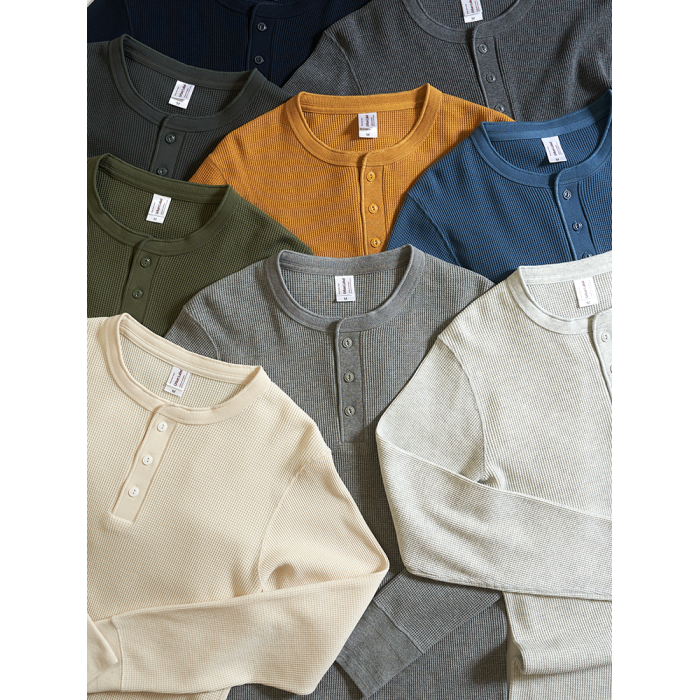 美式復古亨利領320G重磅長袖t恤男純棉 秋季哢嘰華夫格純色打底衫