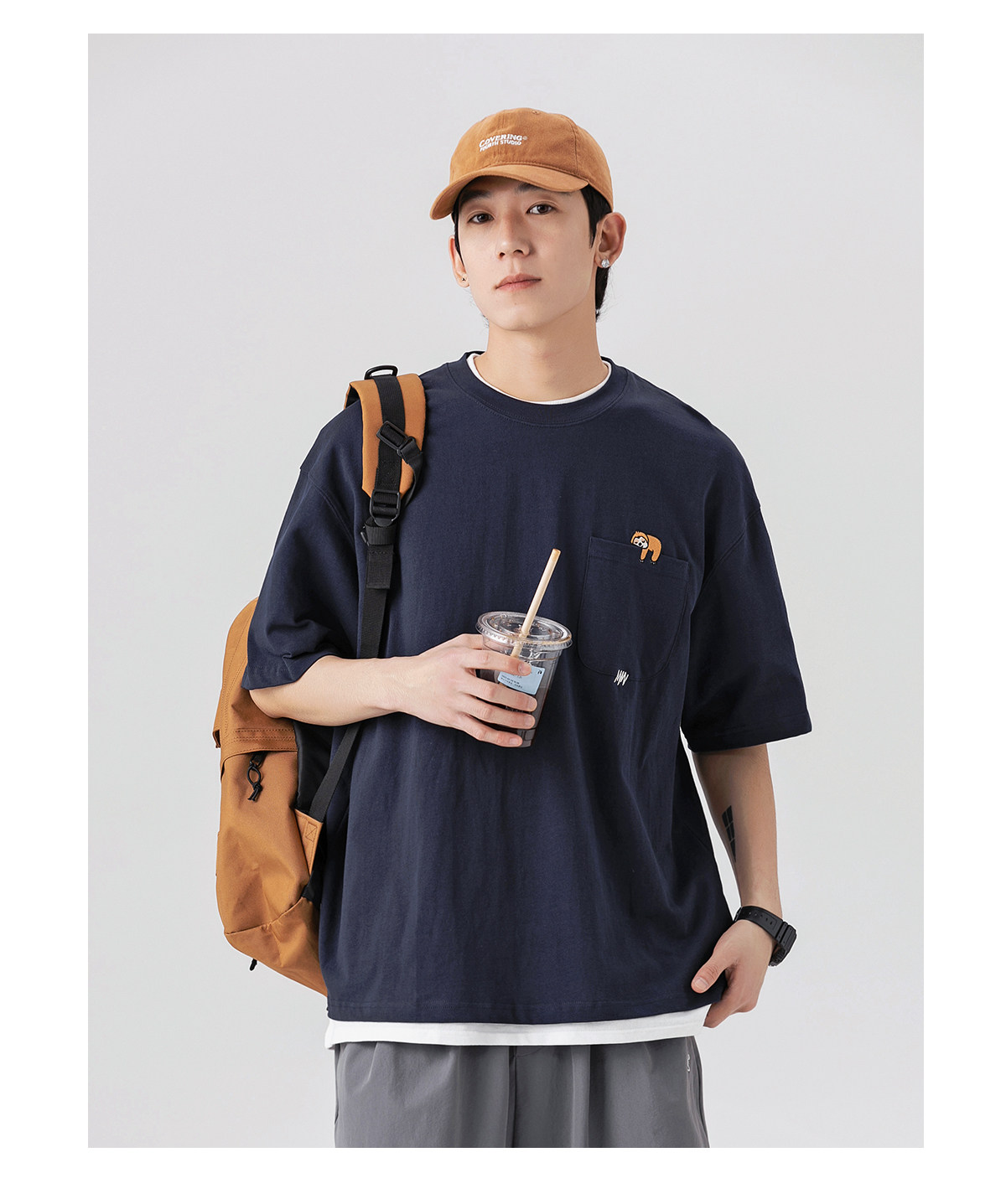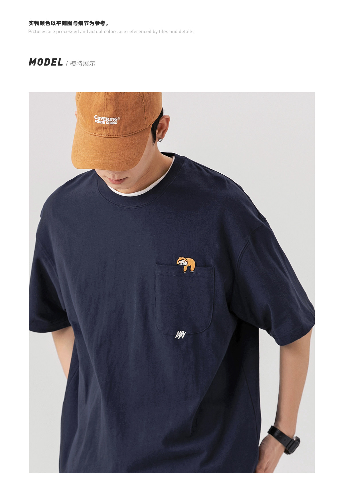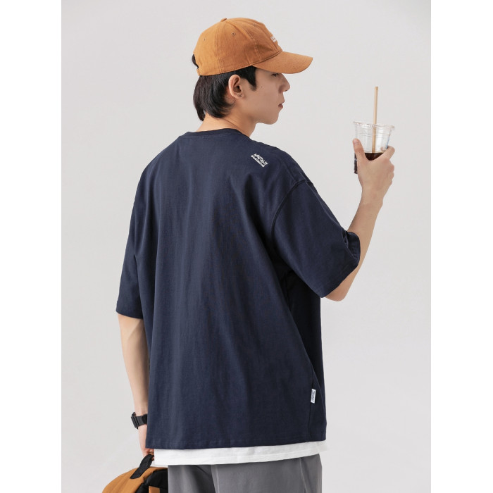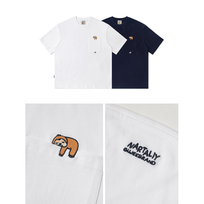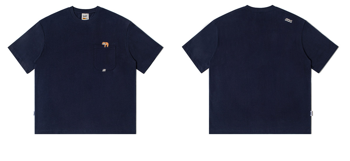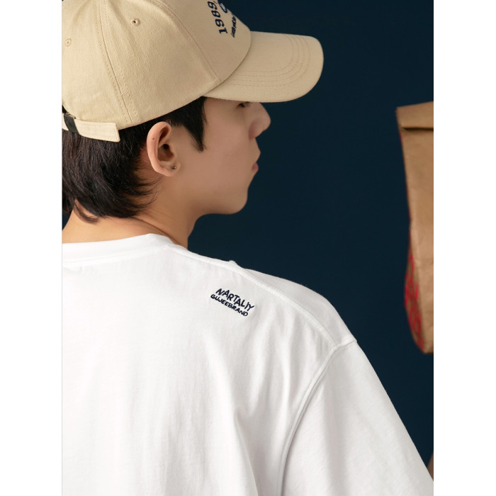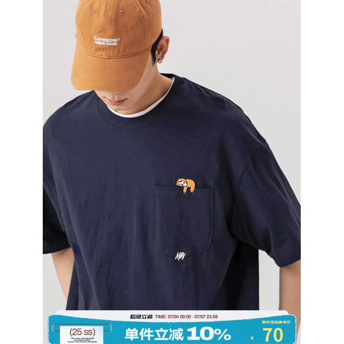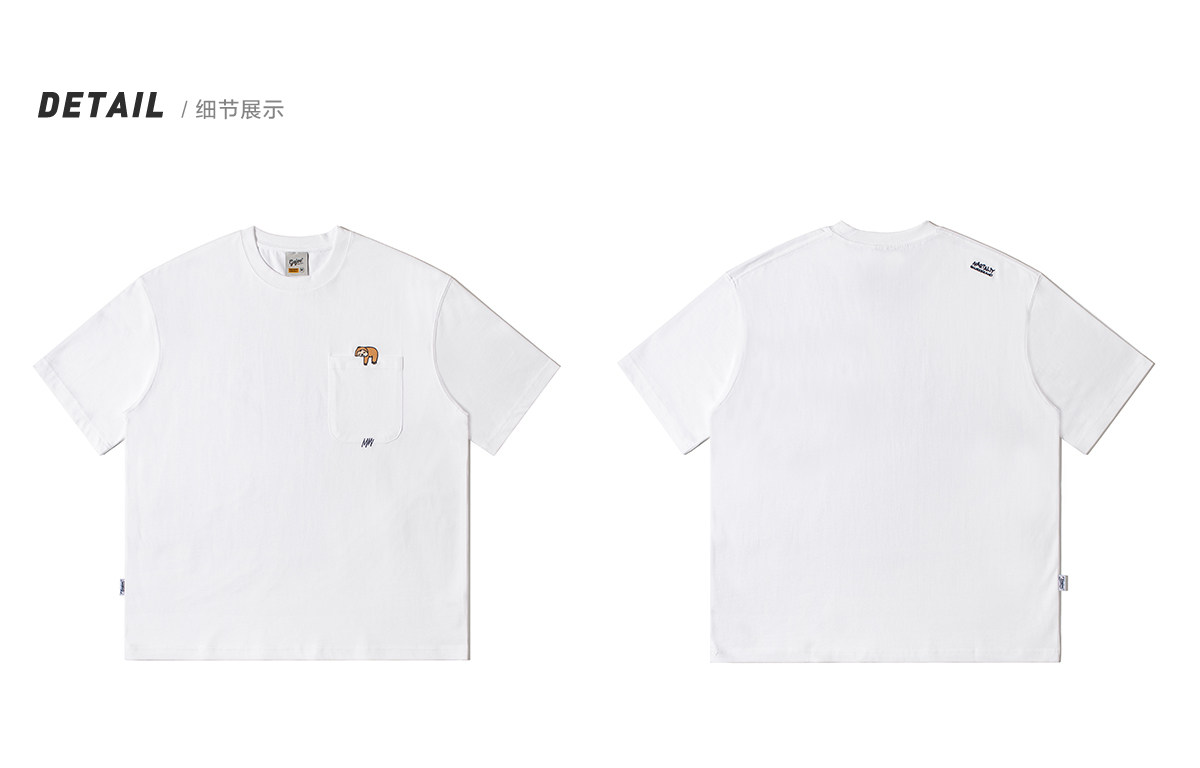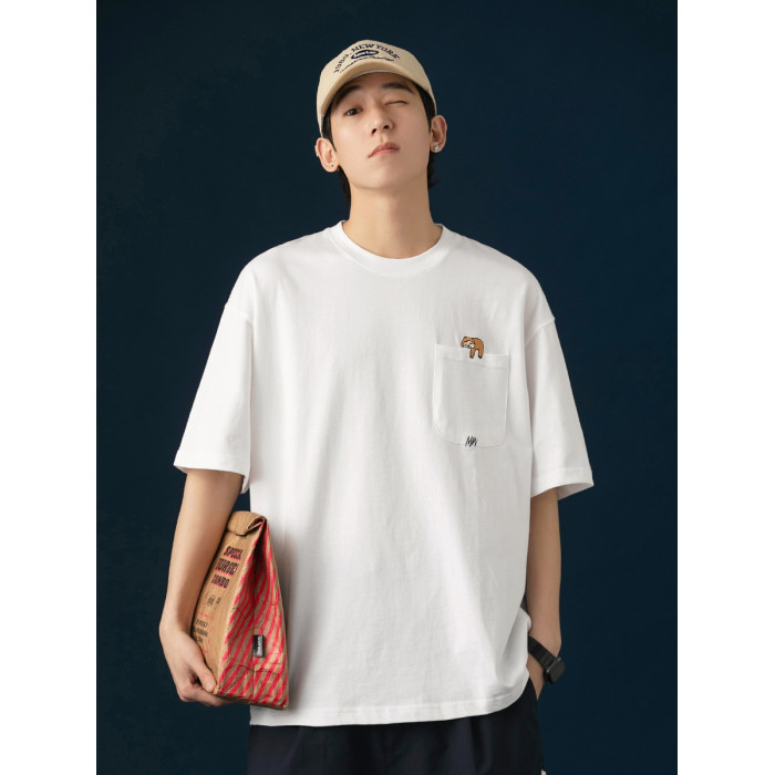 250G雙紗 夏季純棉短袖T恤男卡通刺綉短tee潮牌百搭休閒體恤衫男