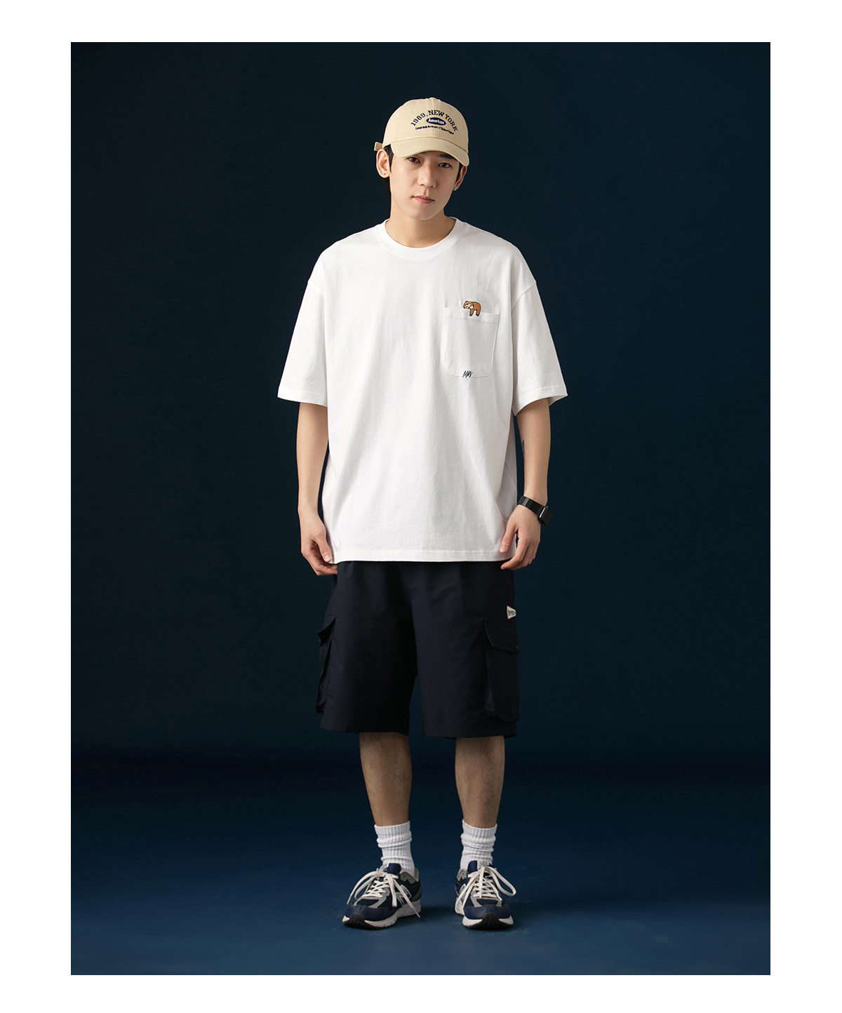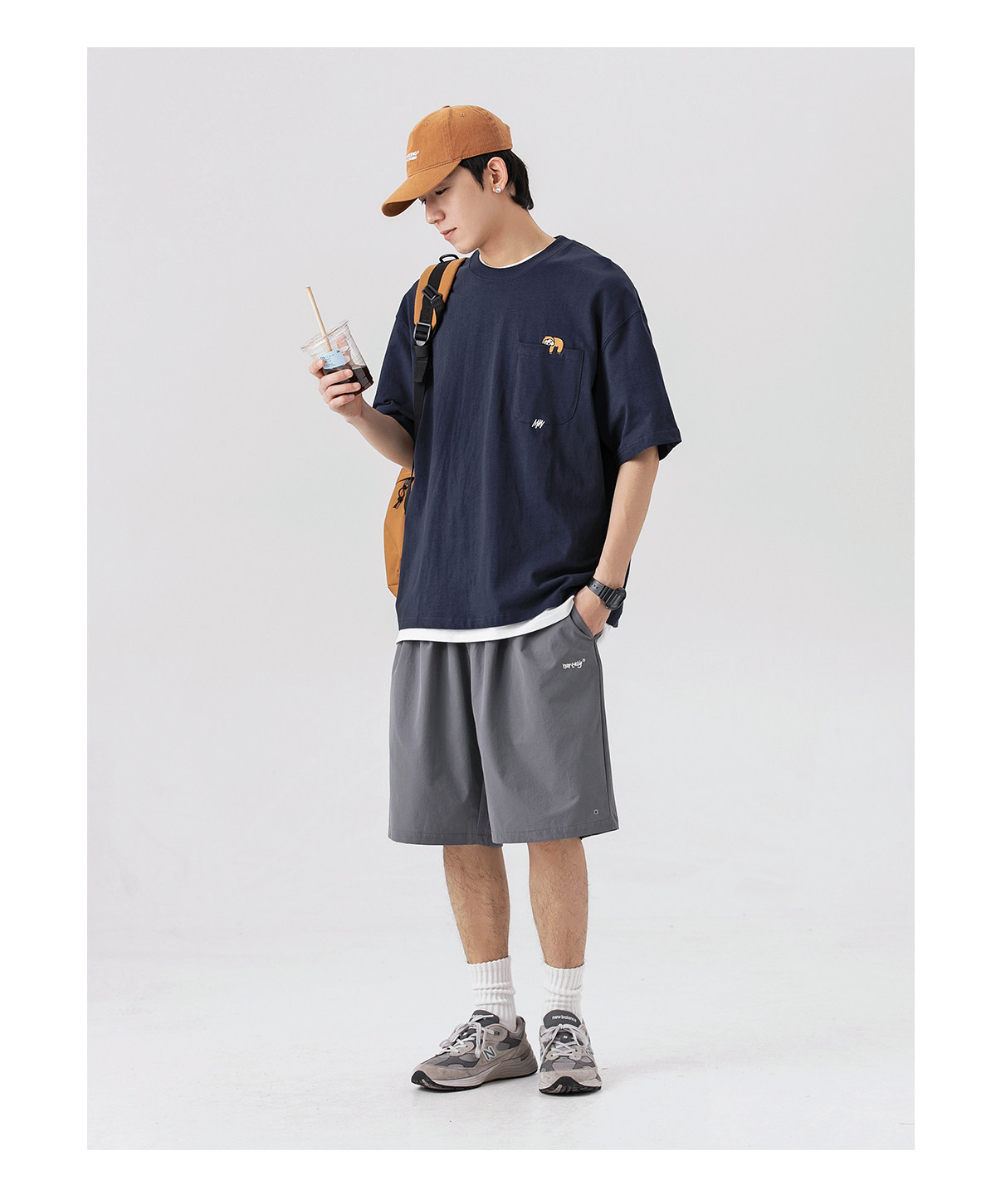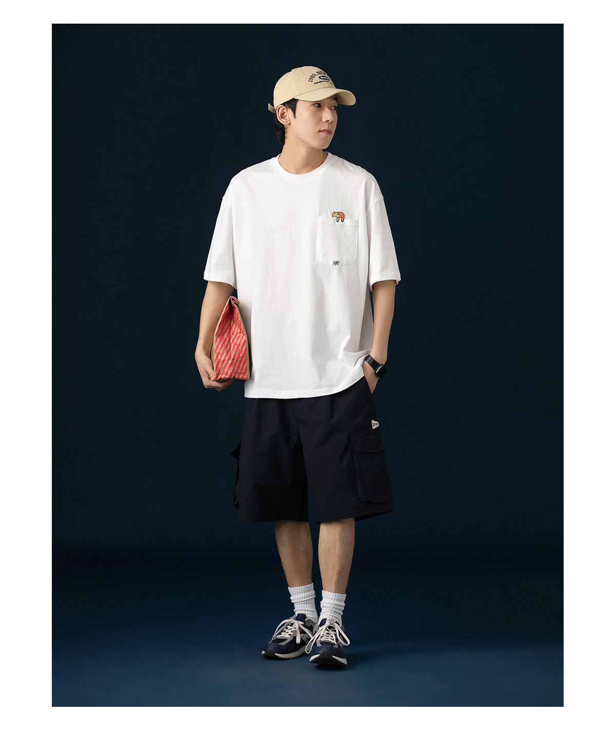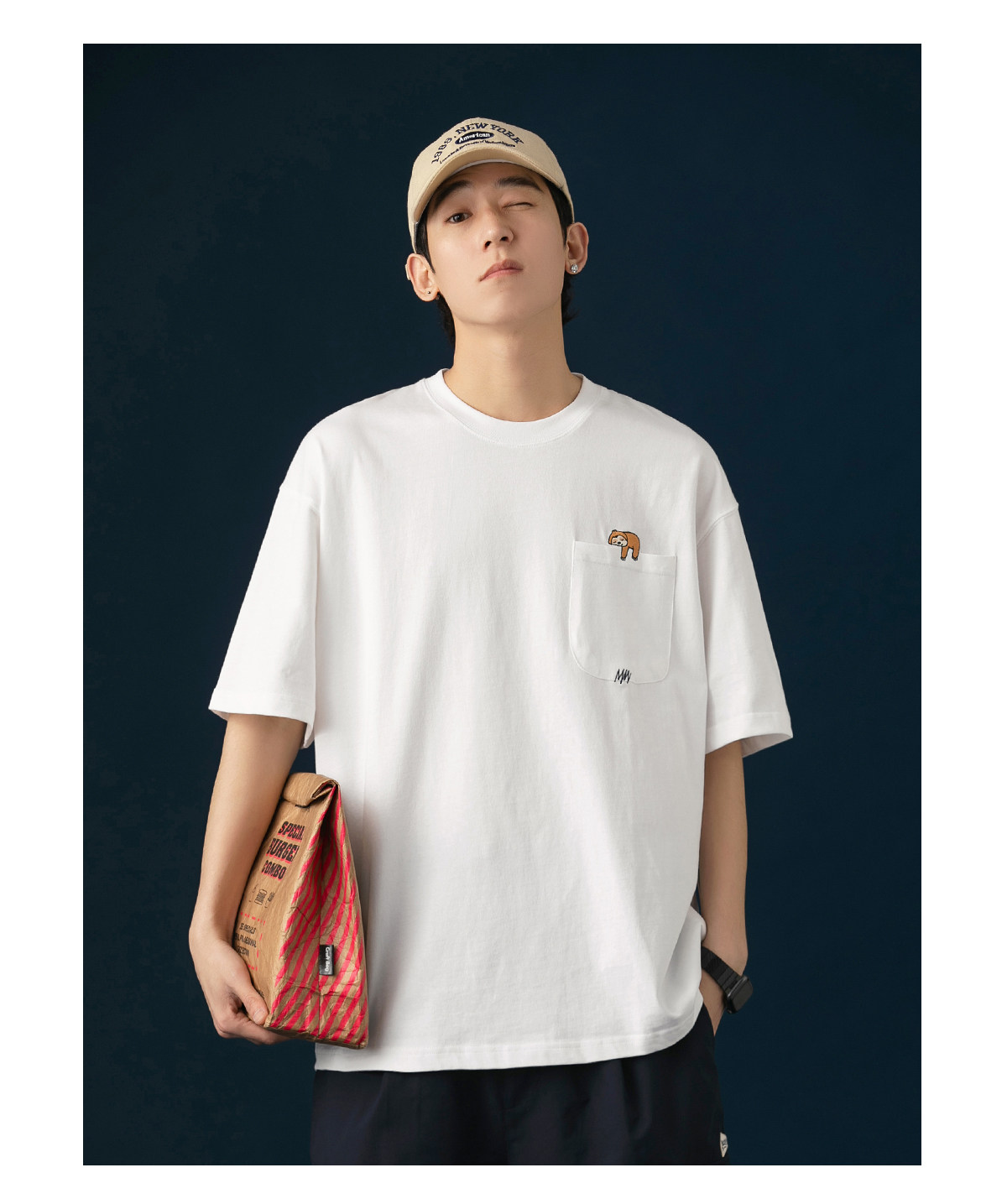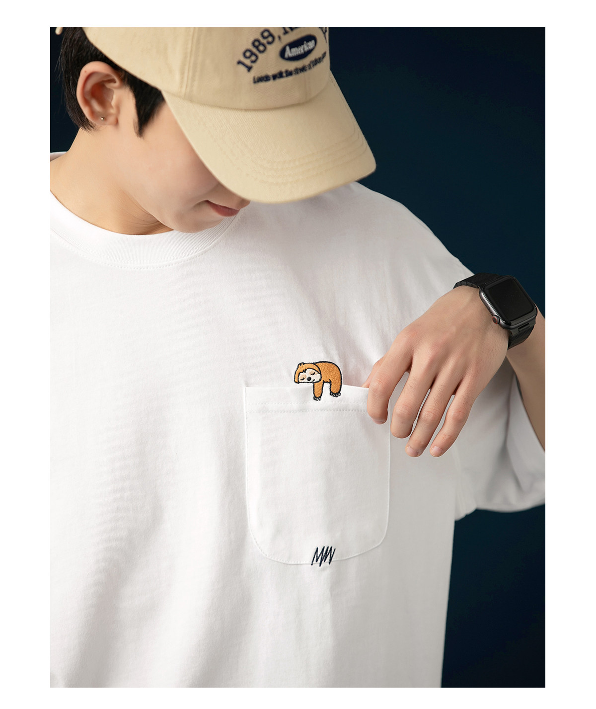 250G雙紗 夏季純棉短袖T恤男卡通刺綉短tee潮牌百搭休閒體恤衫男
