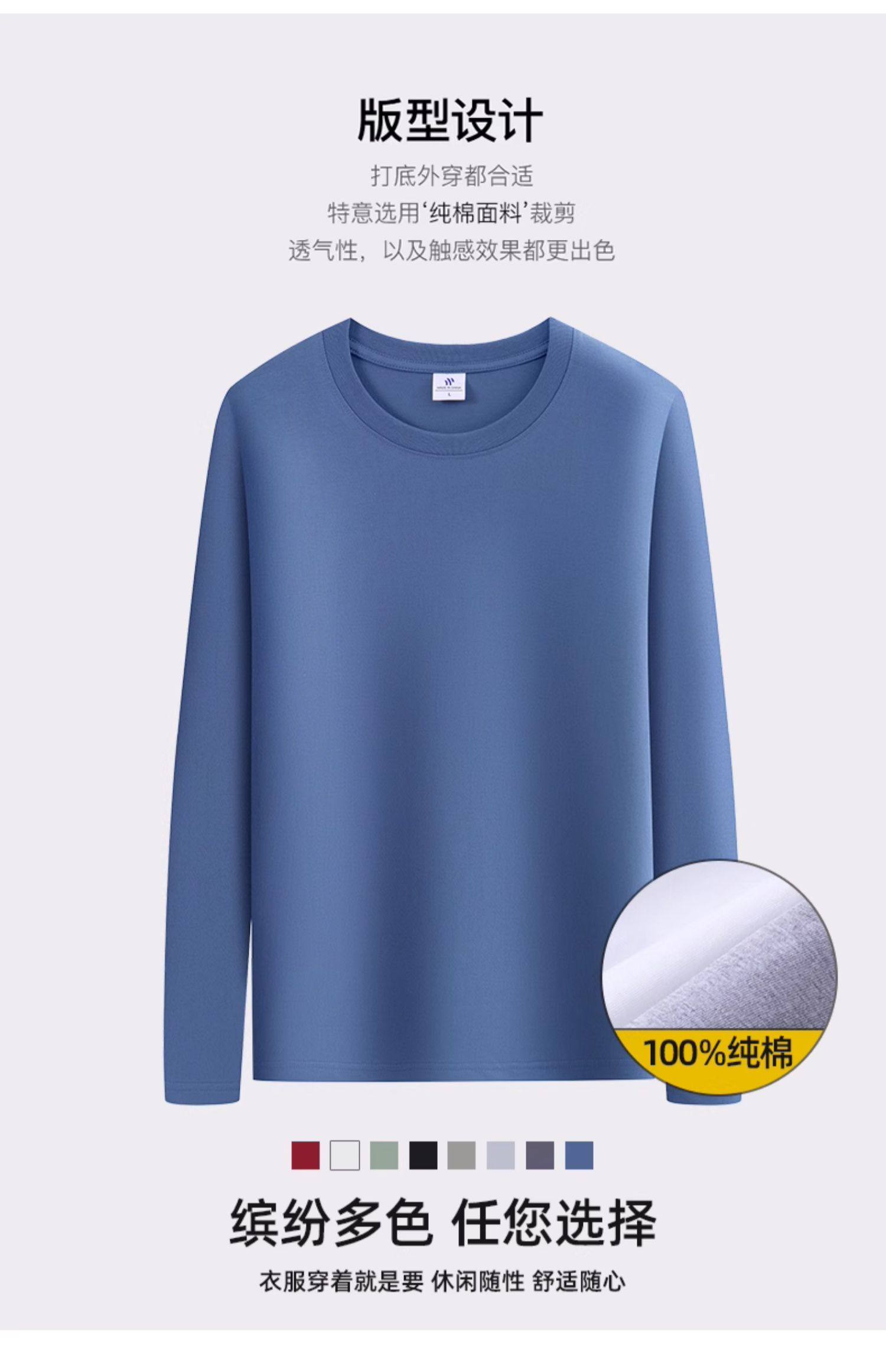 100%純棉T恤男長袖新疆棉內衣打底衫圓領純色t恤男潮流春秋體恤衫