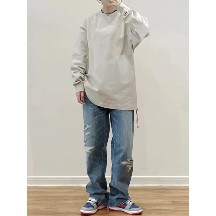 beams日系潮牌圓領長袖t恤男重磅棉簡約情侶寬松小紅繩打底衫上衣