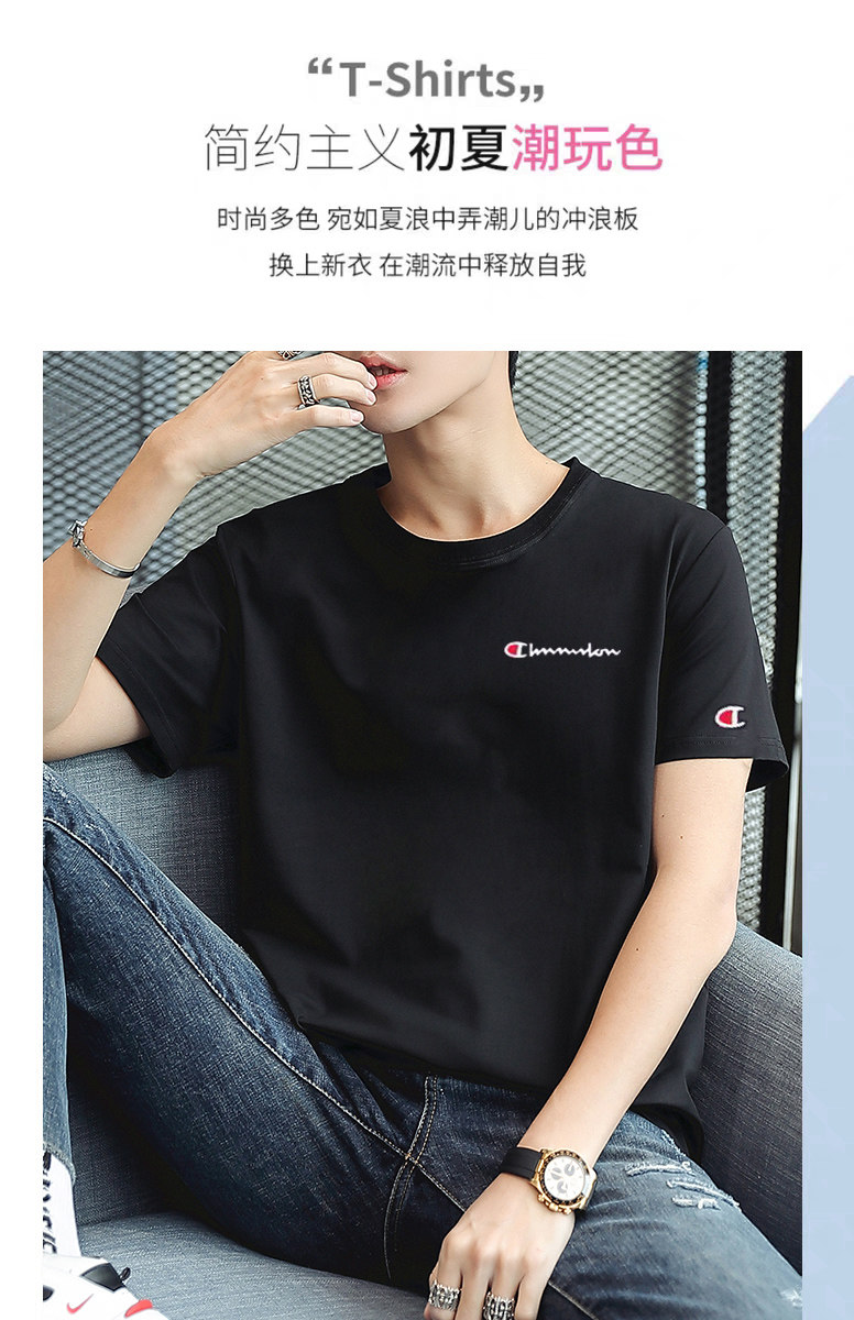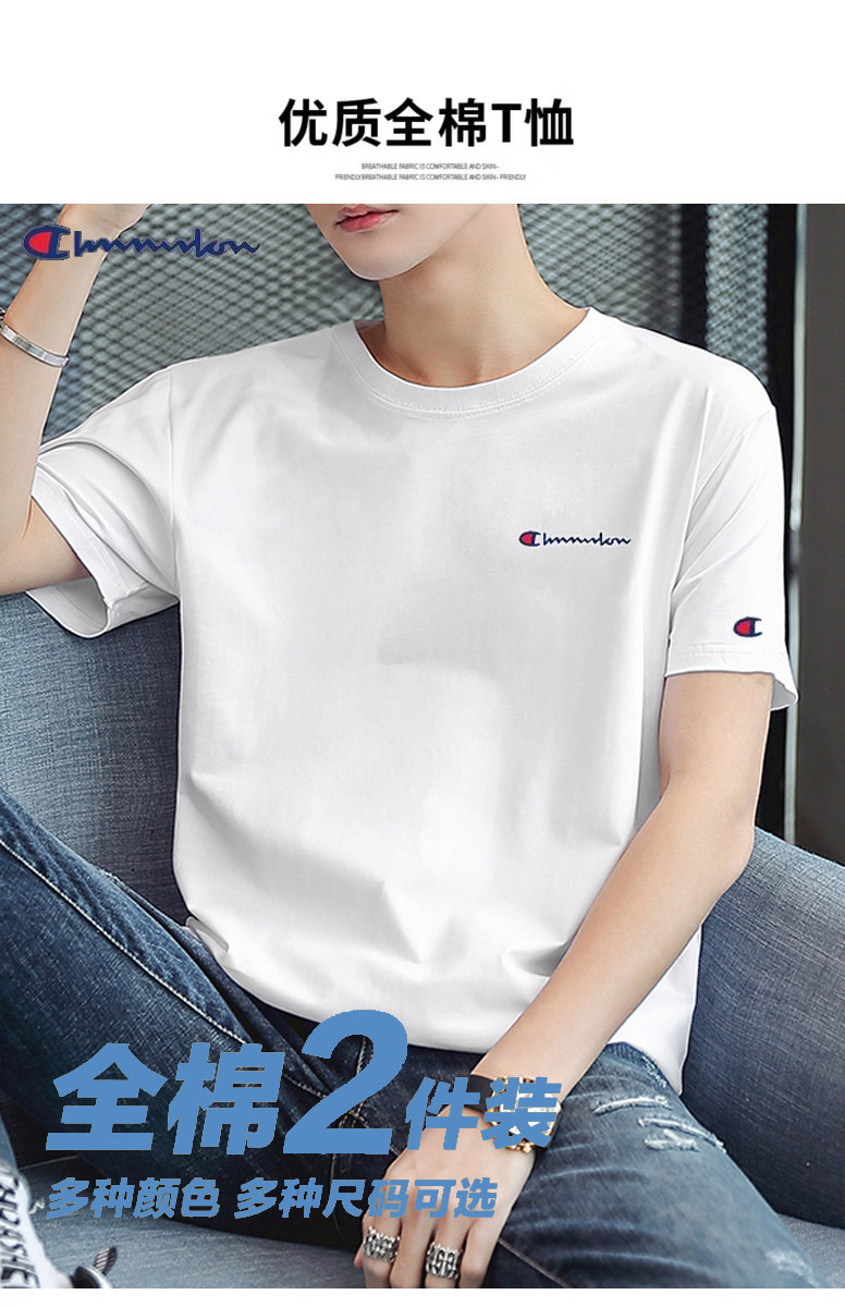 奧特萊斯短袖t恤新款冠軍情侶白色休閒純棉新款男士夏季男裝體恤