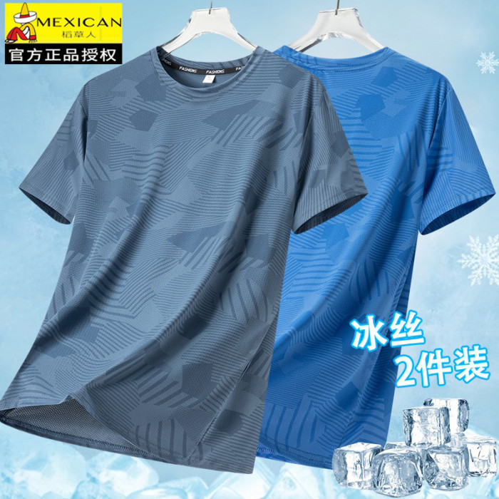 稻草人短袖T恤衫男士夏季運動速乾衣寬鬆冰絲健身訓練半袖上衣服