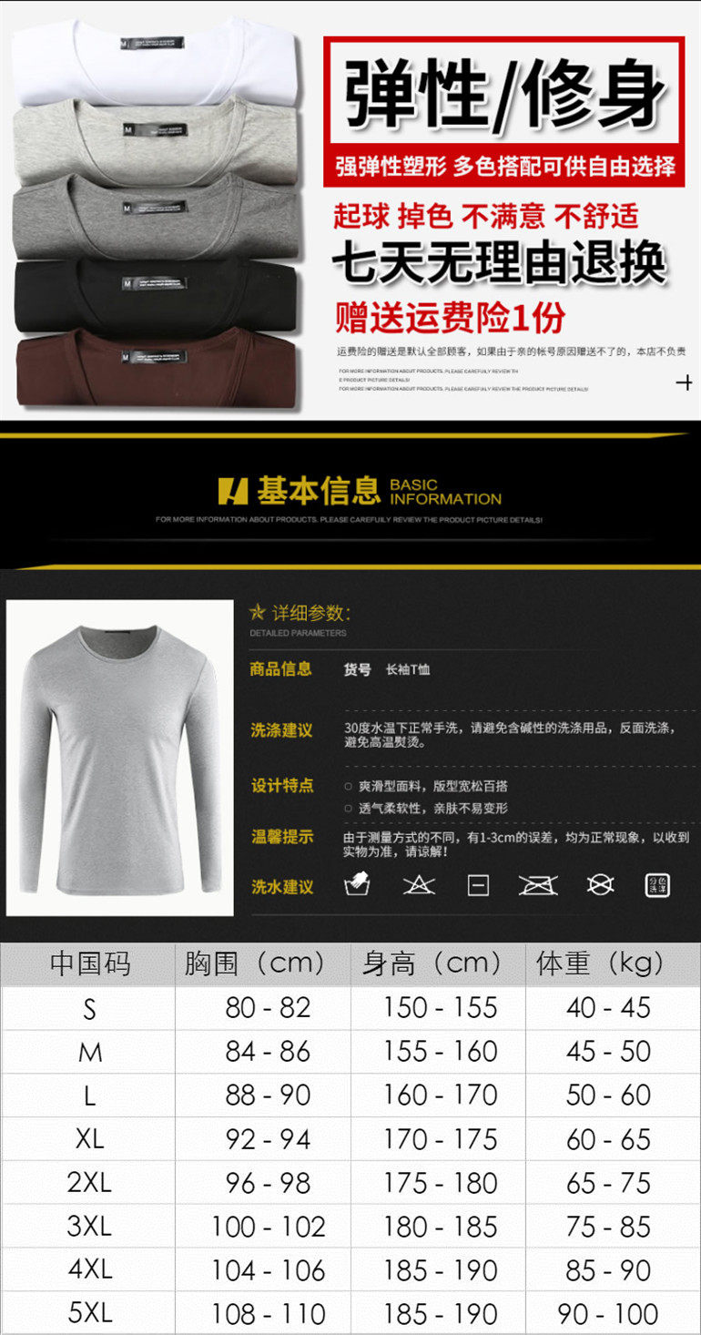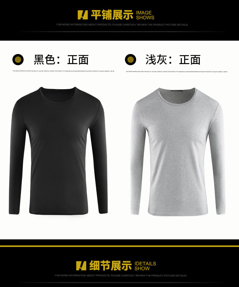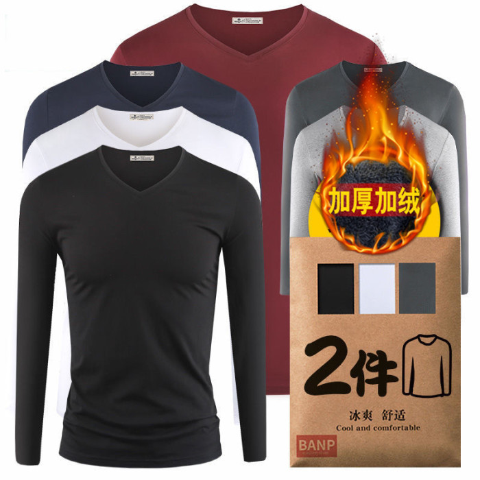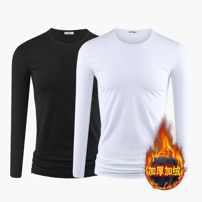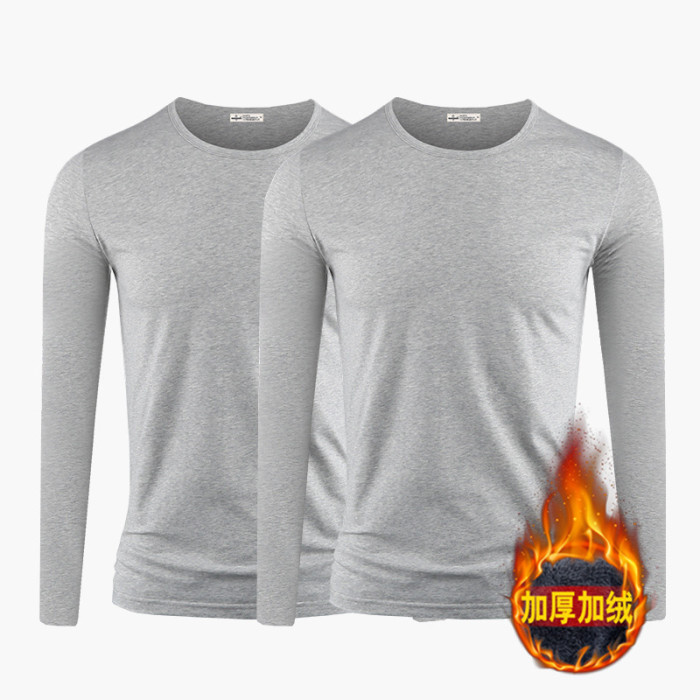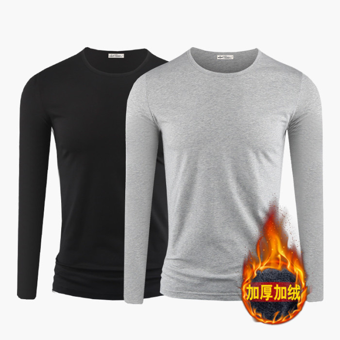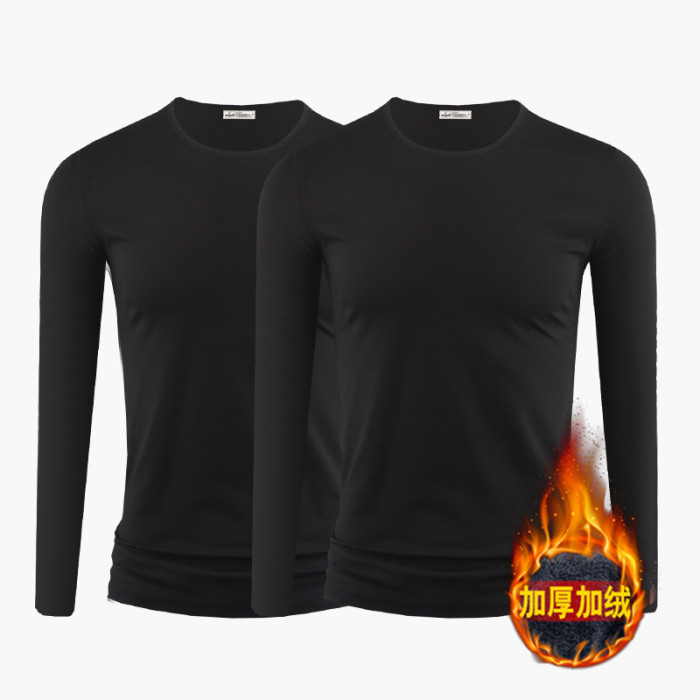 2件】莫代爾棉加厚保暖上衣服男士秋冬季內搭長袖t恤加絨打底衫男