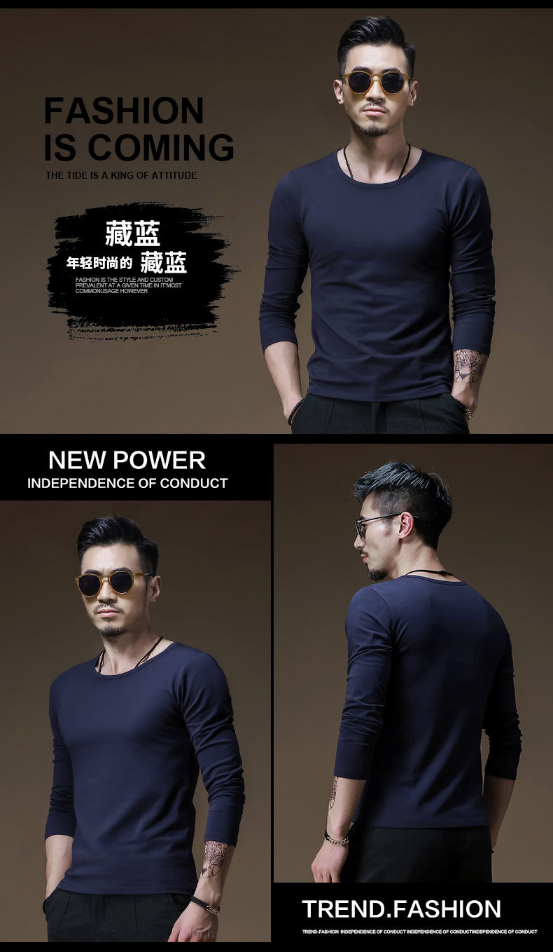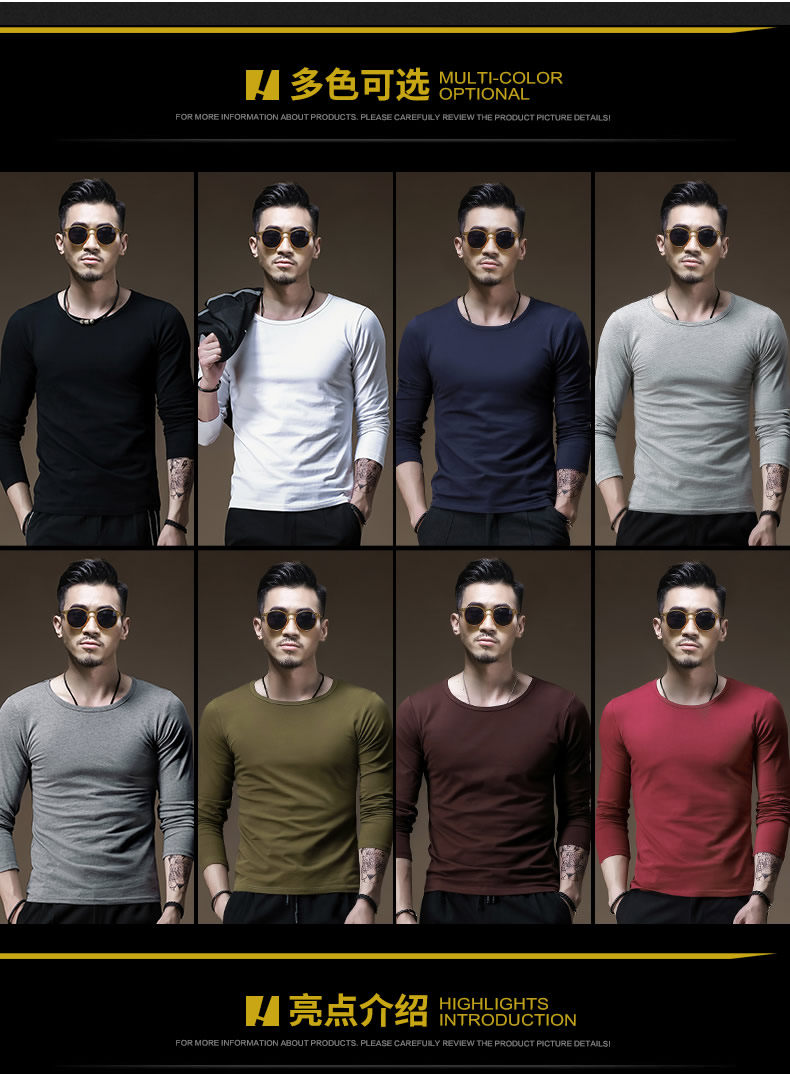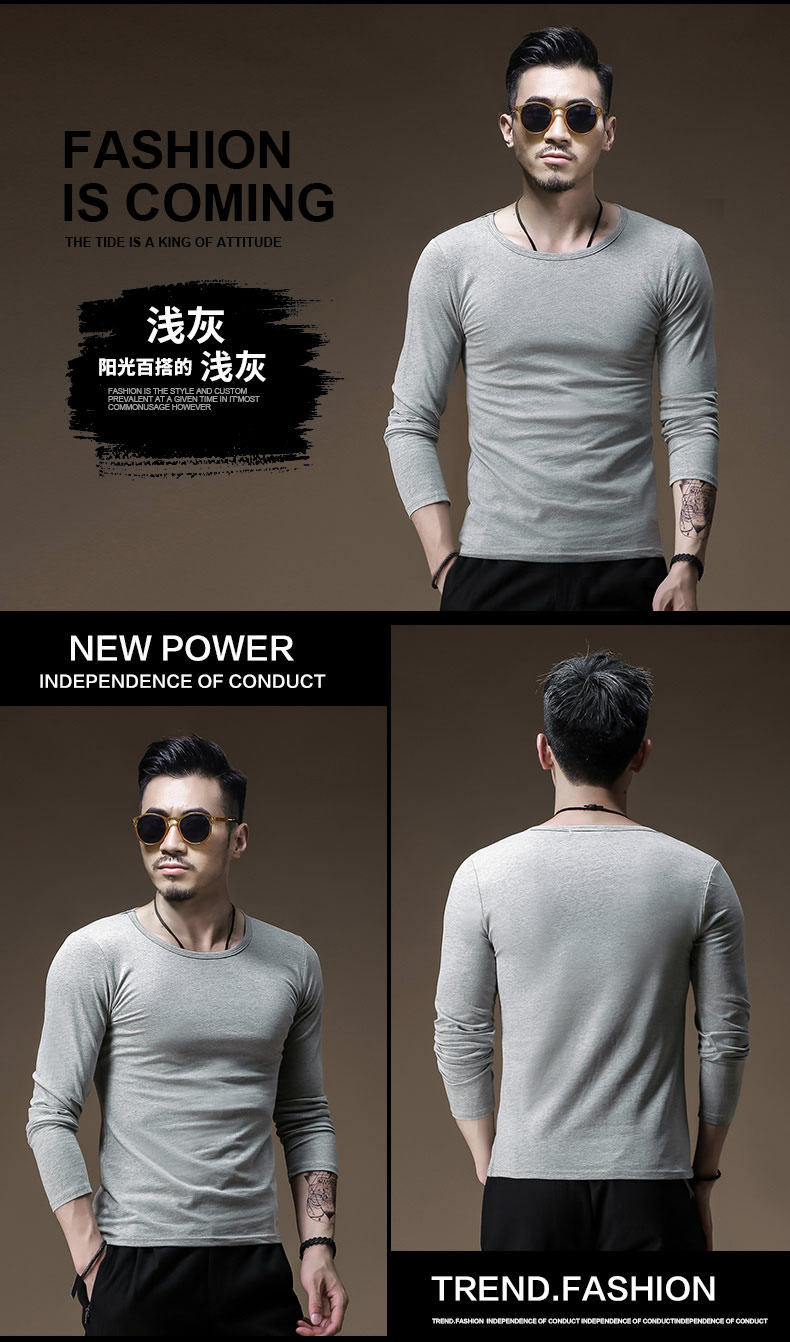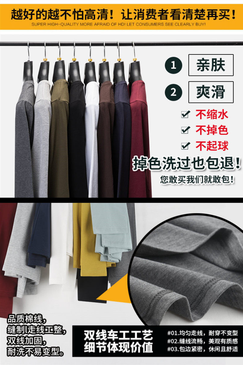 2件】莫代爾棉加厚保暖上衣服男士秋冬季內搭長袖t恤加絨打底衫男