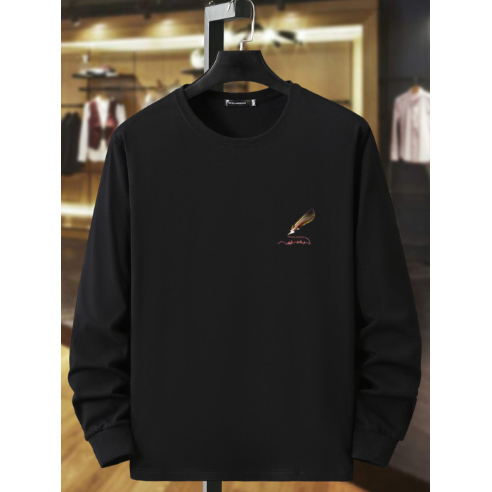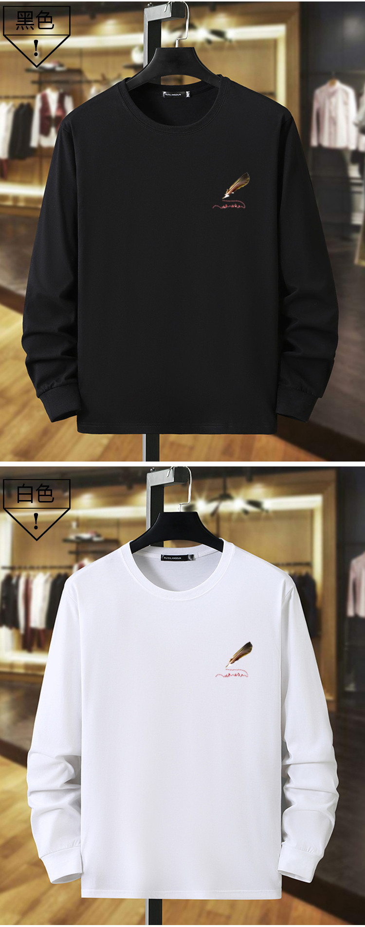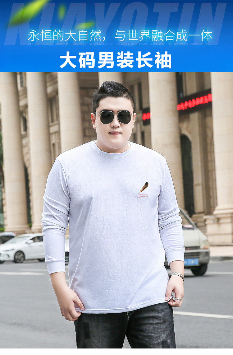 春秋加肥加大碼男純棉長袖t恤薄款 寬鬆休閒胖子上衣打底肥佬體恤