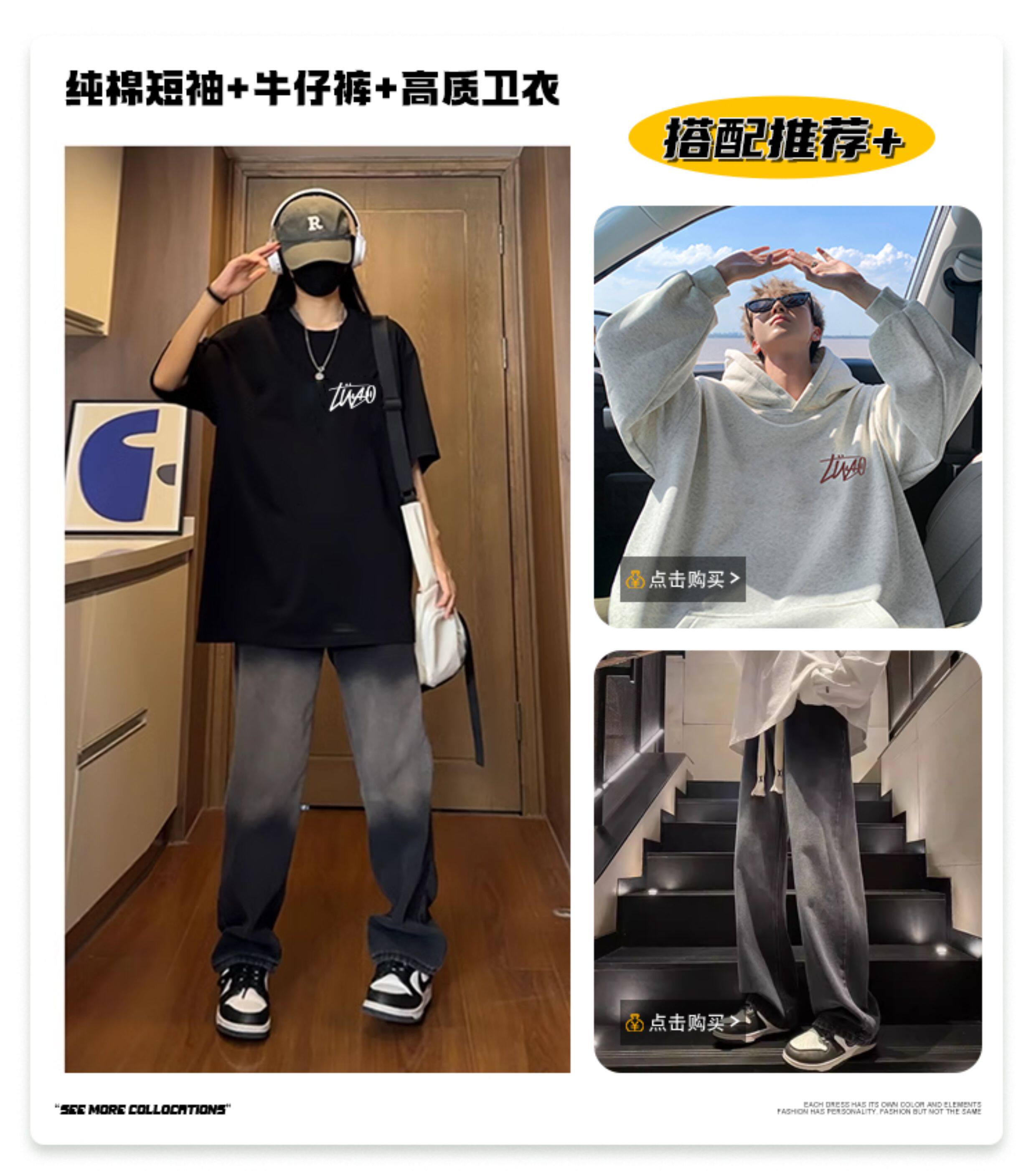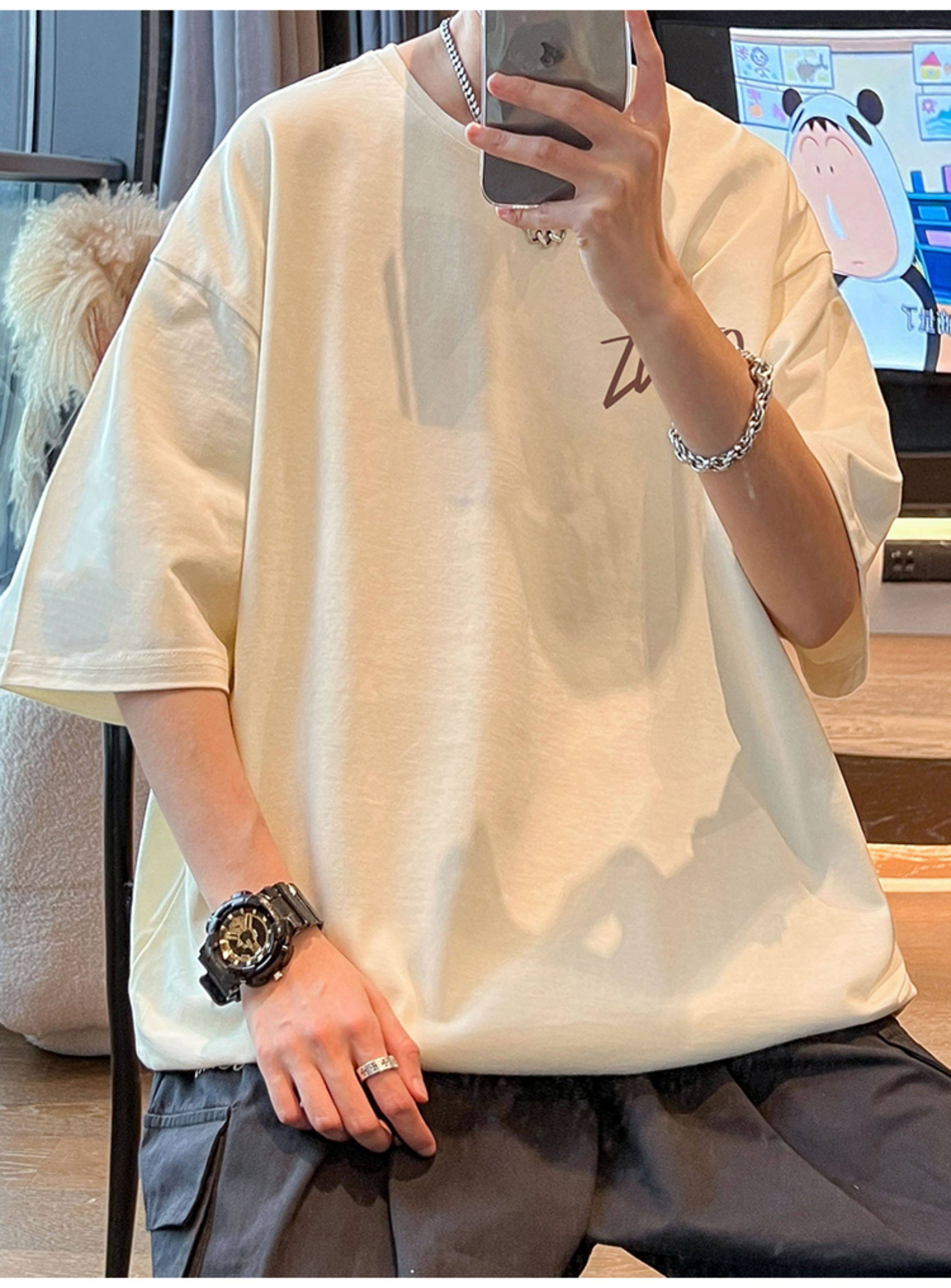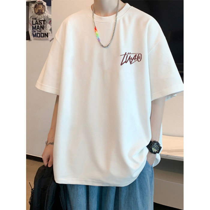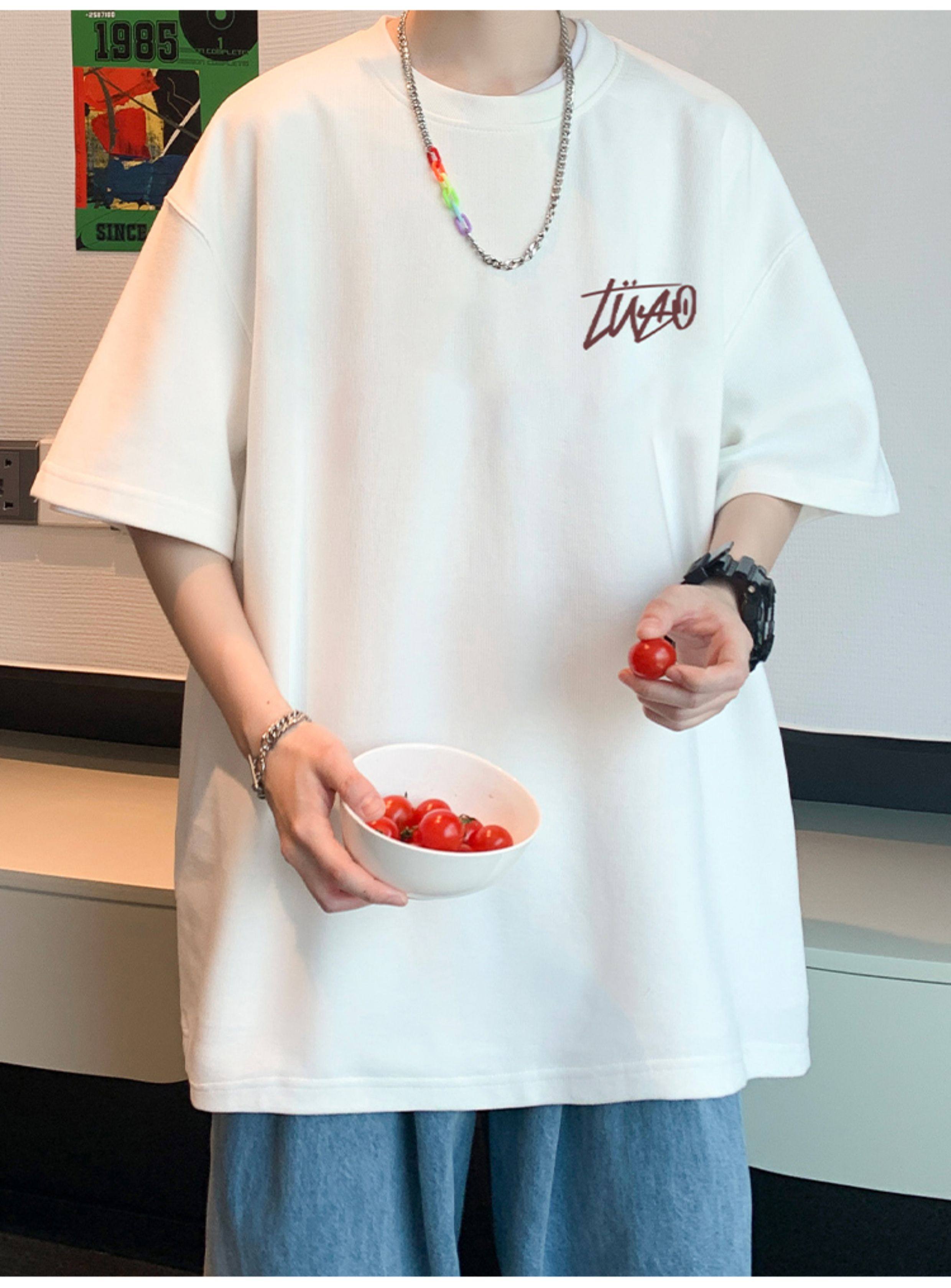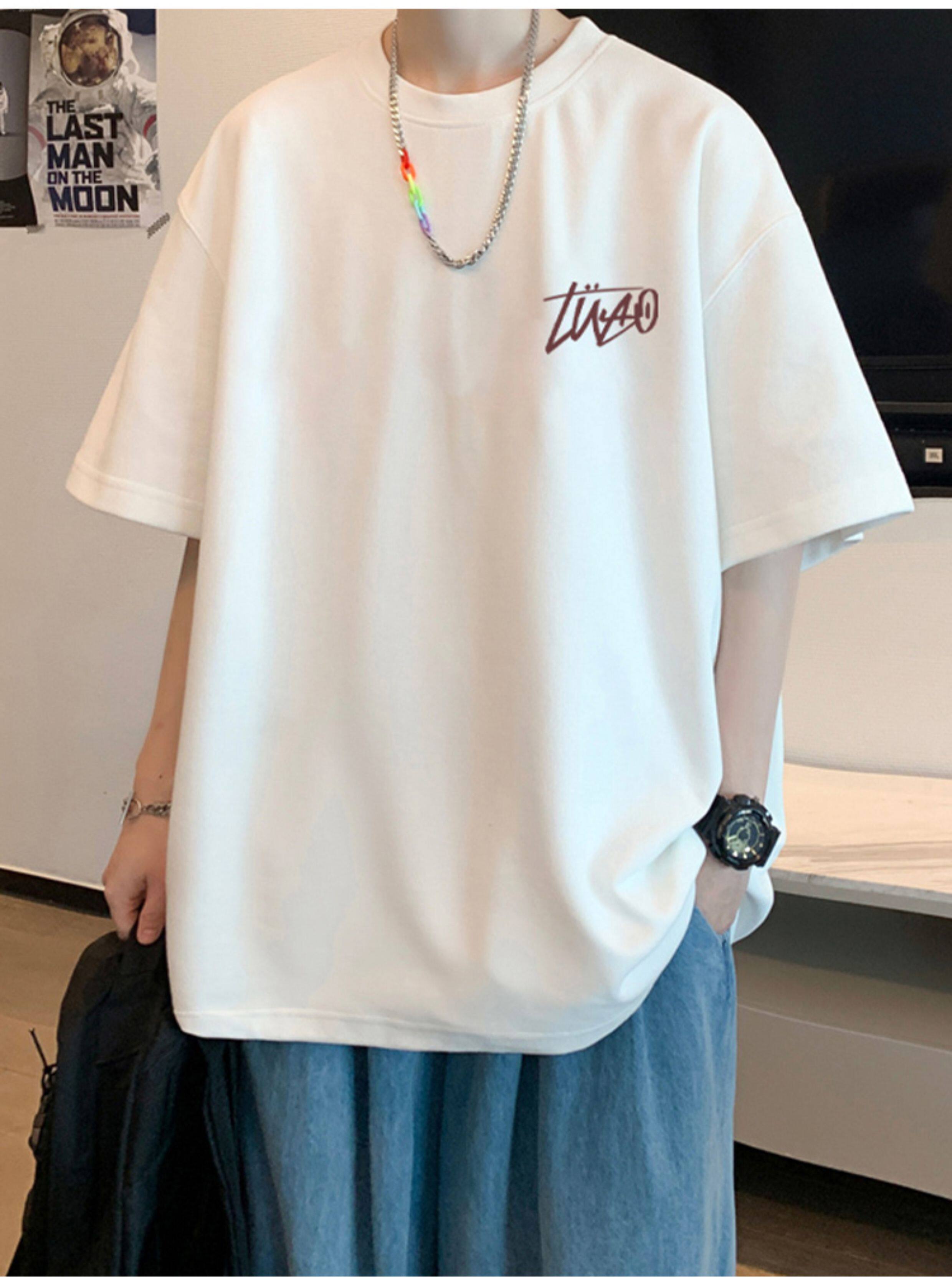 重磅短袖t恤男士2025新款夏季純棉美式潮牌潮流寬松白色百搭衣服
